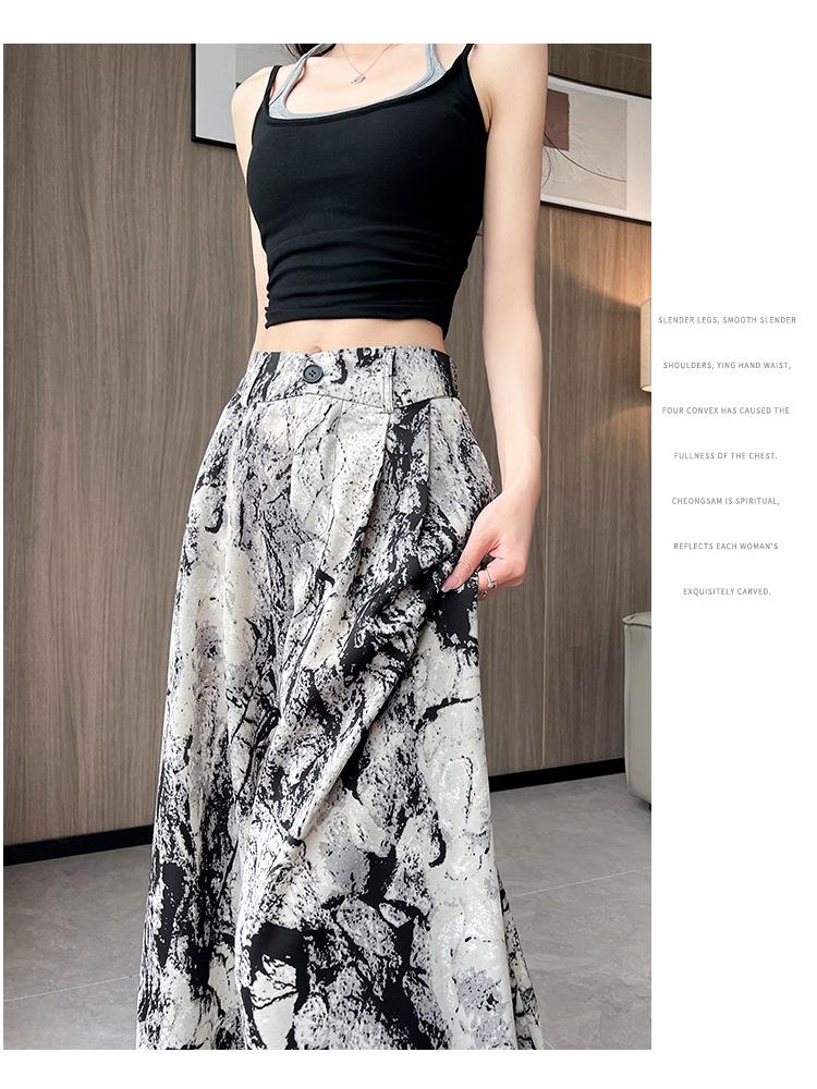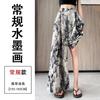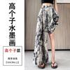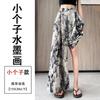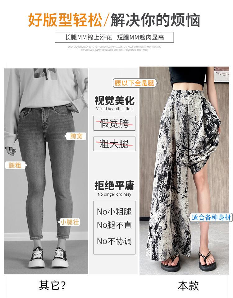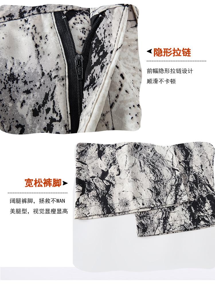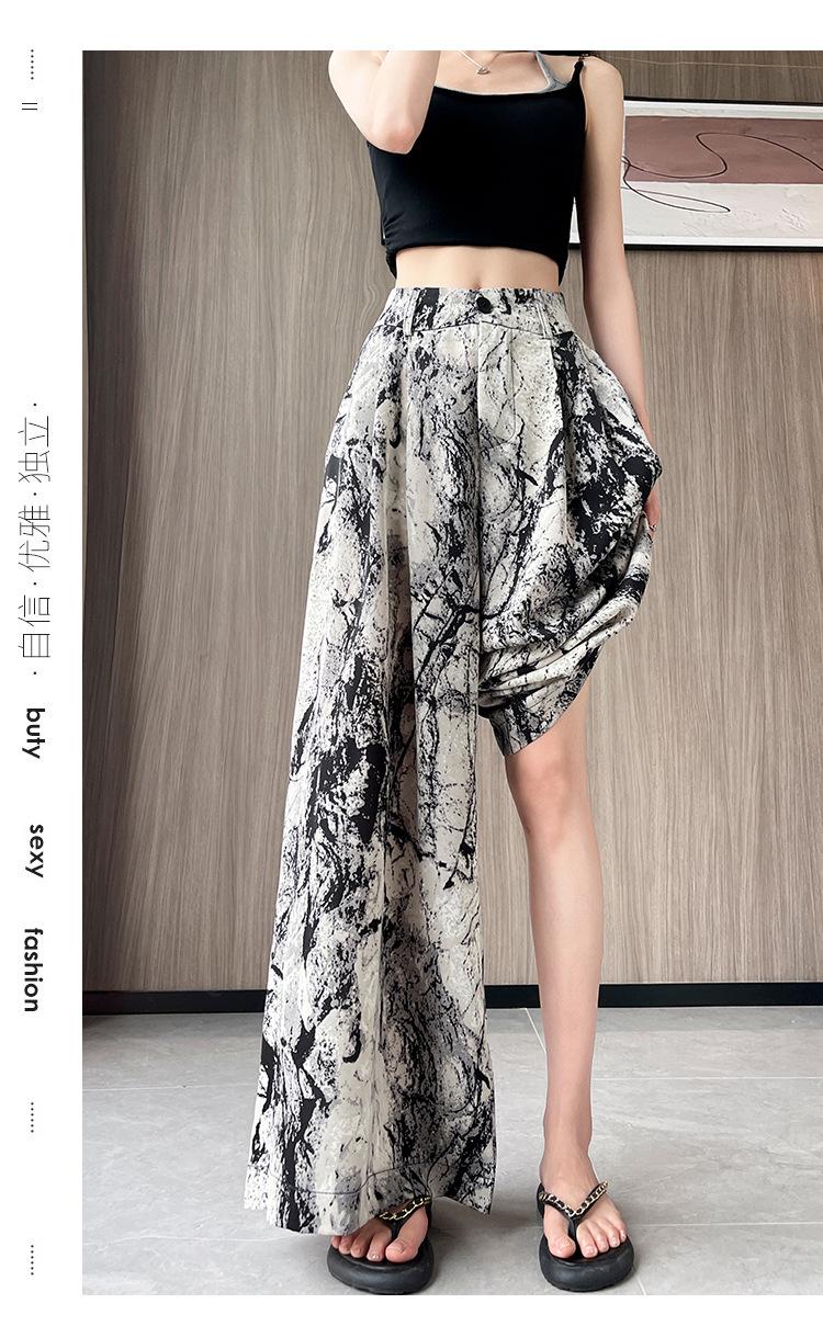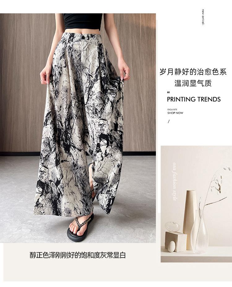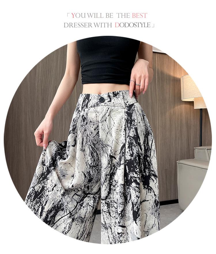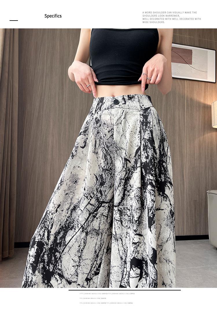 Verano 2025 Nuevo Traje Fresco de Seda Helada Tie-Dye Pantalones de Pierna Ancha para Mujer Cintura Alta Suelto Largo hasta el Piso Estilo Delgado para Personas Altas