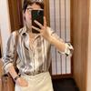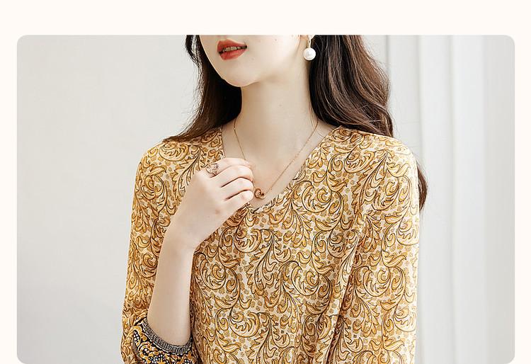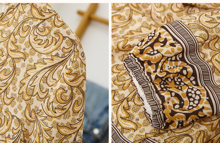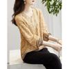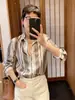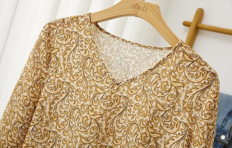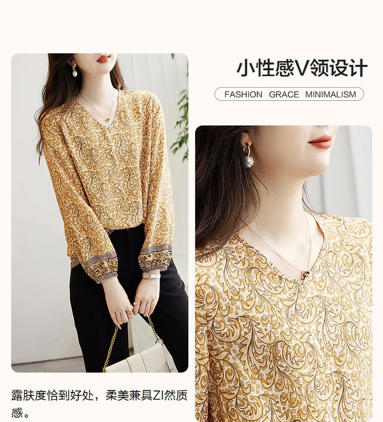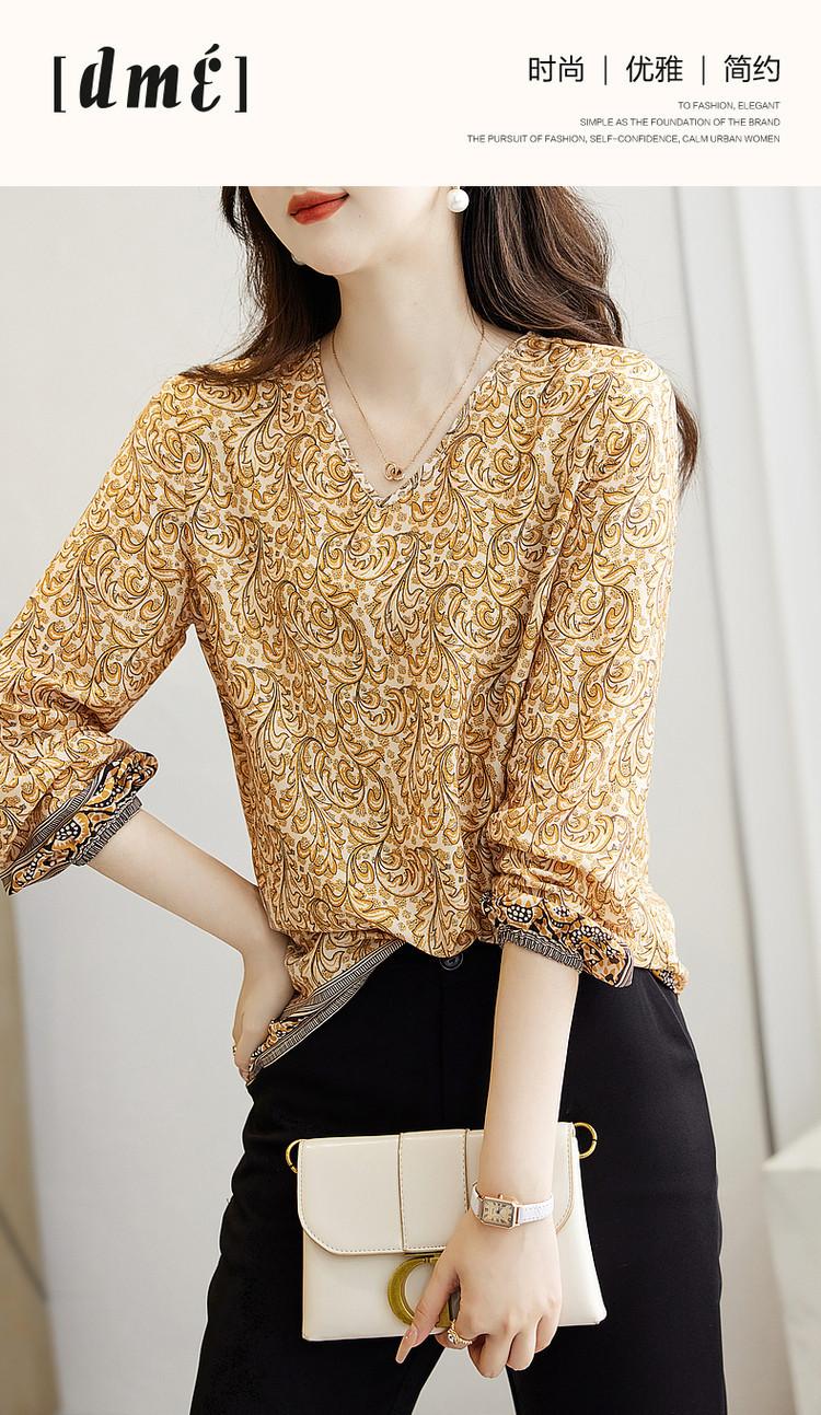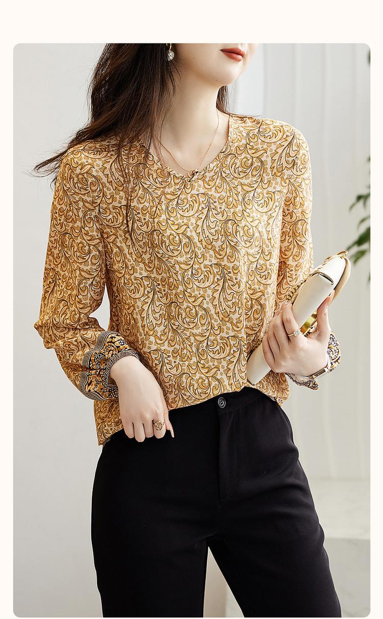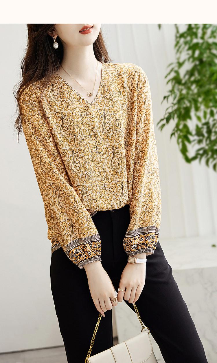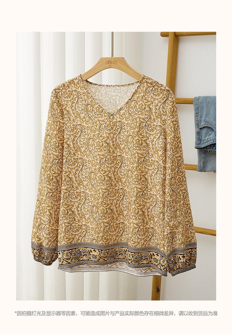 Camisa de gasa estampada estilo exótico 2025 nueva de primavera cuello en V manga larga top de mujer