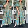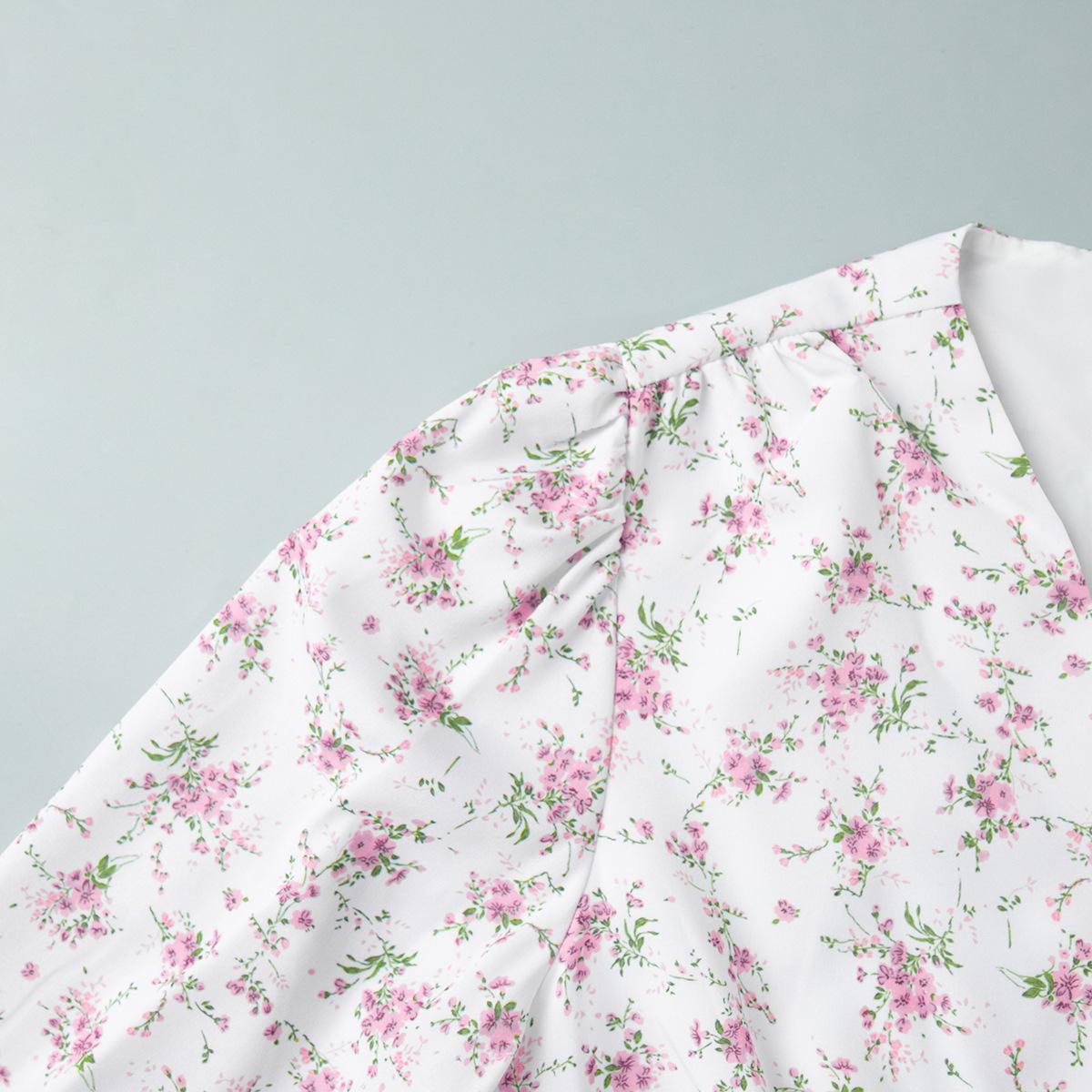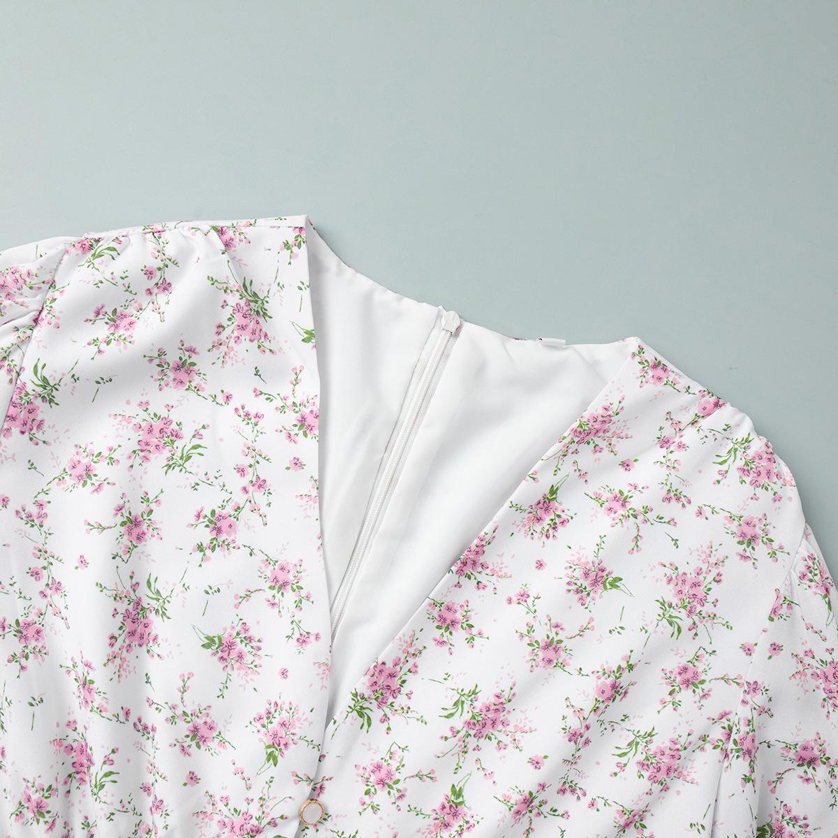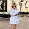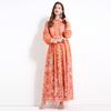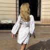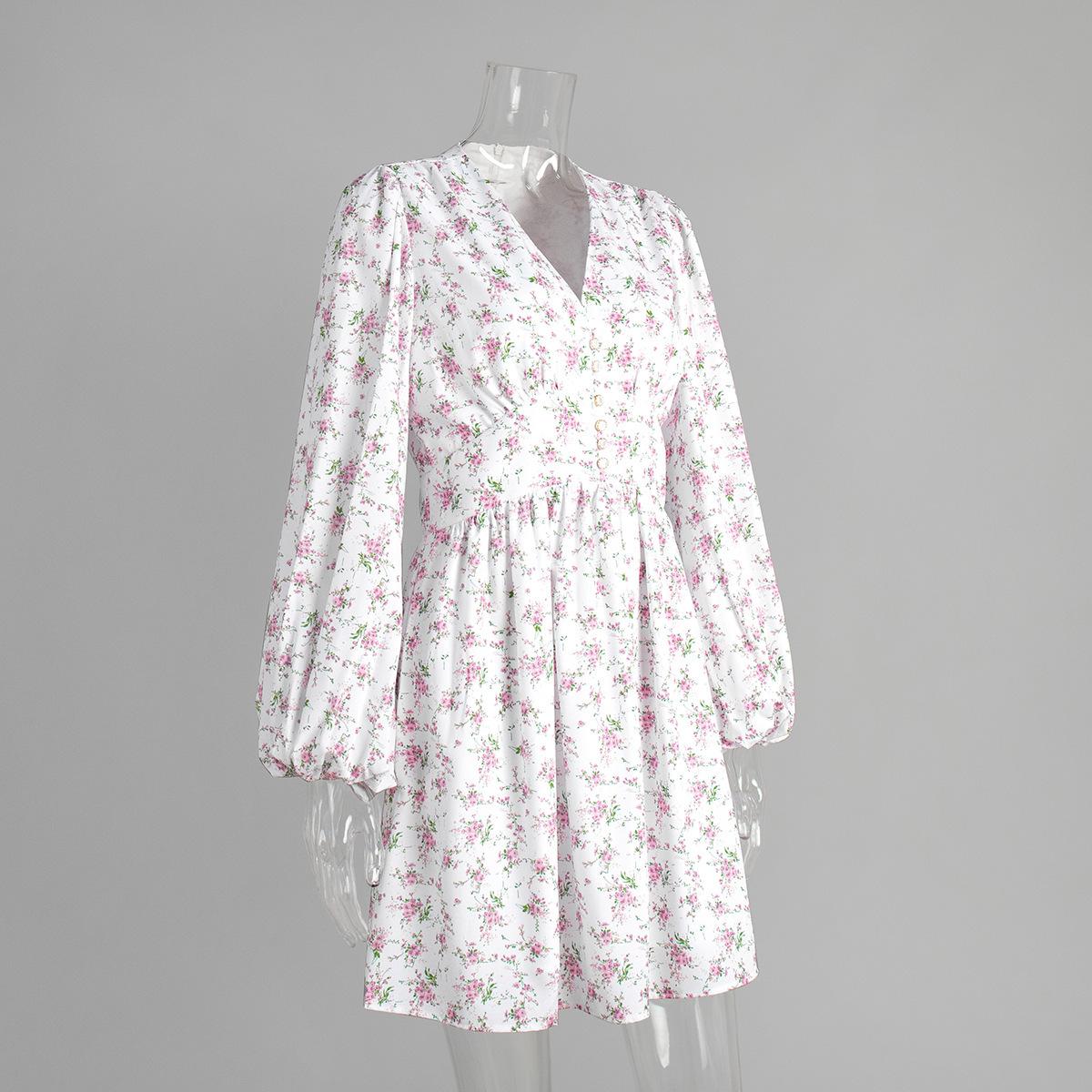 Vestido corto de manga larga estampado transfronterizo Estilo nuevo europeo y americano Primavera y verano 2025 Manga farol Falda corta Vestido de cintura para mujer