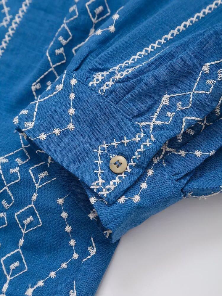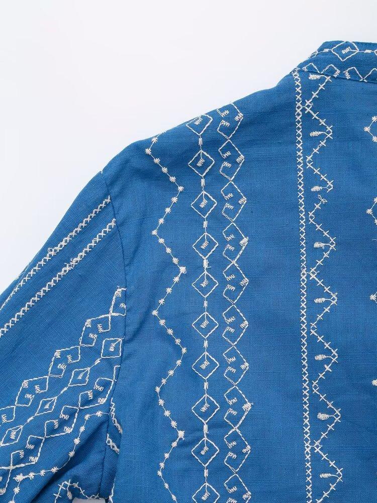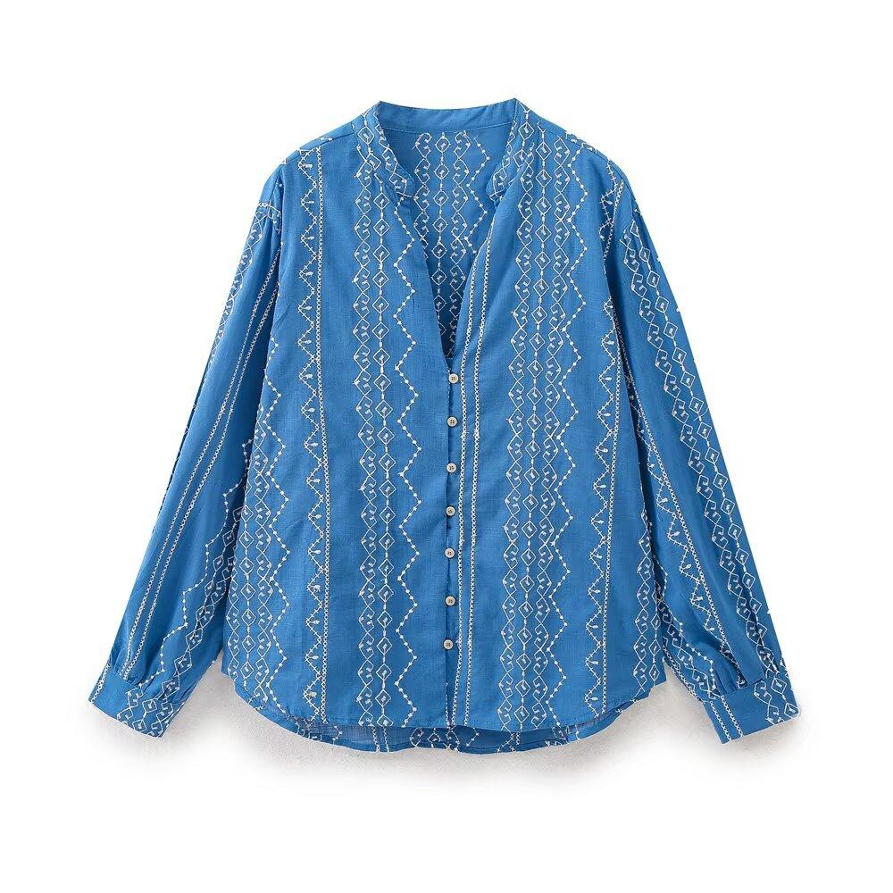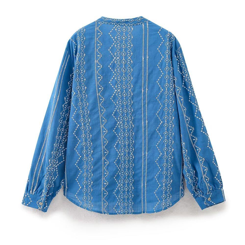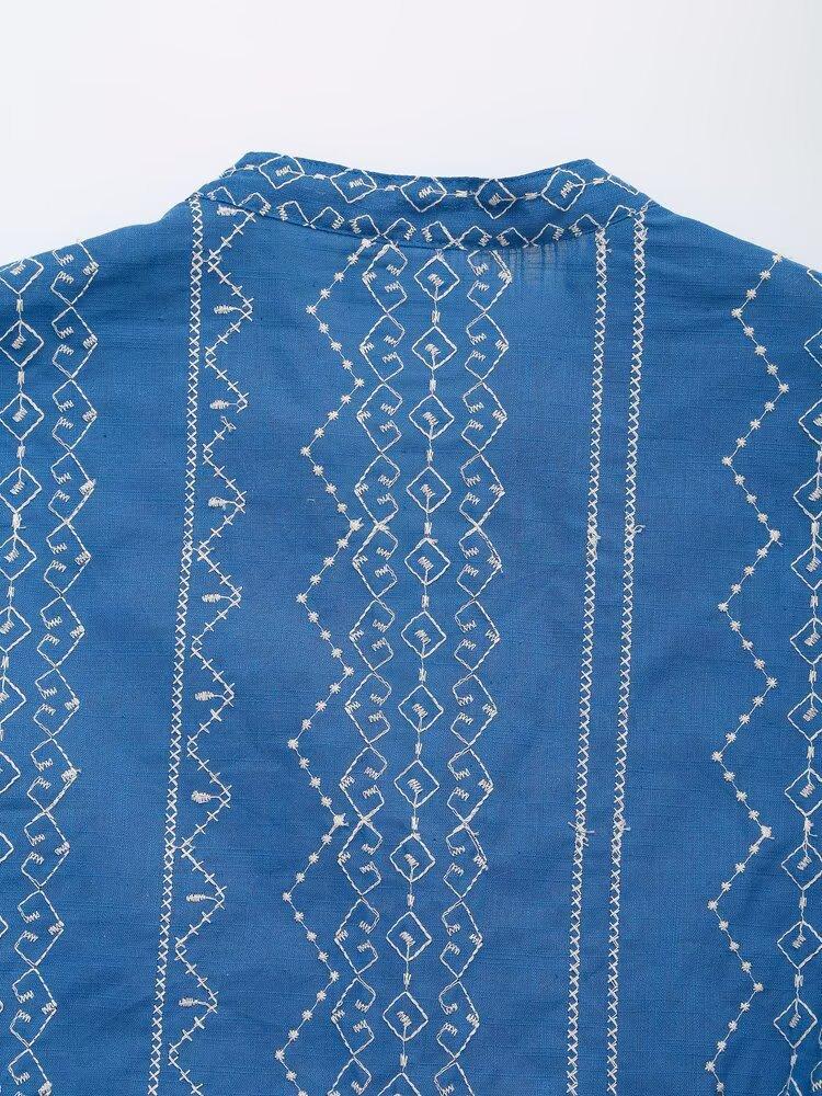 Ropa de Mujer Transfronteriza de Comercio Exterior 2025 Verano Estilo Europeo y Americano Moda Elegante Casual Simple Camisa Bordada Mujer E74081