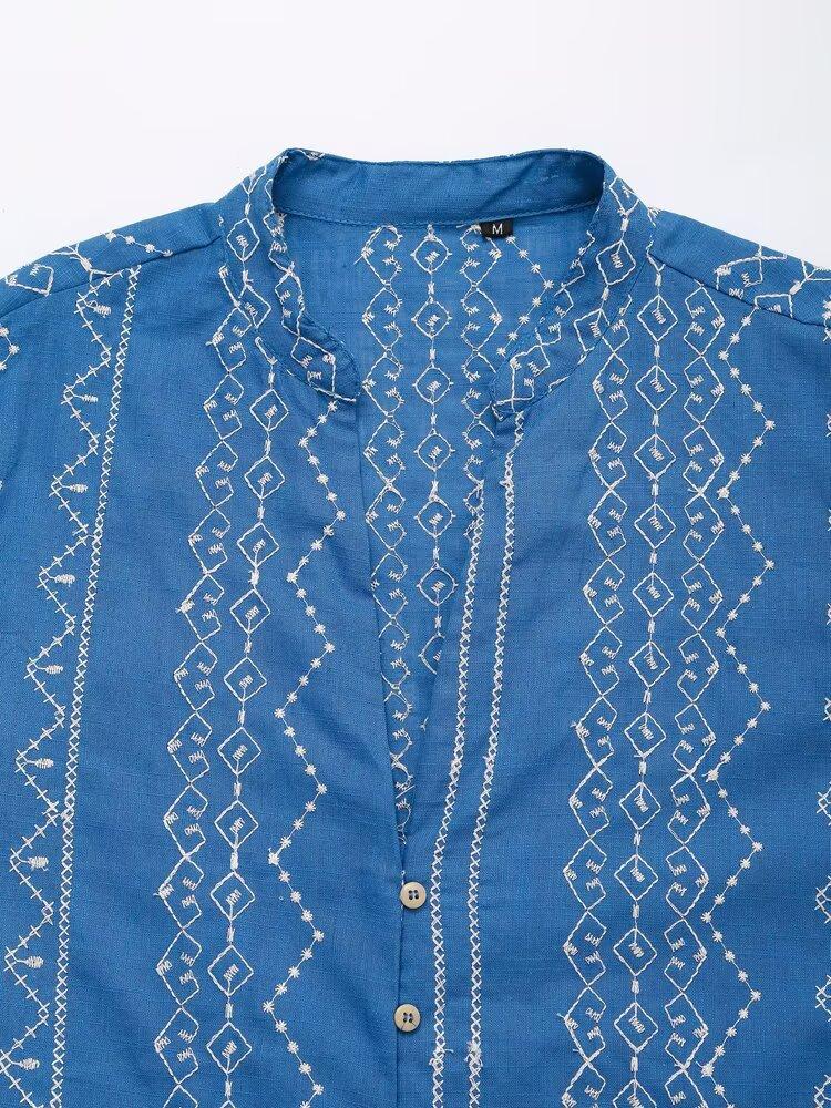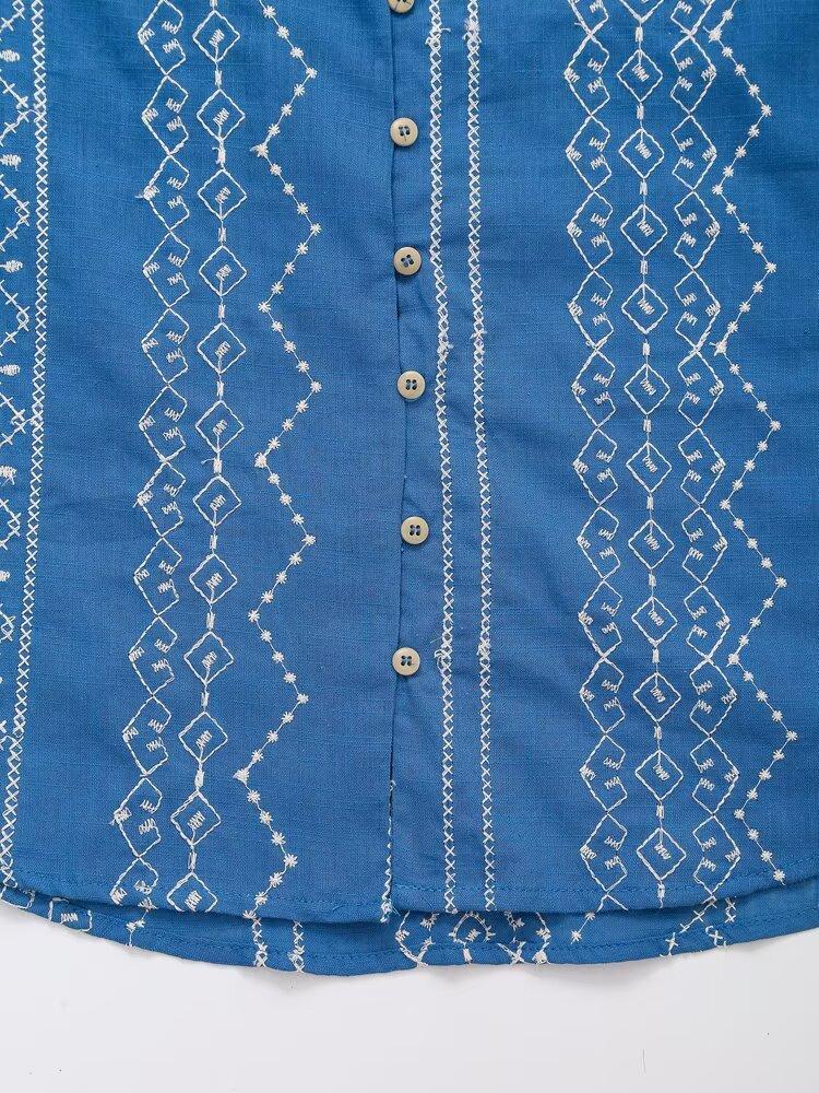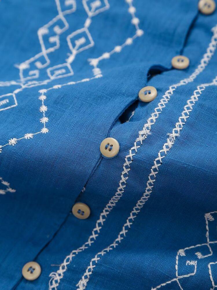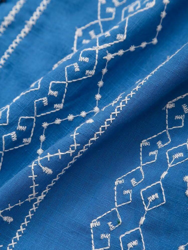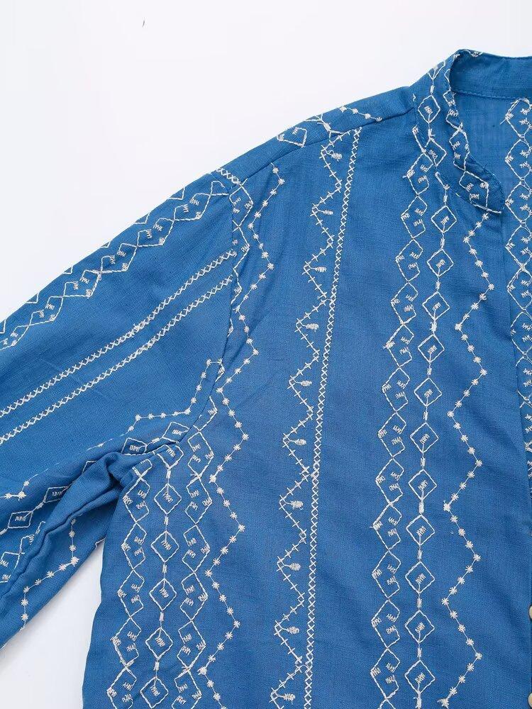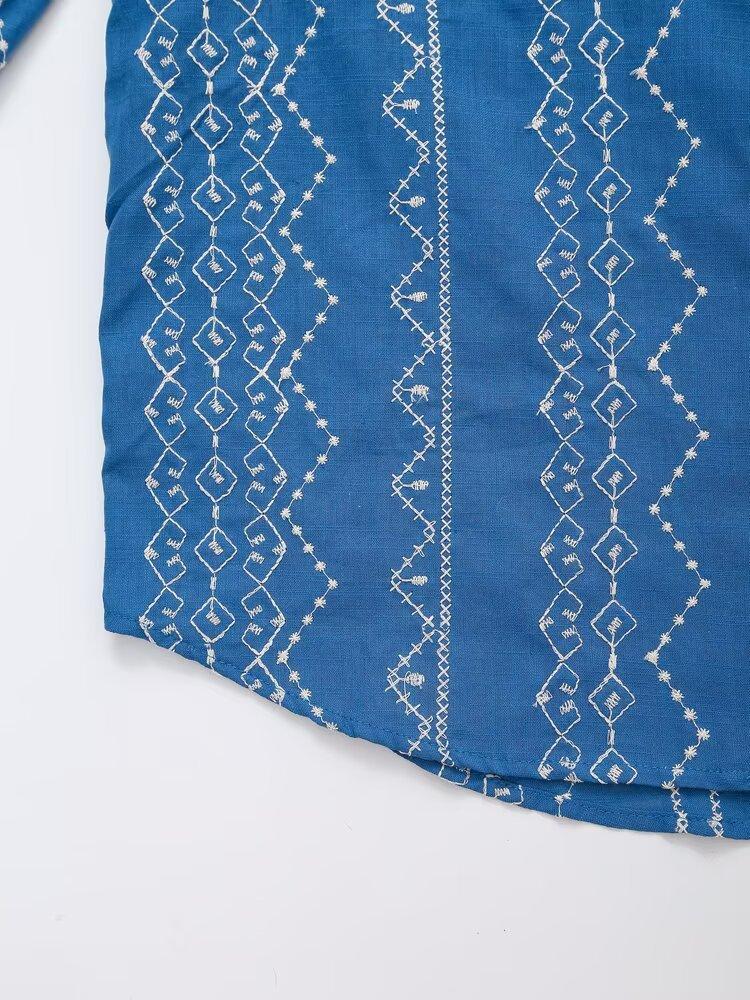 Ropa de Mujer Transfronteriza de Comercio Exterior 2025 Verano Estilo Europeo y Americano Moda Elegante Casual Simple Camisa Bordada Mujer E74081