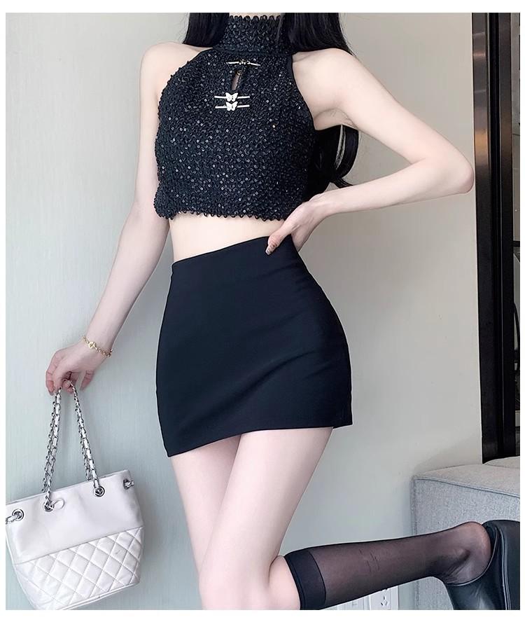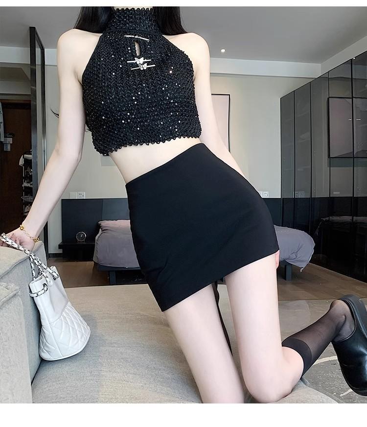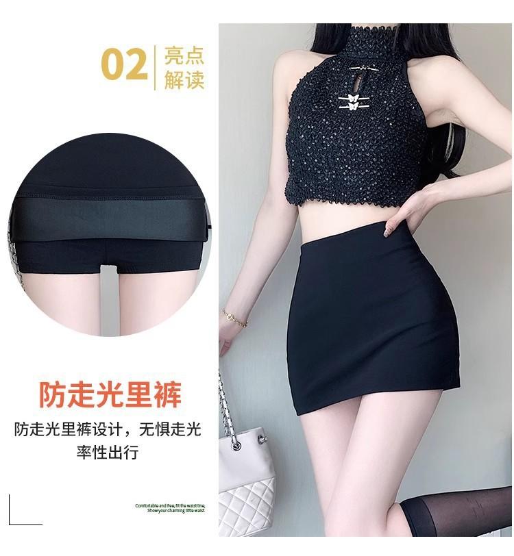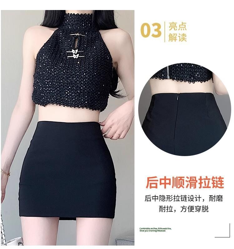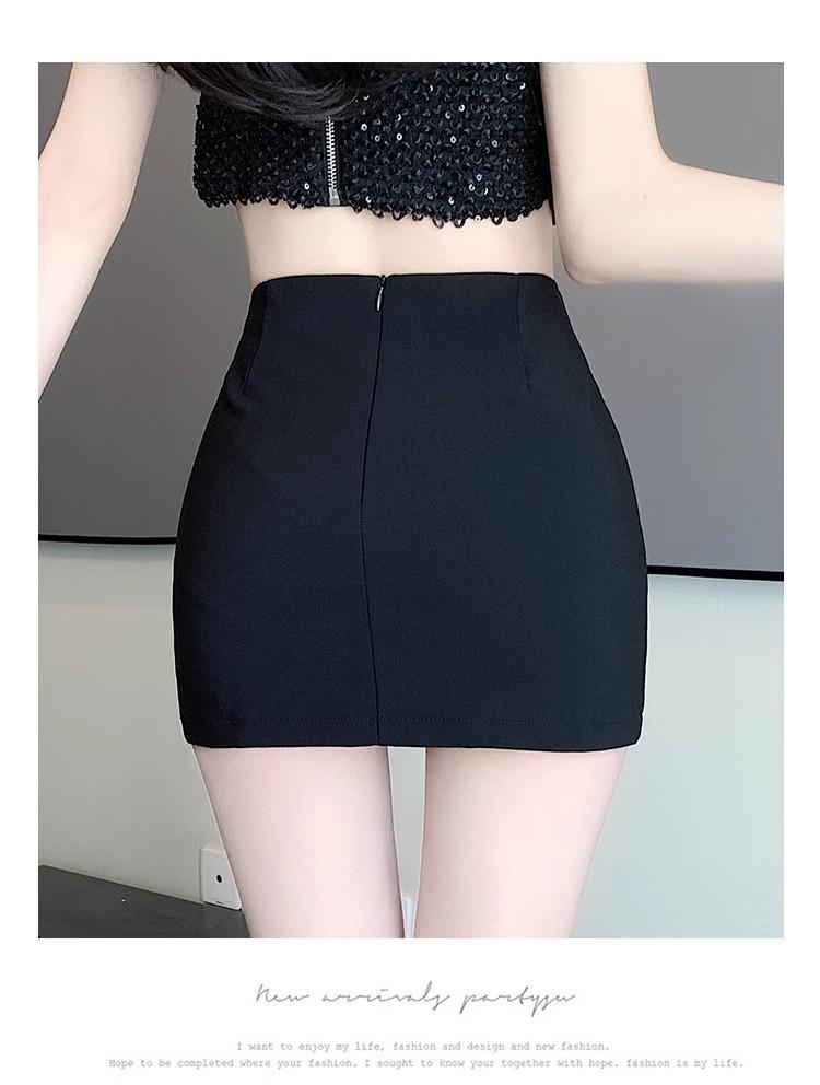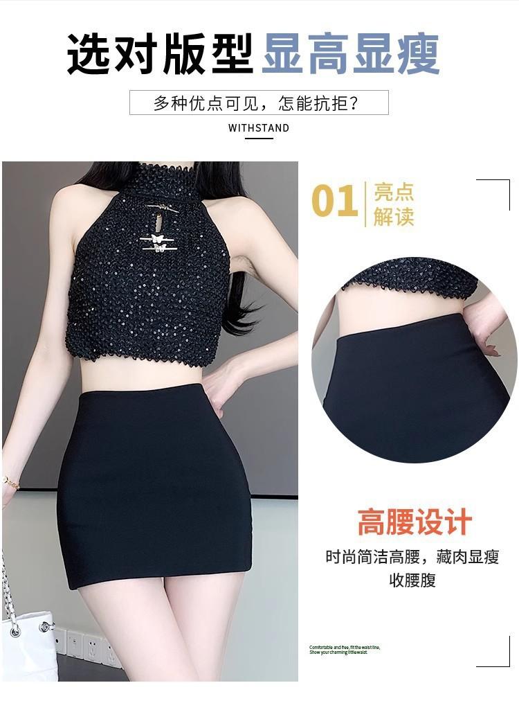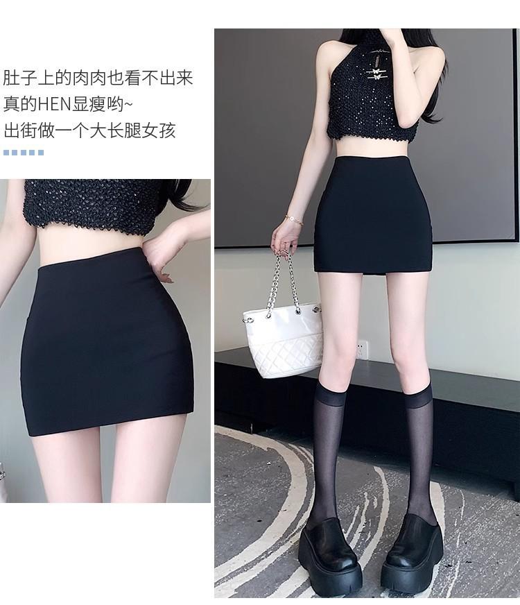 Falda ajustada negra para mujer otoño 2025 nuevo estilo cintura media alta falda adelgazante ropa exterior ajustada elástica falda corta de un paso