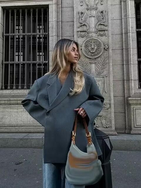 Ropa de Mujer Estilo Europeo y Americano Comercio Exterior Transfronterizo Popular Blazer Holgado Casual de Moda Tricolor