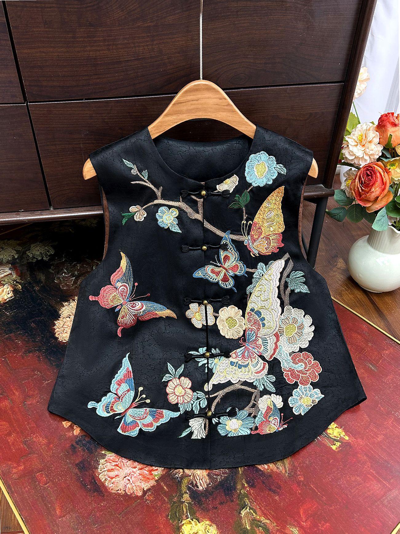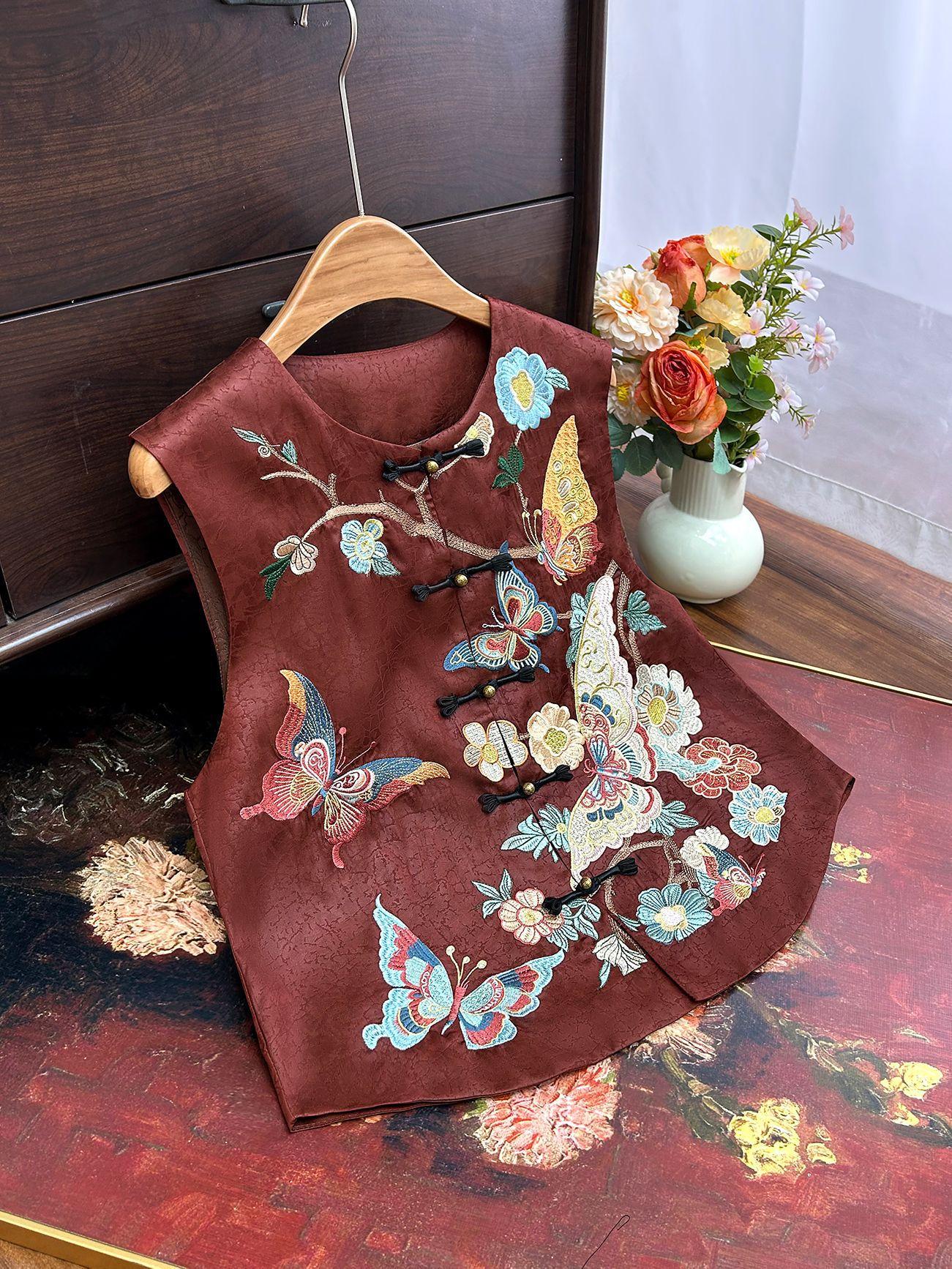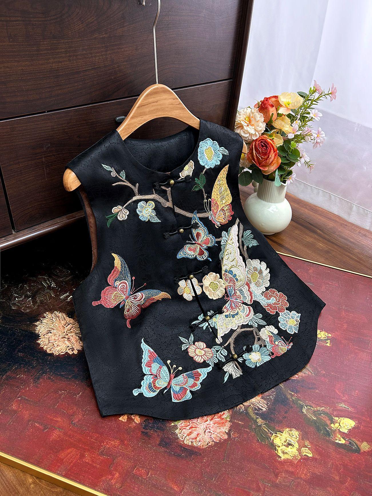 Chaleco de Bordado de Mariposas de Industria Pesada de Estilo Chino Nuevo para Mujer 2025 Primavera Nuevo Estilo Nacional Vintage Artístico con Hebilla