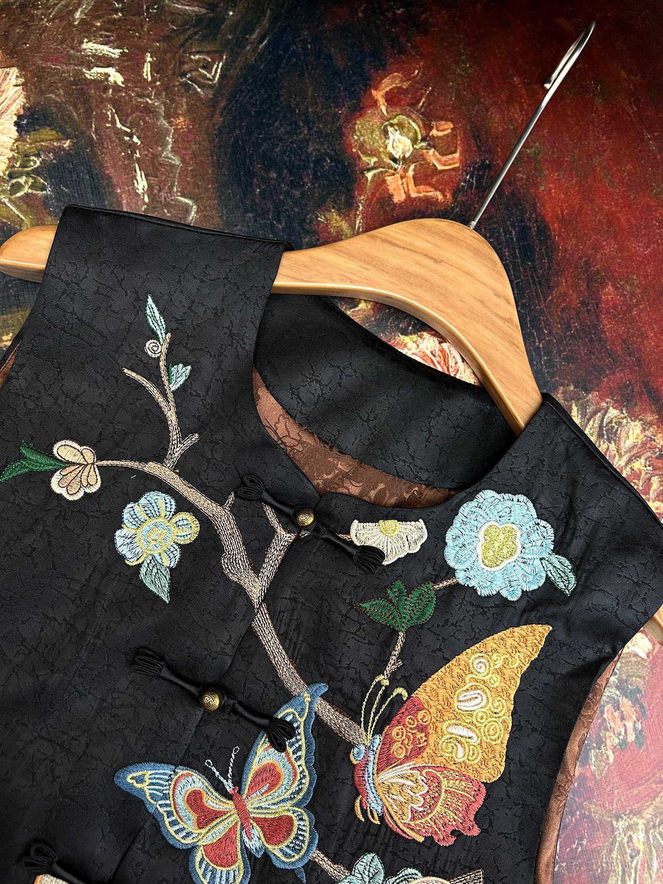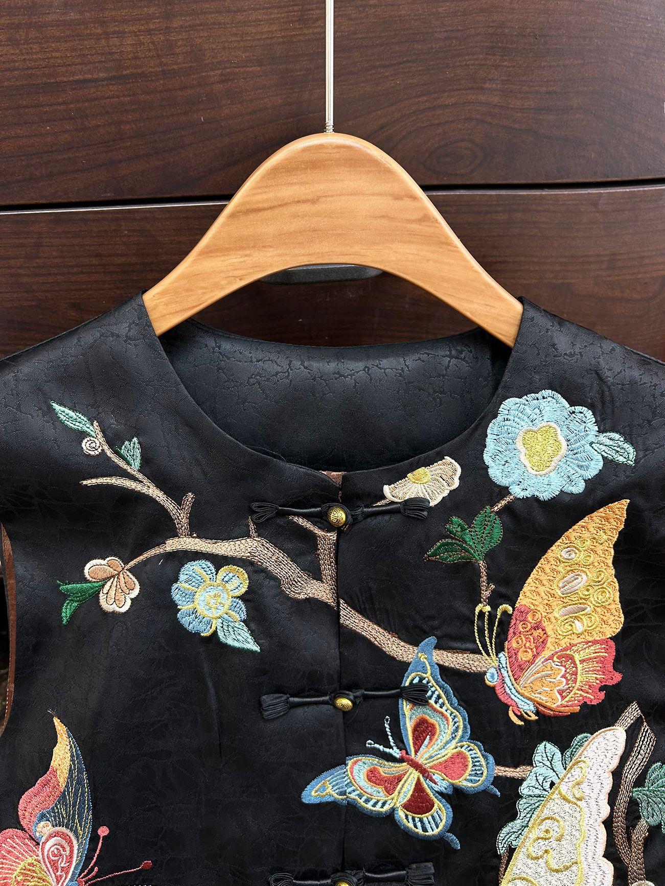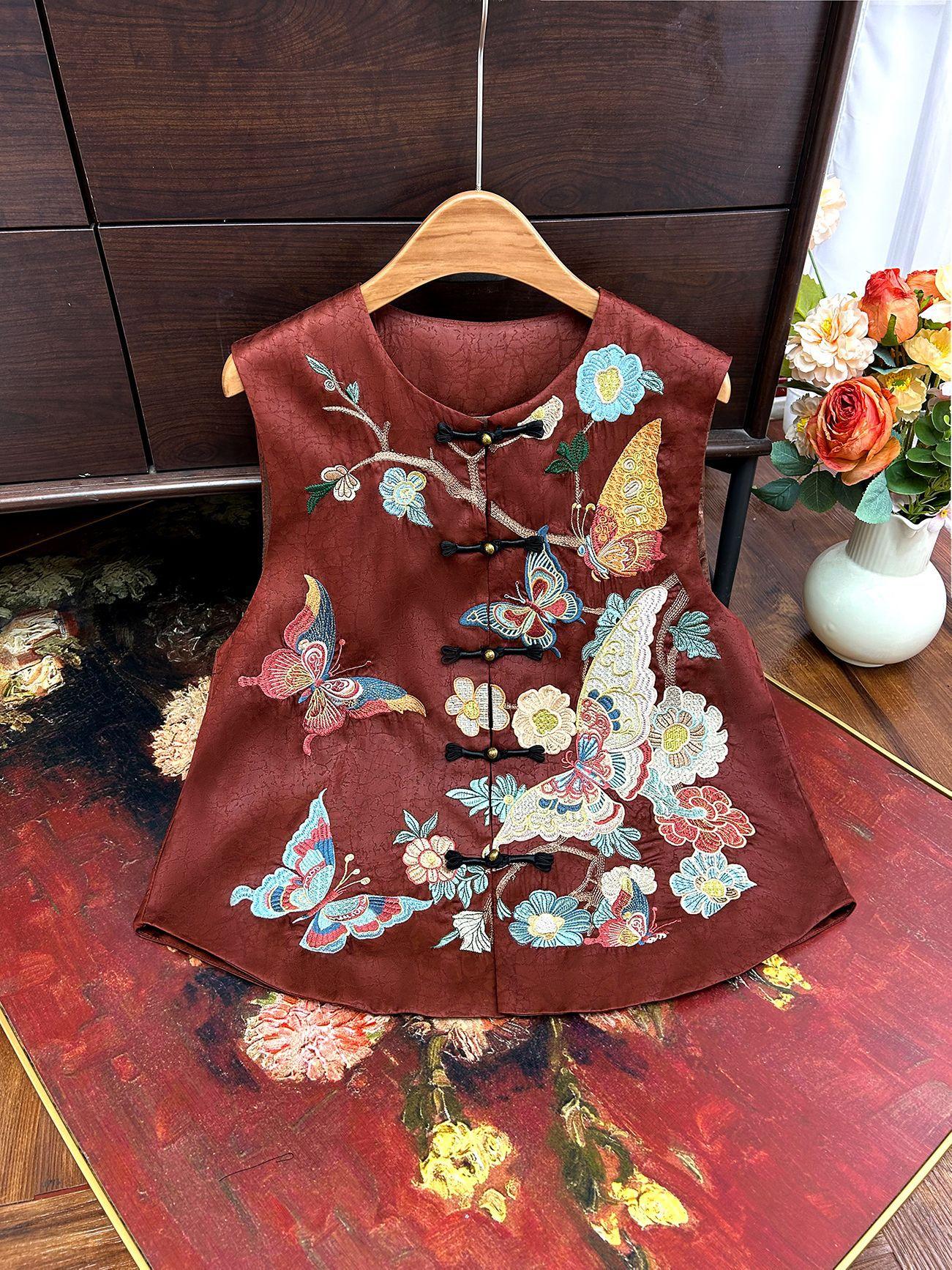 Chaleco de Bordado de Mariposas de Industria Pesada de Estilo Chino Nuevo para Mujer 2025 Primavera Nuevo Estilo Nacional Vintage Artístico con Hebilla