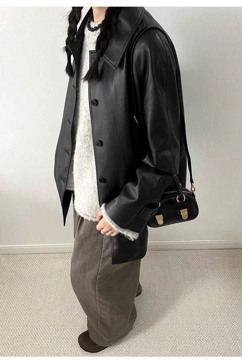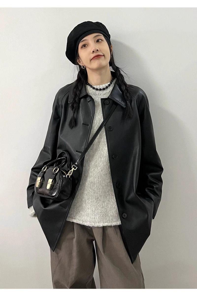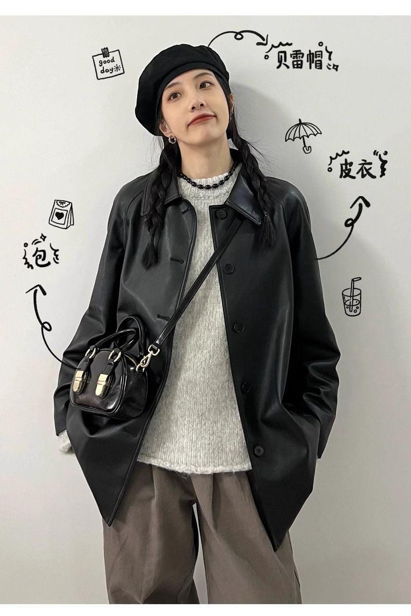 Chaqueta de Cuero Negra para Mujer 2025 Otoño e Invierno Nuevo Estilo Popular Chaqueta Única Super Bonita Petite Biker Tendencia
