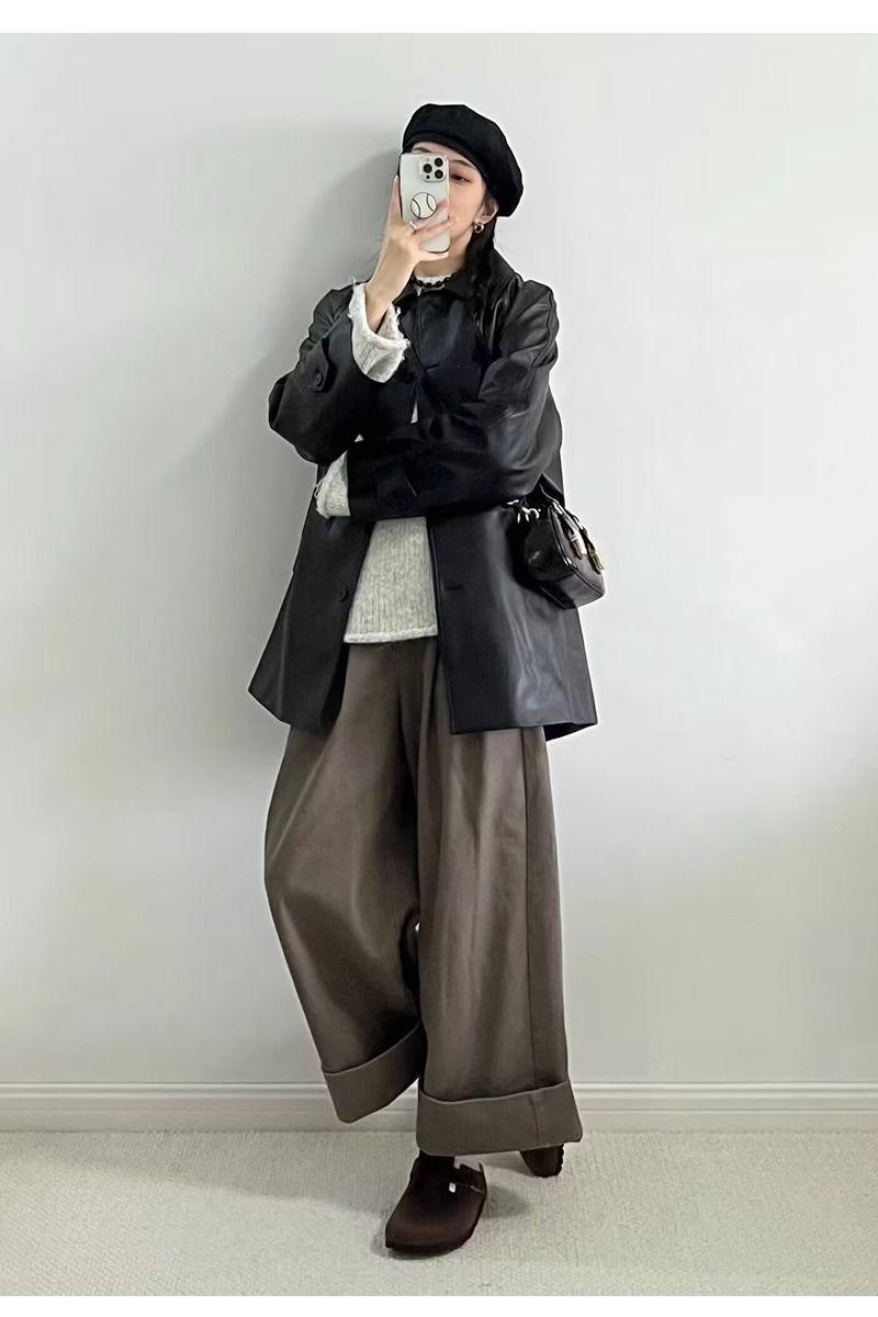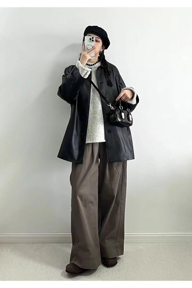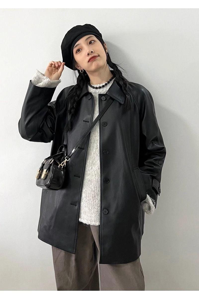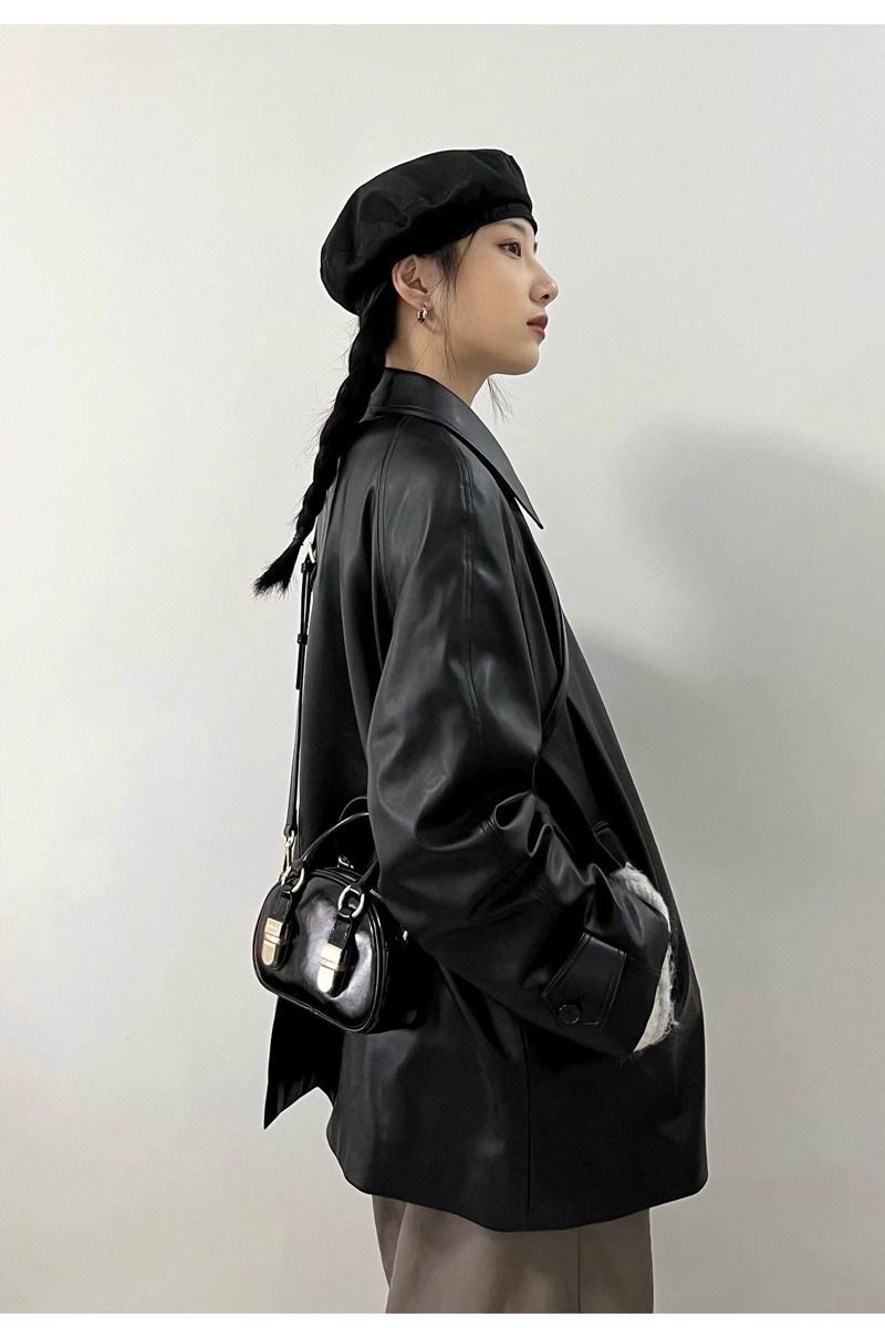 Chaqueta de Cuero Negra para Mujer 2025 Otoño e Invierno Nuevo Estilo Popular Chaqueta Única Super Bonita Petite Biker Tendencia