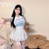 Camiseta Heroína de Alta Inteligencia Blanca Cuello de una Línea para Mujer Verano Falda Elegante Estilo Coreano Estilo Lazy Conjunto de Tres Piezas