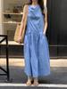 Vestido Chaleco Sin Mangas con Cuello Oscilante Estilo Francés para Mujer, Nuevo Modelo Verano 2026, de Cintura Alta, Adelgazante, Vestido Largo Blanco Sencillo