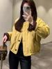 Abrigo Corto de Algodón Estilo Coreano para Mujer Invierno 2024 Nuevo Sencillo Moda Puño Color Contraste Top Abrigo de Algodón