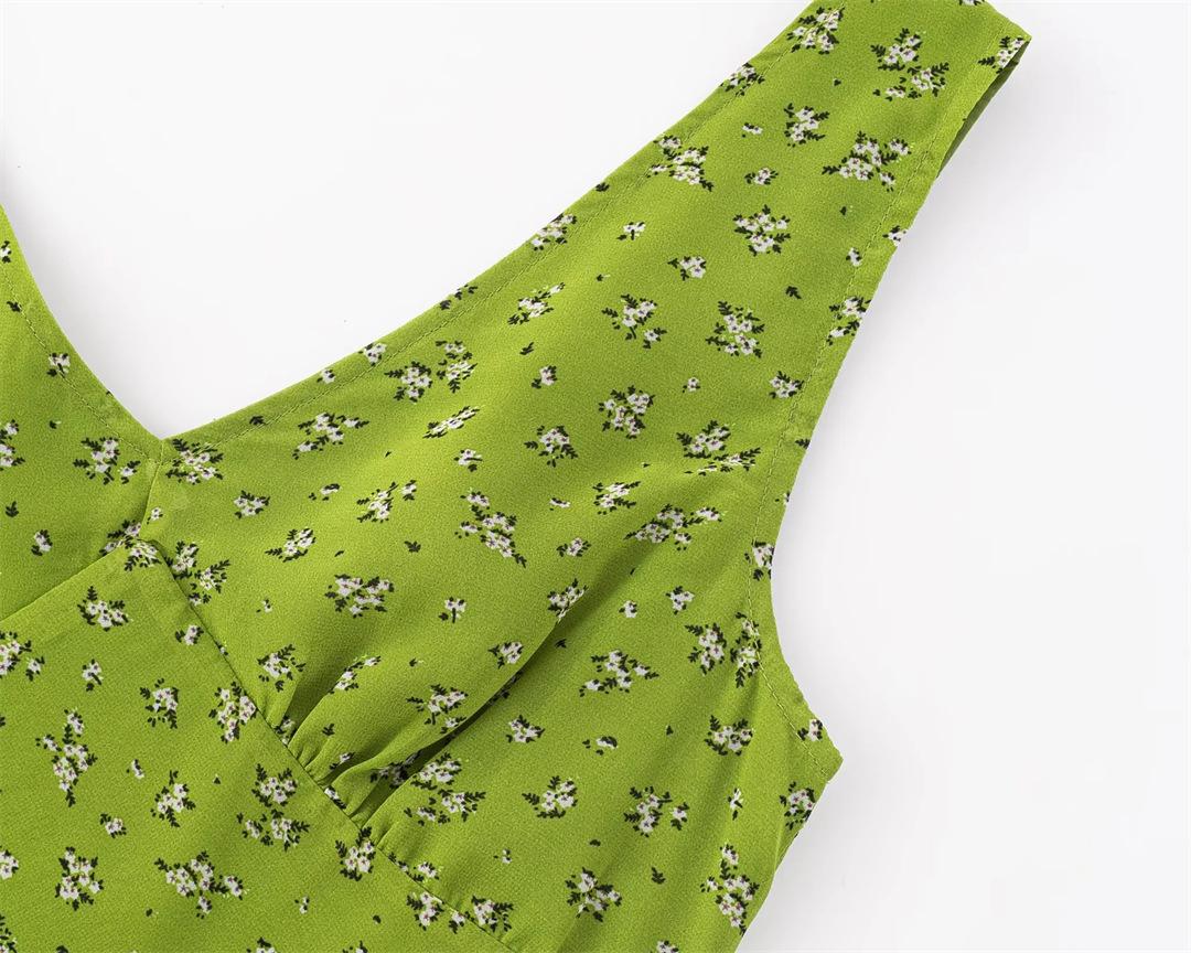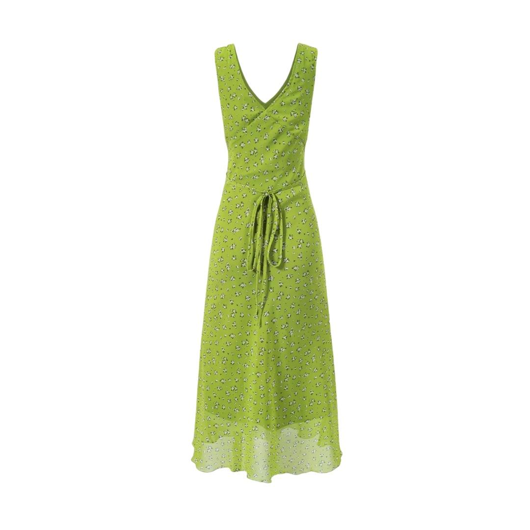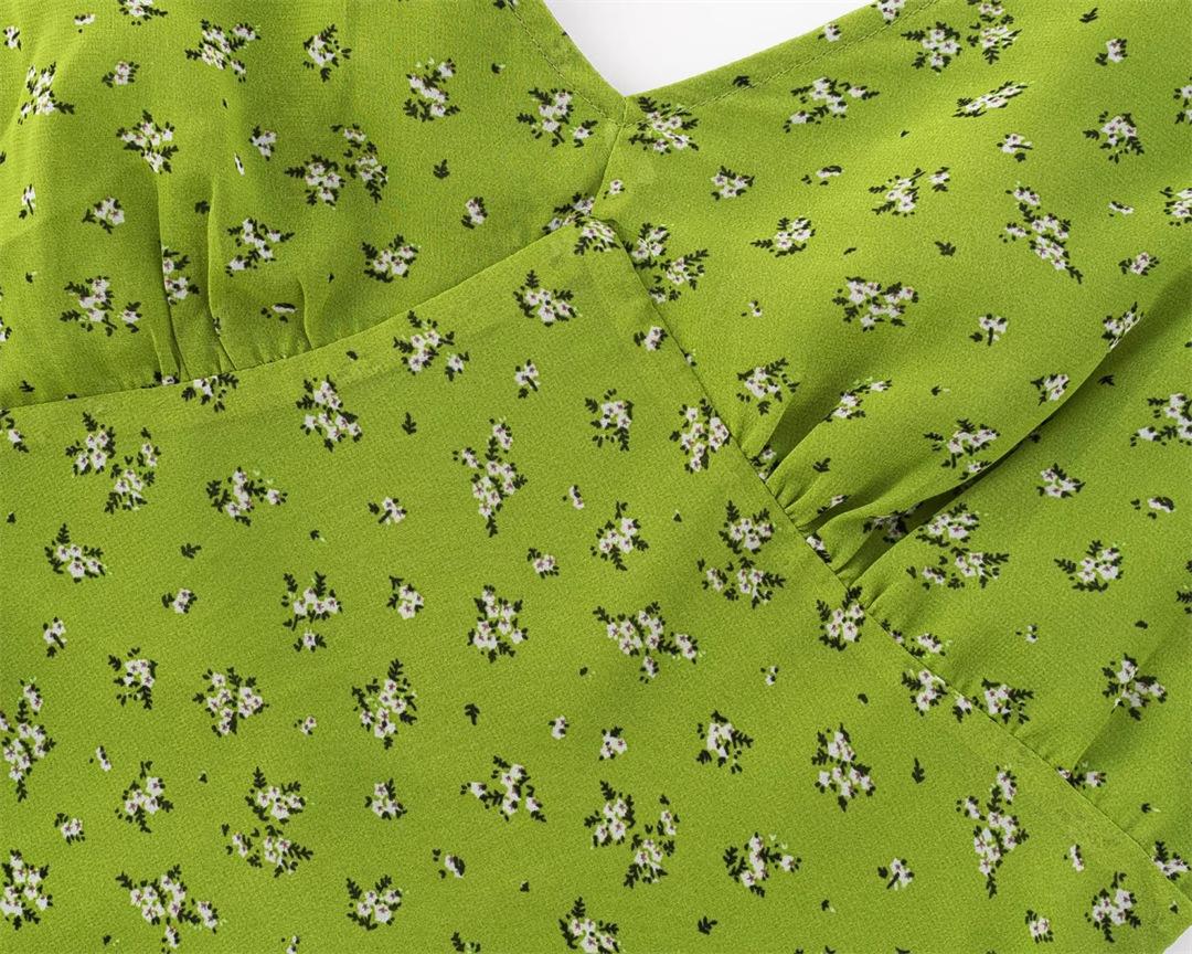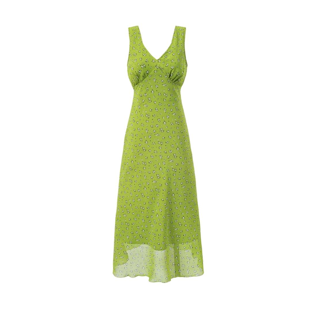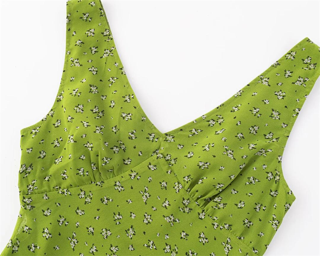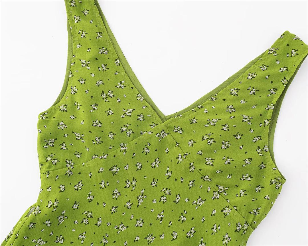 Vestido Camisola Dulce Floral Estilo Francés Cuello en V Francés Sexy Ajustado Vacaciones de Playa Vestido Largo