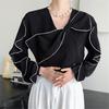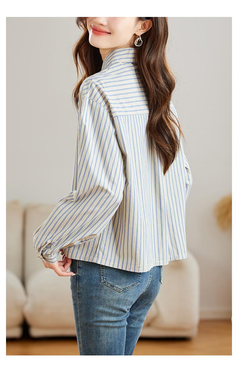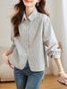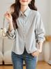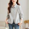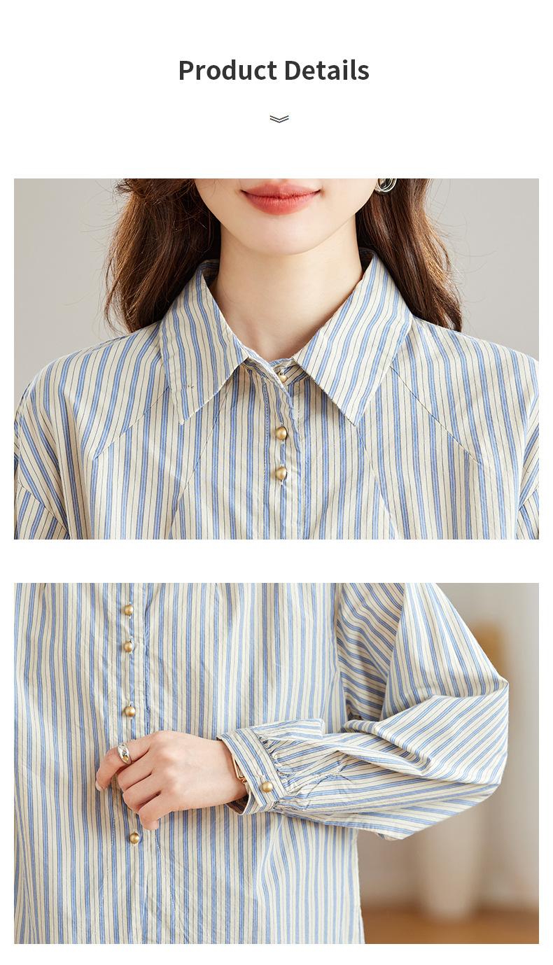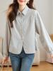 [Personalizado] Camisa a Rayas con Cuello para Mujer 2025 Primavera Nueva Top Camisa Casual de Alta Gama con Botones de Perla