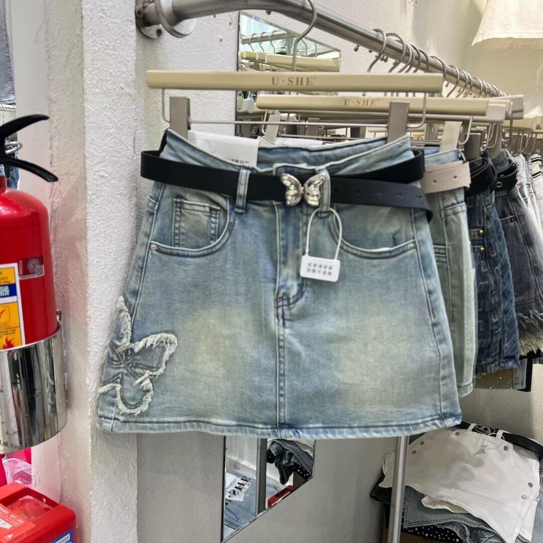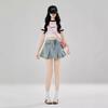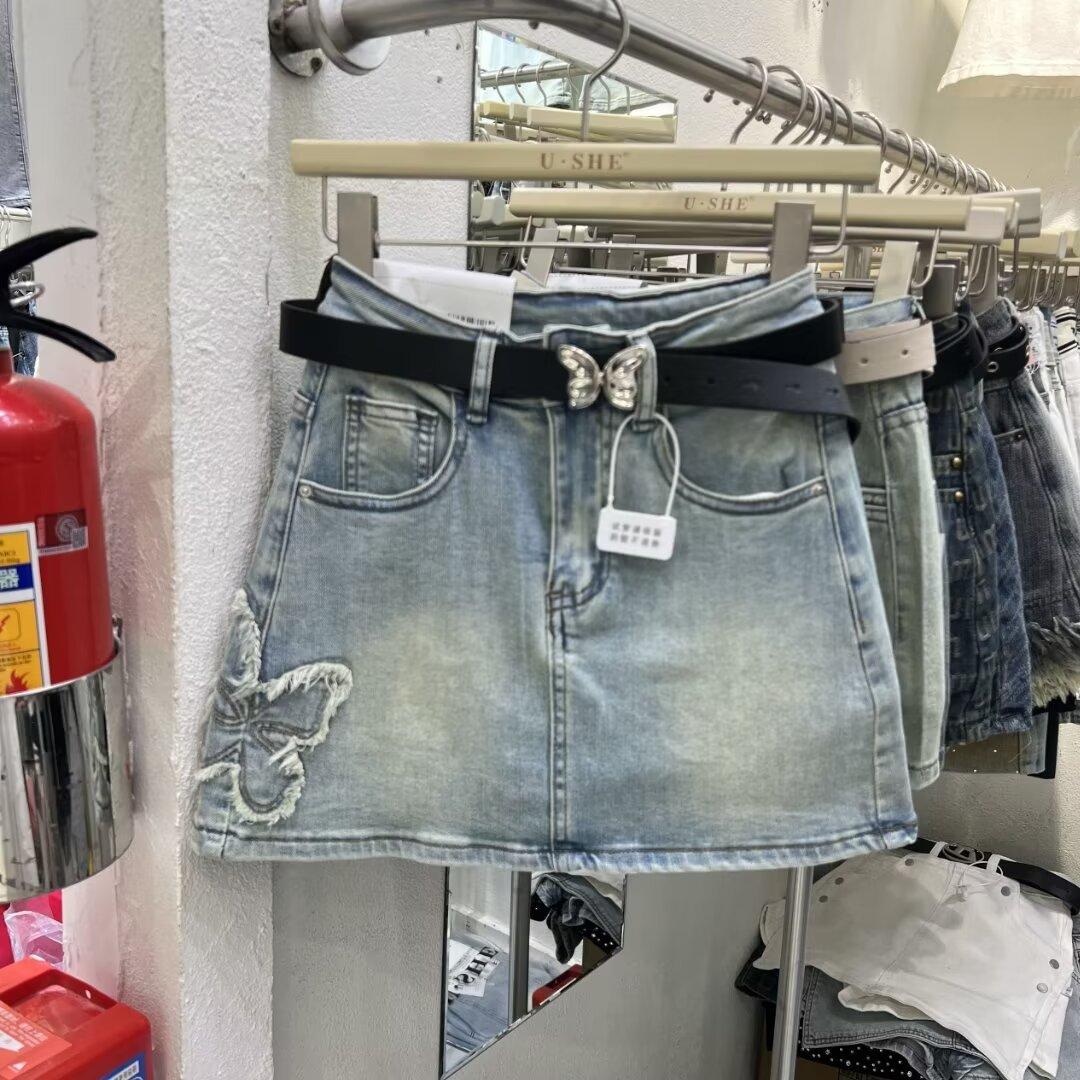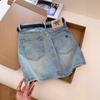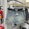 Falda Corta de Mezclilla de Verano Anti-Exposición para Mujer 2024 Nueva Falda Nostálgica de Cintura Alta Look Adelgazante Falda Versátil de Línea A de Color Claro