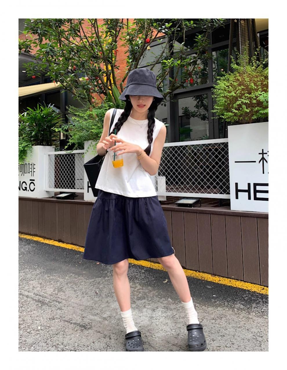 Navy blue skirt with flap pocket pants eleganteasiest for match