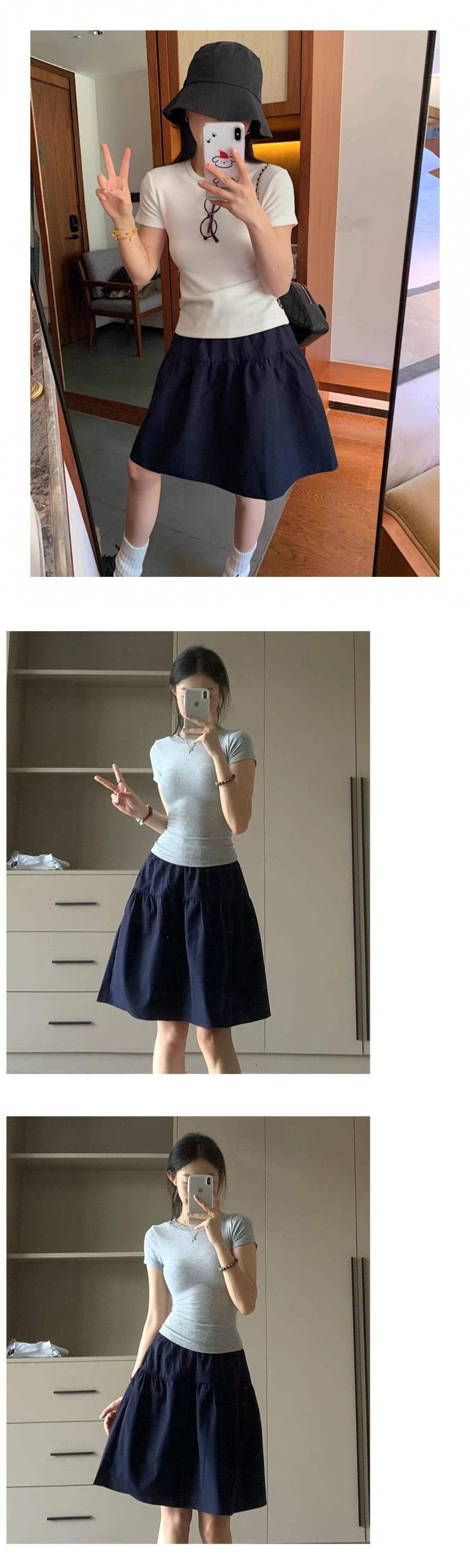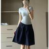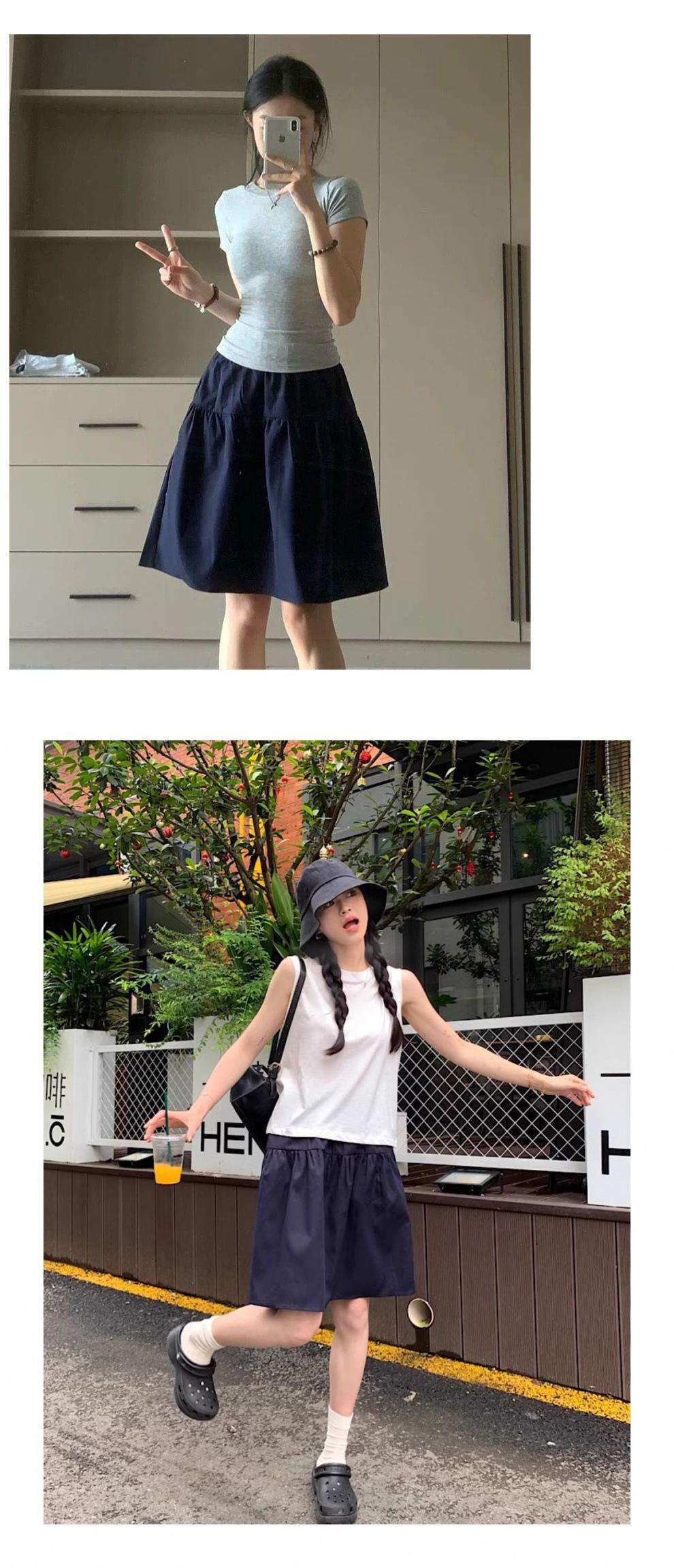 Falda Casual Elástica Estilo Japonés 2025 Verano Nuevo Cintura Alta Estilo Universitario Versátil Adelgazante Azul Marino