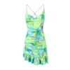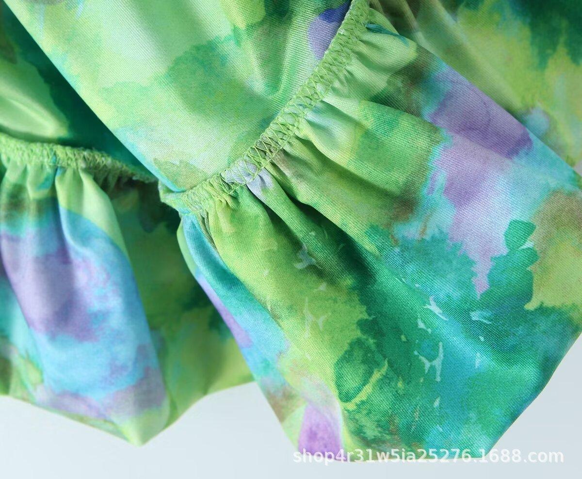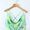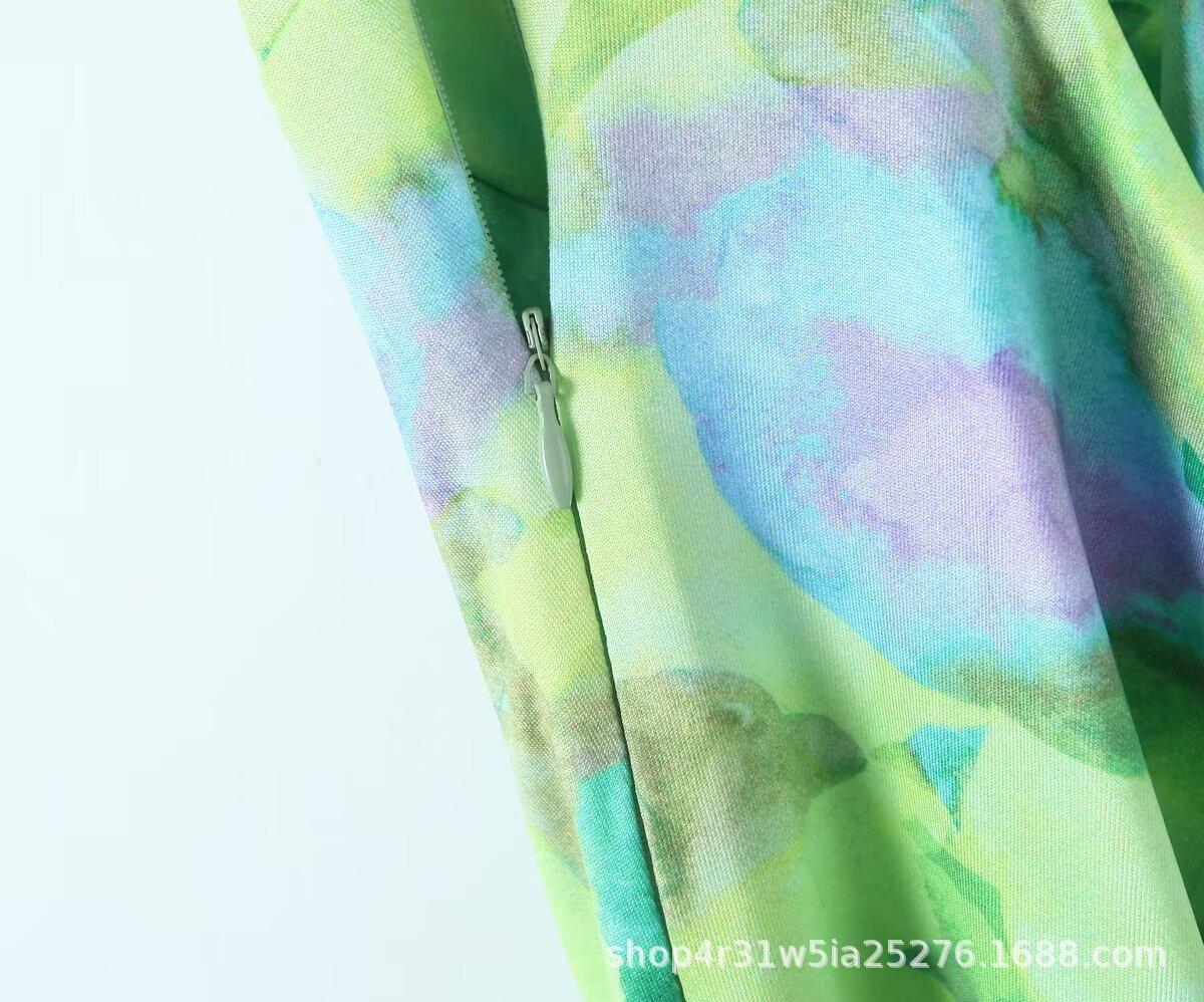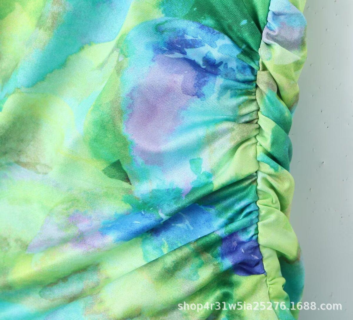 Europeo y Americano 2024 Nuevo Estilo de Verano Look Adelgazante y Versátil Francés de Alta Elasticidad Estampado Asimétrico Vestido de Tirantes Falda Corta