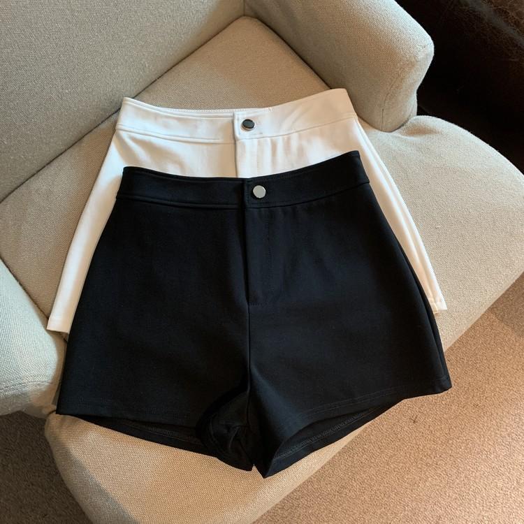 Shorts de Traje Negros para Mujer Verano Delgados 2025 Petite Cintura Alta Adelgazantes Línea A Ajustados Elásticos Hot Pants