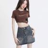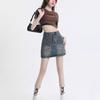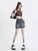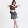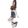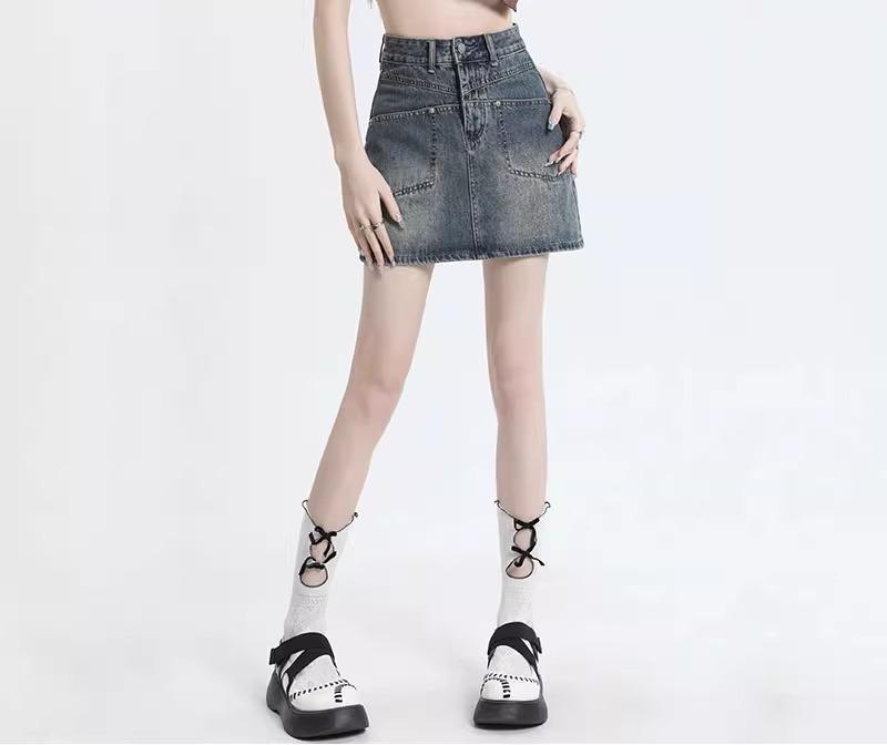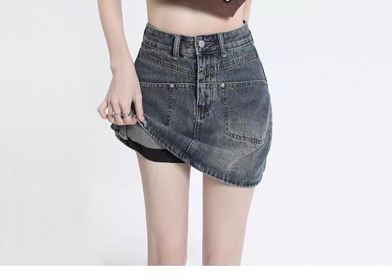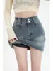 Falda de Mezclilla de Cintura Alta Antideslumbrante para Mujer Verano Nuevo Estilo Americano Spice Girl Adelgazante Recta Línea A Cadera Falda Corta