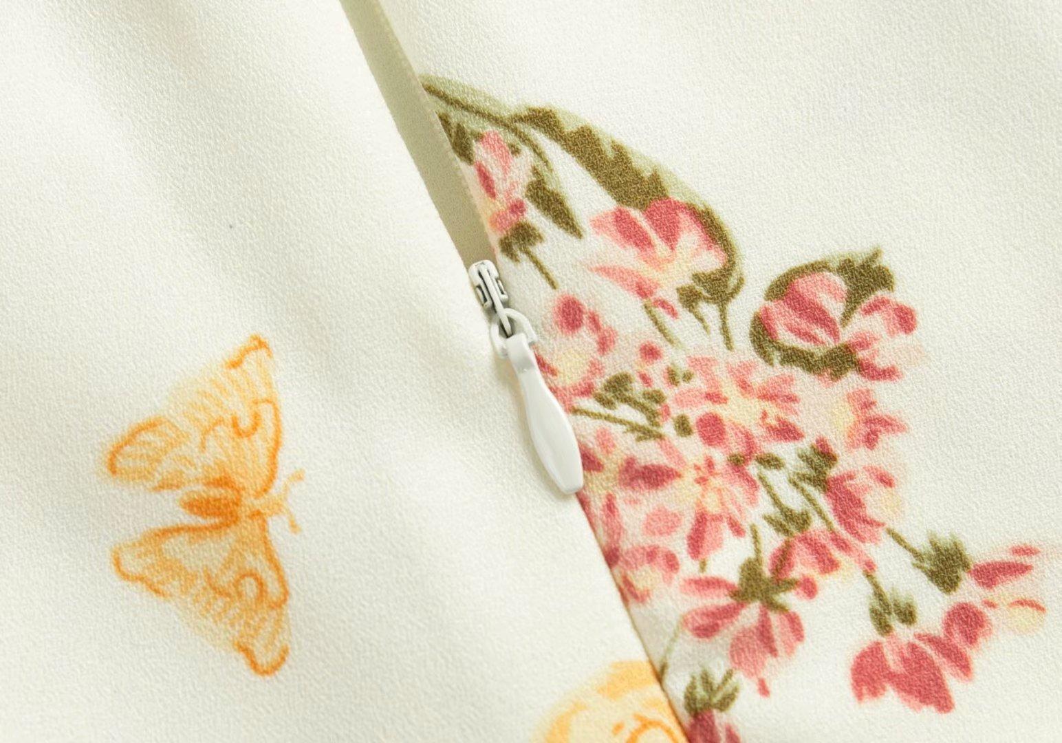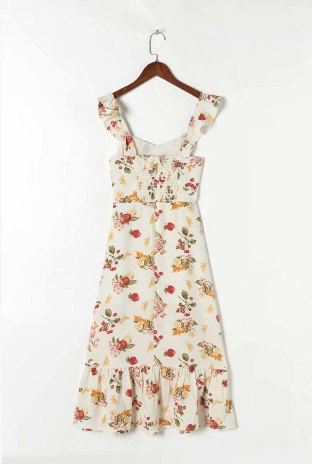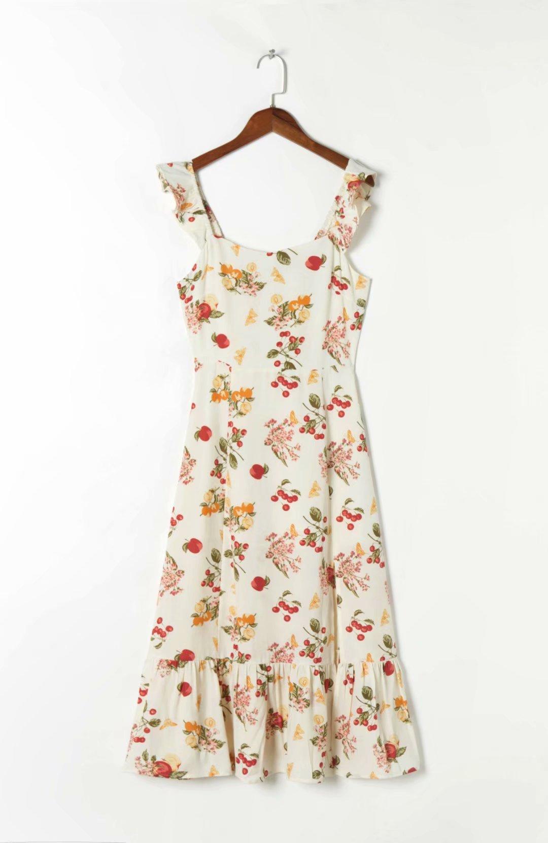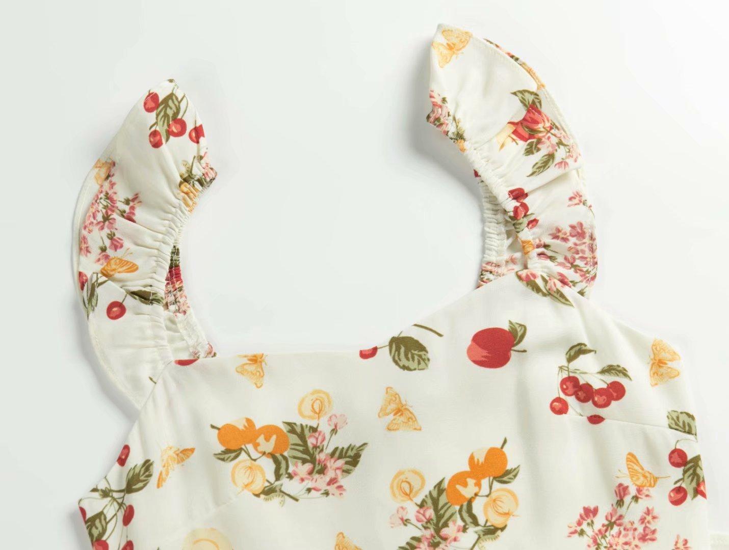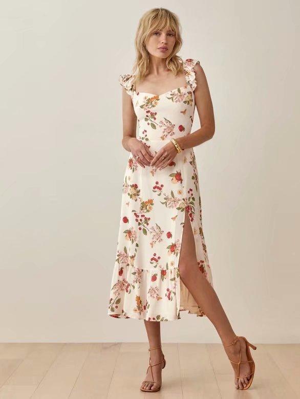 Vestido Midi Europeo y Americano Estampado Elegante para Viaje Largo Medio Abertura Media Manga Sexy Tirantes Cintura Alta Encaje Volantes