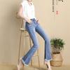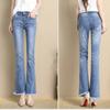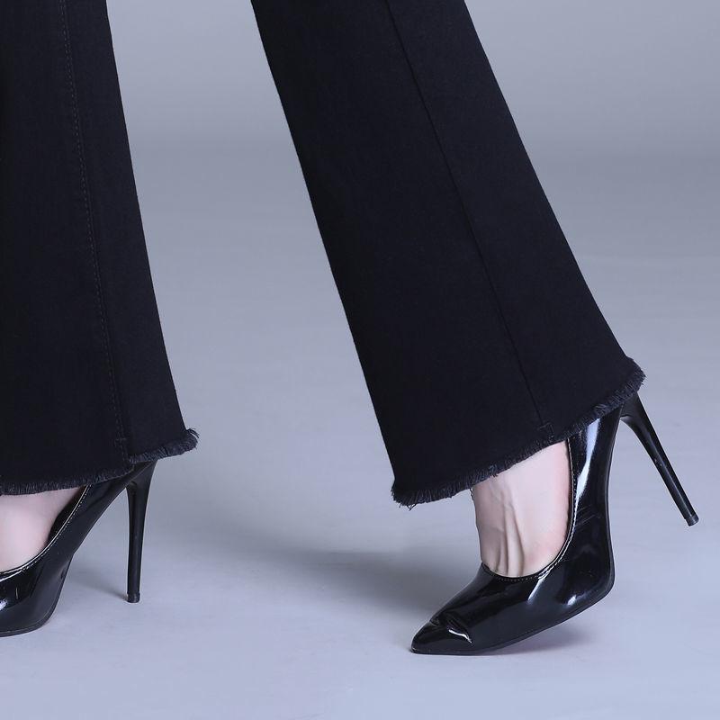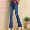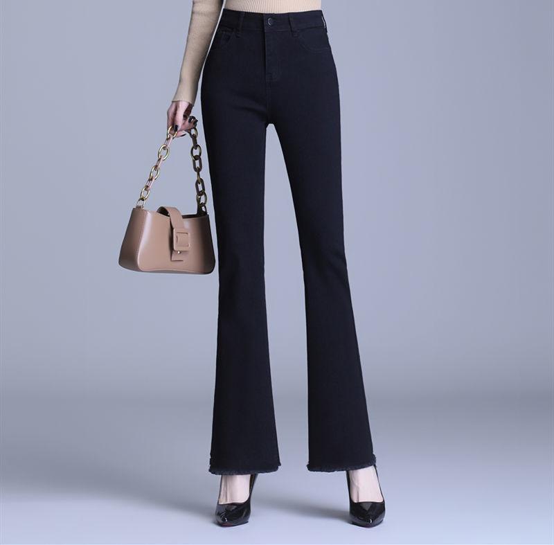 Jeans Acampanados de Cintura Alta para Mujer, Otoño 2024 Gruesos Sueltos Elásticos Dobladillo Crudo Pantalones Acampanados, Pantalones Largos Adelgazantes de Moda