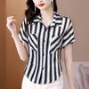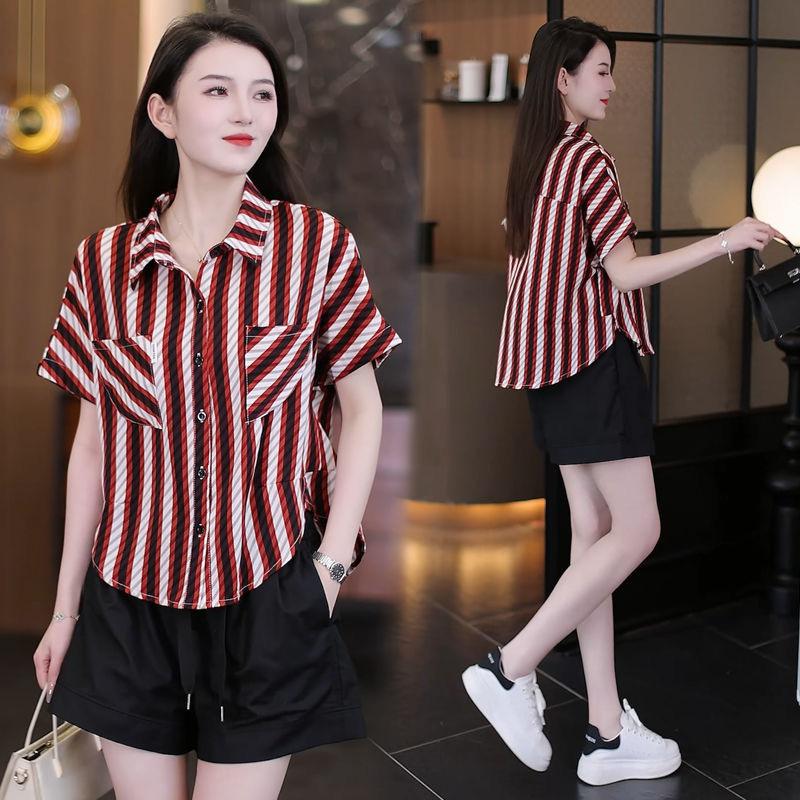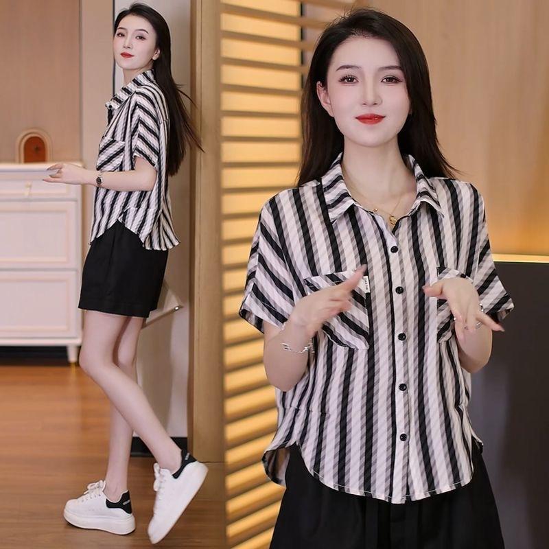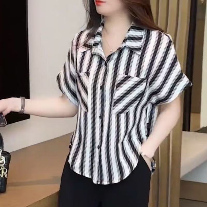 Camiseta de Manga Corta para Mujer 2025 Verano Estilo Coreano Rayas Costuras Moda Suelta Talla Grande Ropa de Mujer Ventas Directas de Fábrica Venta al por Mayor