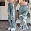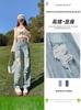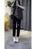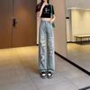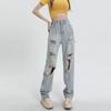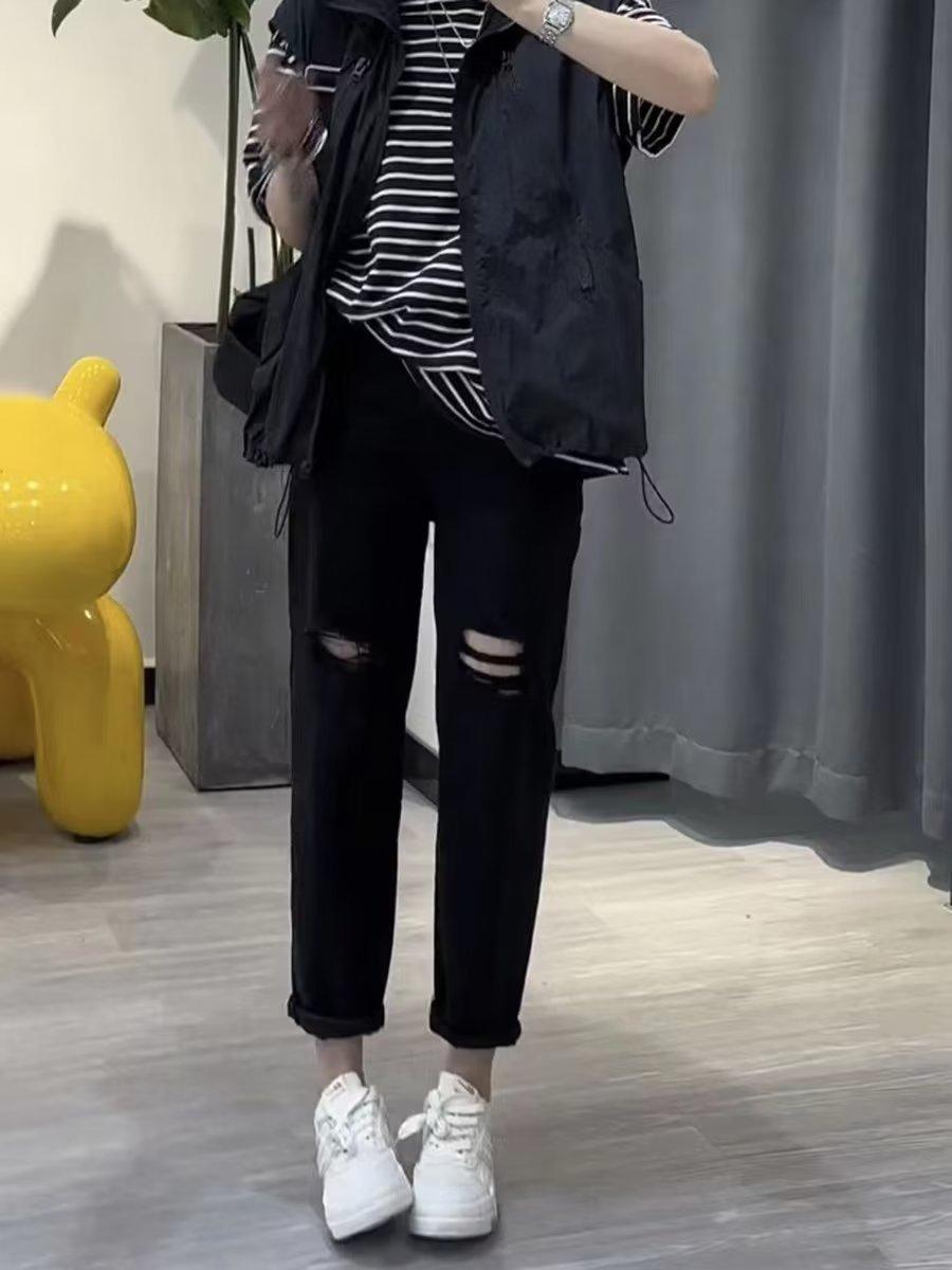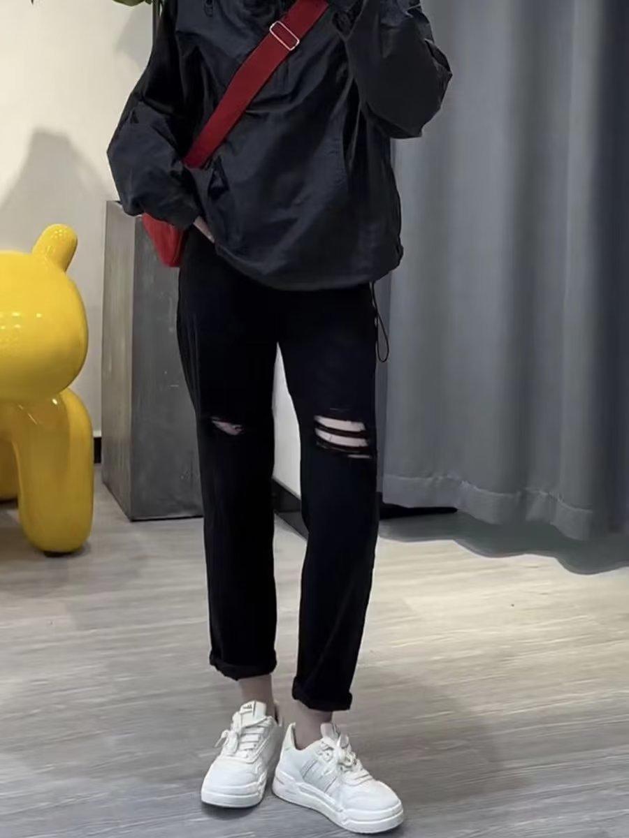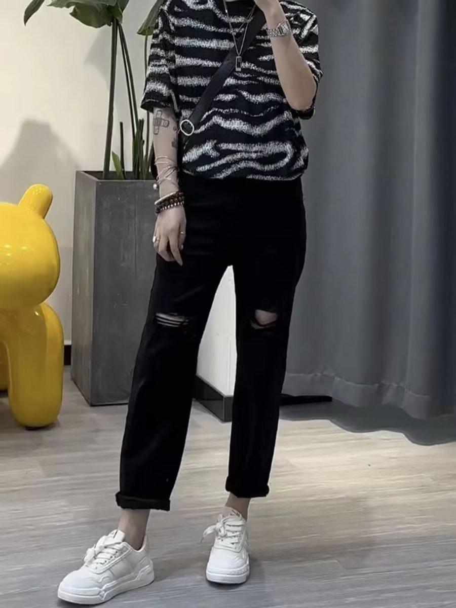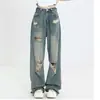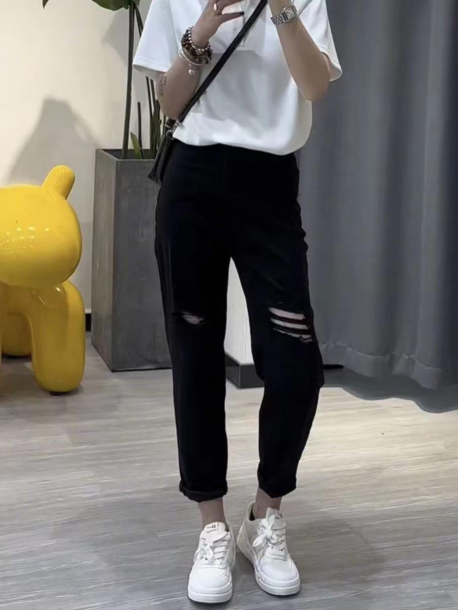 Talla grande Jeans Harlan Negros Rotos Verano para Mujer Delgados para chica gordita Cintura Alta Adelgazantes Recortados Rectos Pierna Ancha