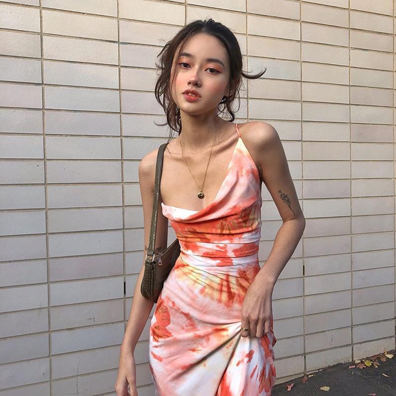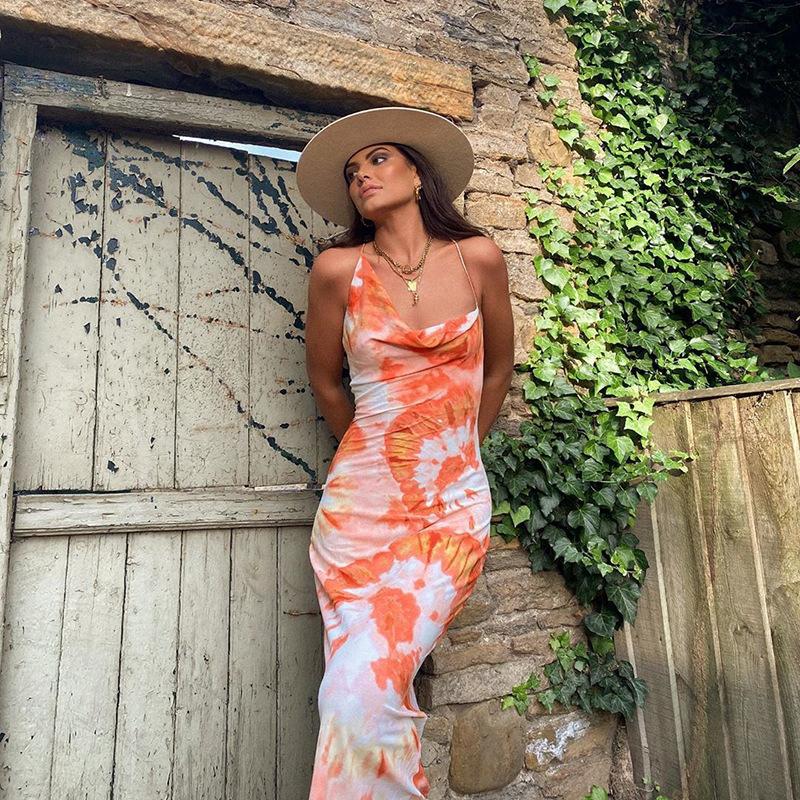 2025 AliExpress Vestido Largo de Verano para Mujer Europeo y Americano Nueva Moda Estampado Tie-Dye Espalda Descubierta Tirantes