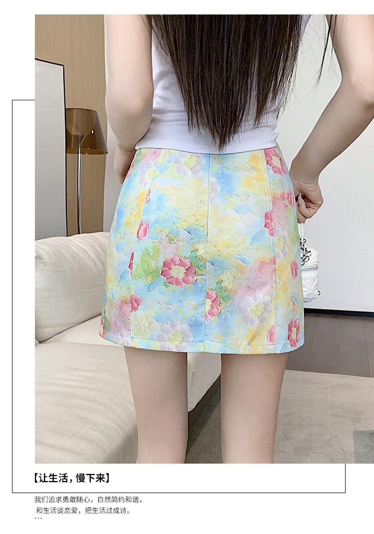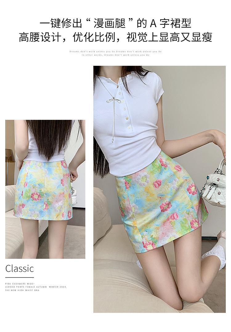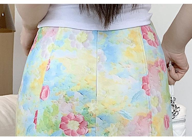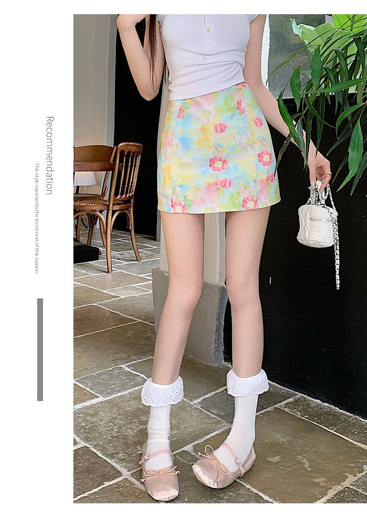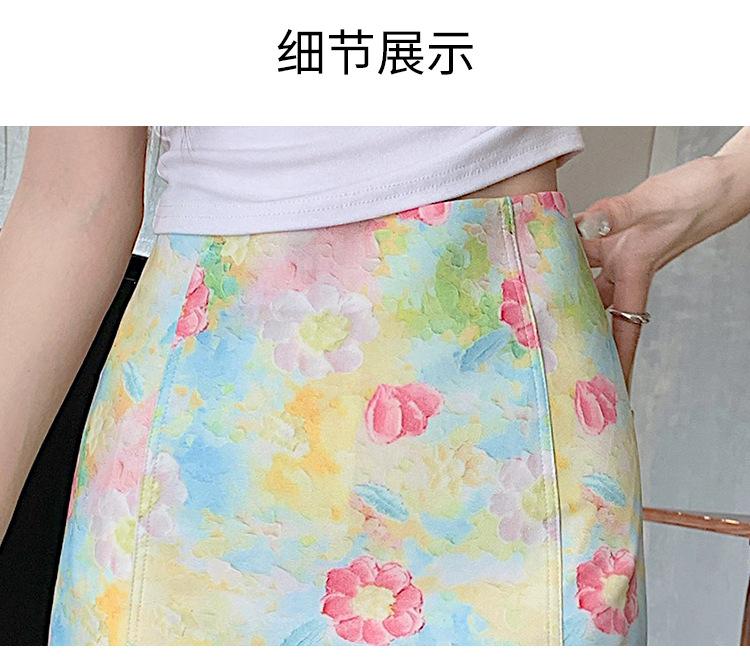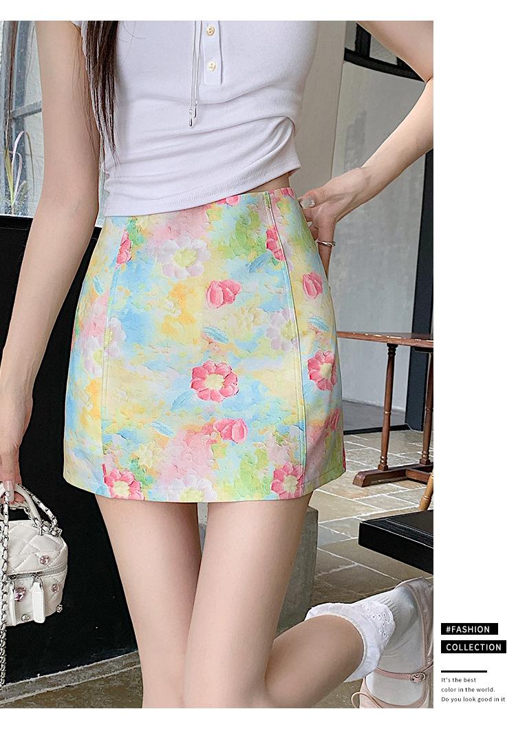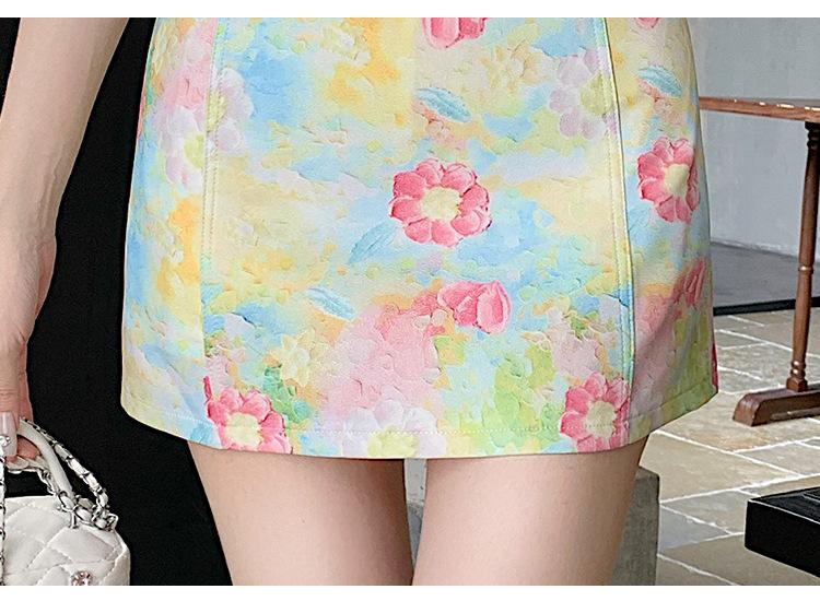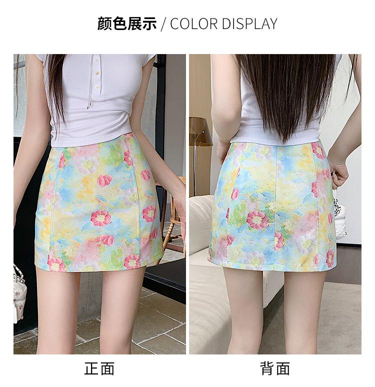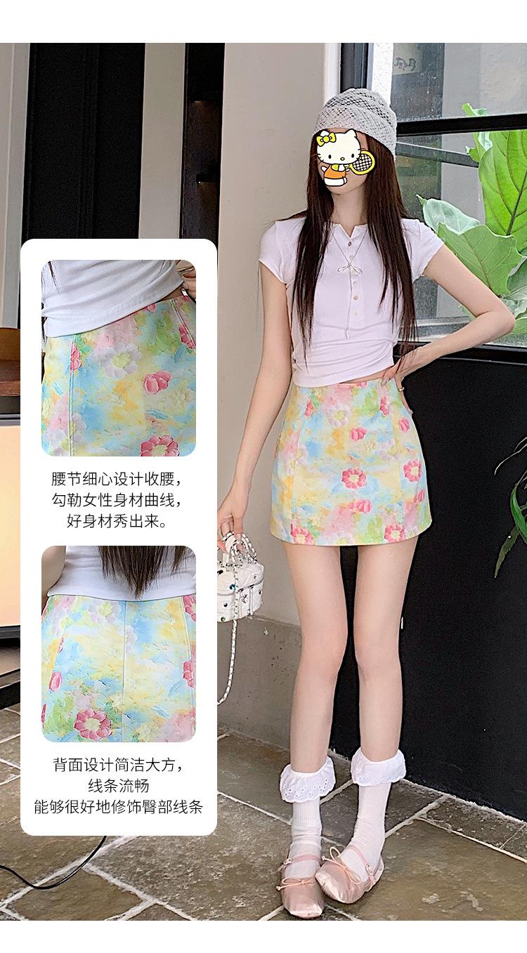 Falda midi estilo pintura al óleo con estampado floral pequeño por toda la prenda para mujer 2025 verano fresca dulce cintura alta corte A ajustada versátil falda corta