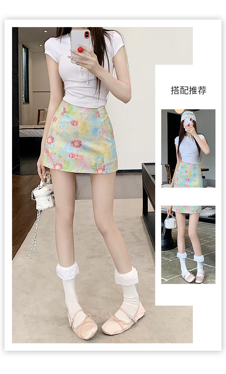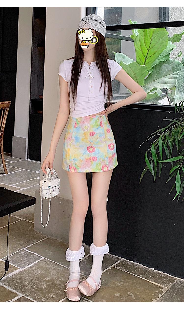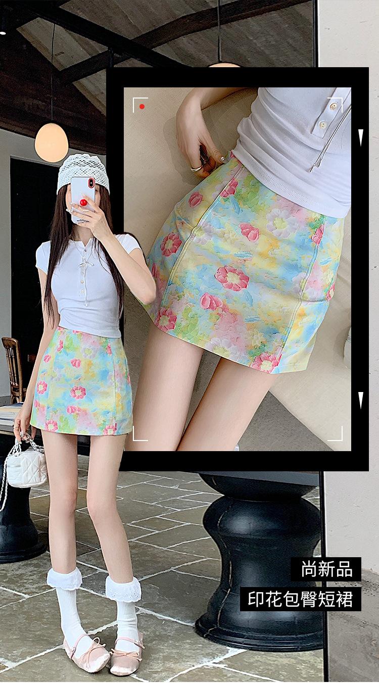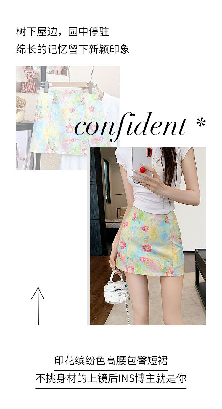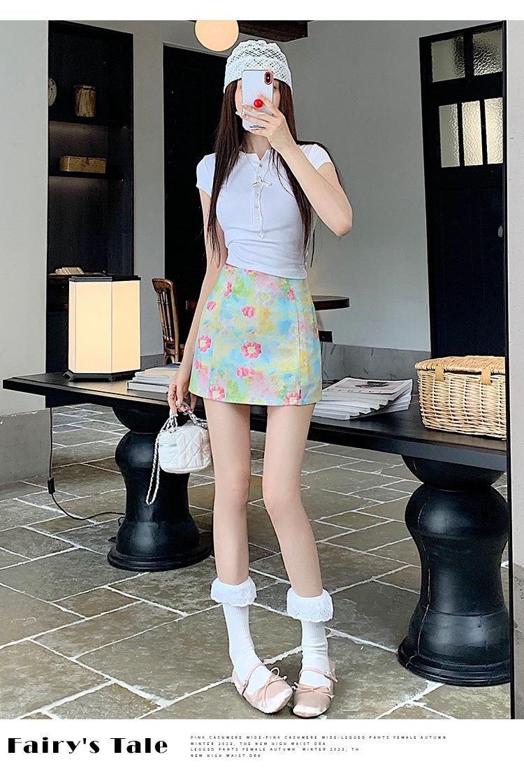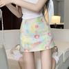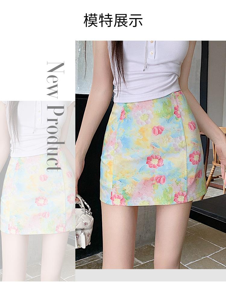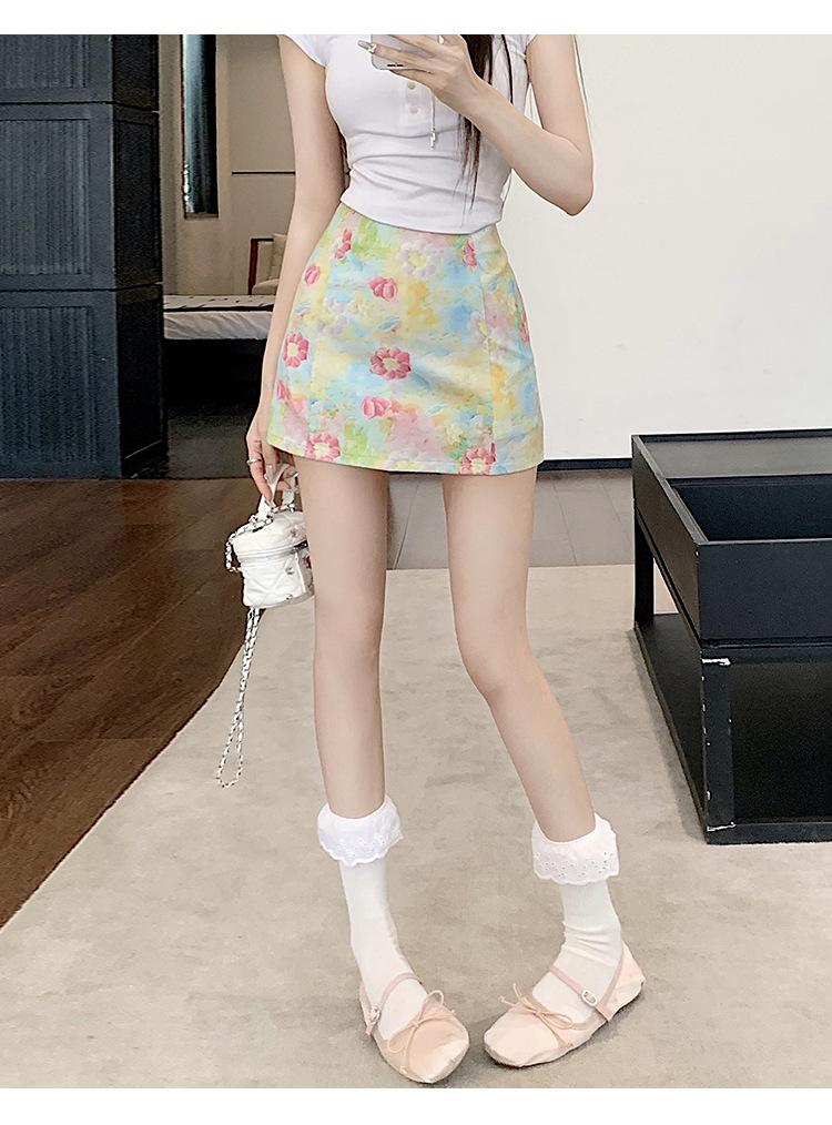 Falda midi estilo pintura al óleo con estampado floral pequeño por toda la prenda para mujer 2025 verano fresca dulce cintura alta corte A ajustada versátil falda corta