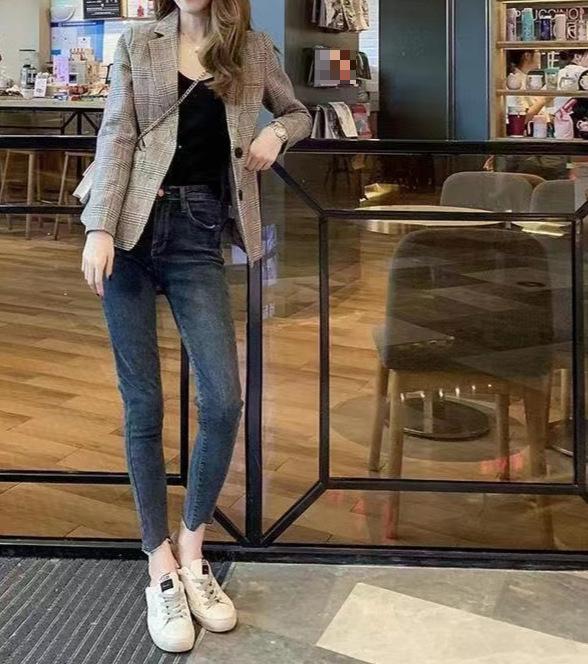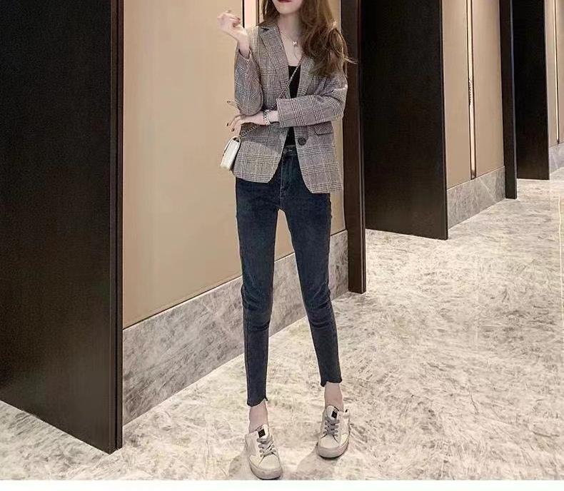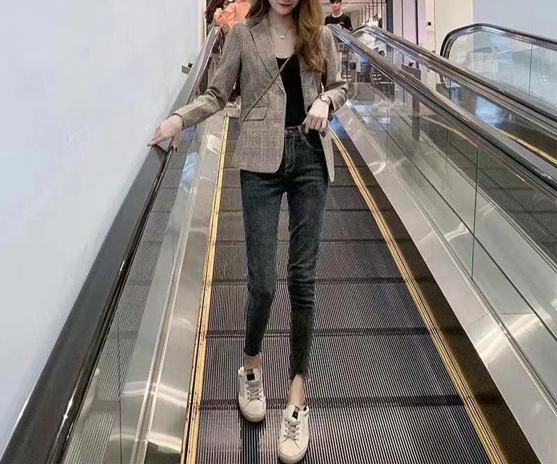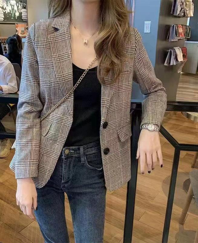 Blazer pequeño para mujer 2024 Primavera y Otoño Delgado Nuevo Estilo Estudiante Estilo Corto Traje Elegante Pequeño a Cuadros para Mujer