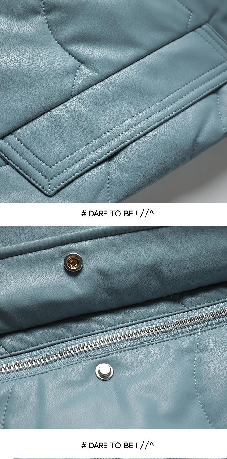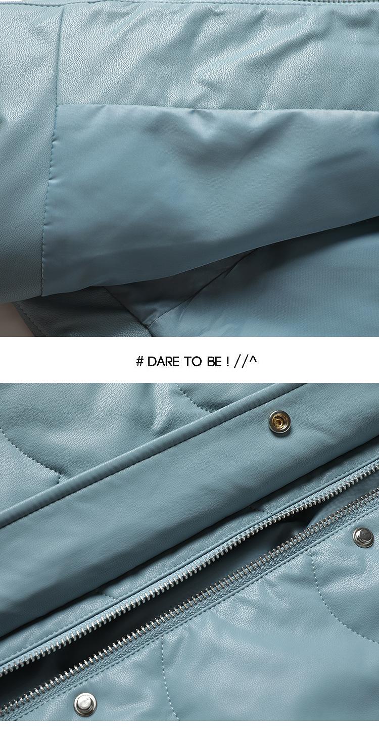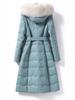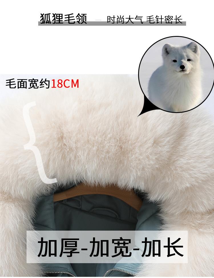 cream white, Khaki color, Blue, Black with black base and white pointed fur collar, Black with gray fur collar