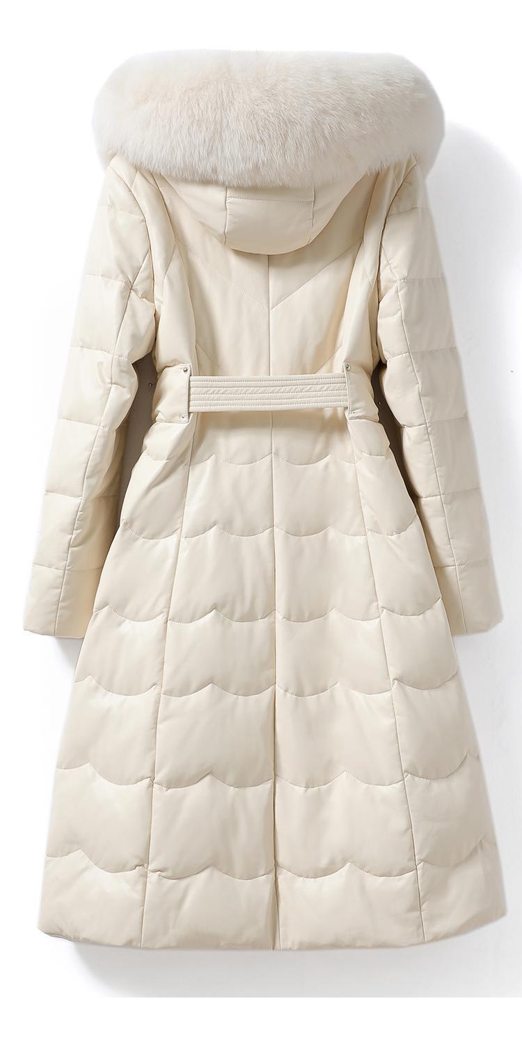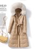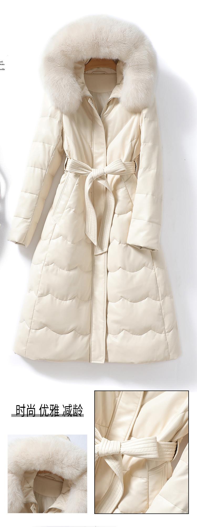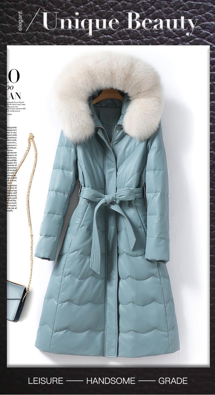 Chaqueta de plumón de piel de oveja de Haining para mujer de longitud media con capucha de piel de zorro 2025 Invierno Nueva chaqueta de cuero genuino