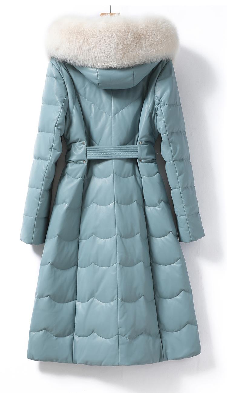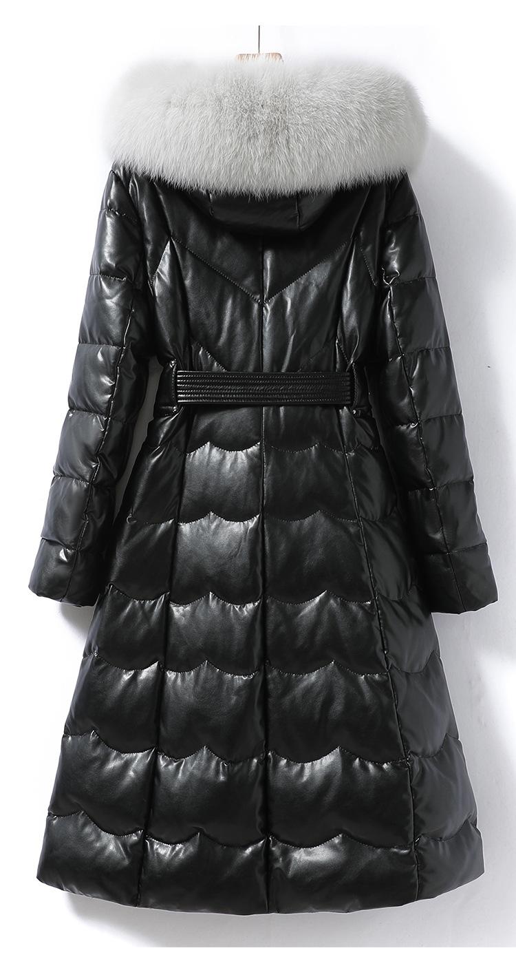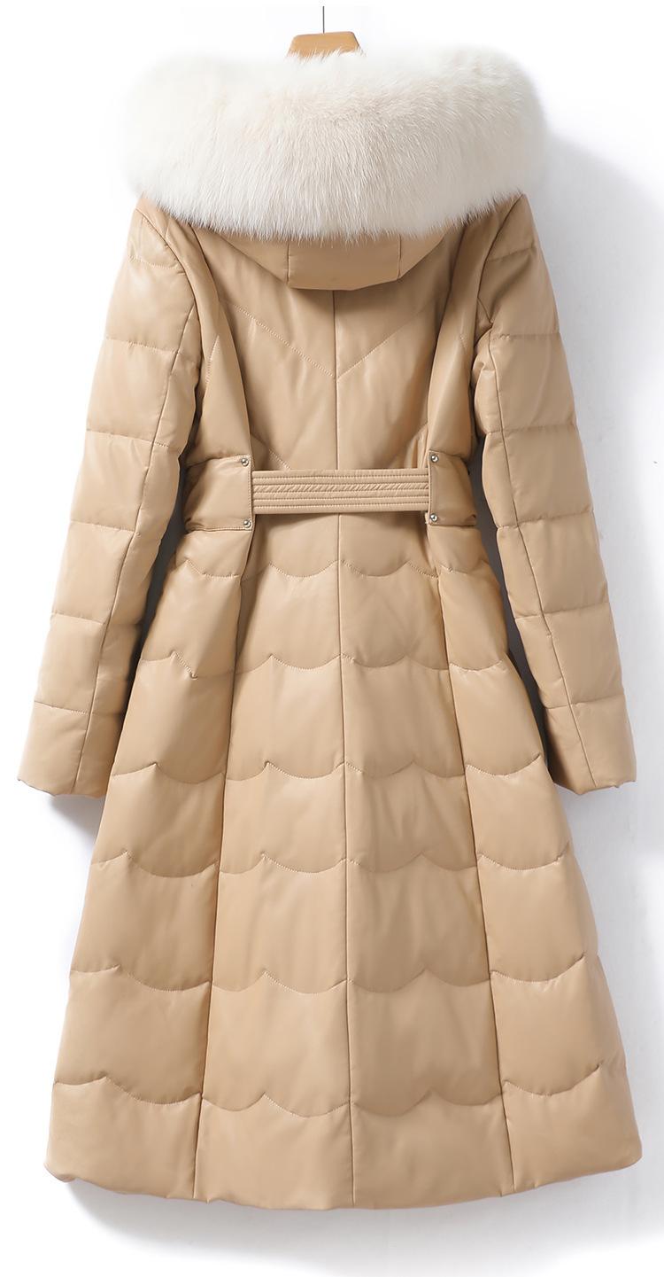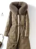 Chaqueta de plumón de piel de oveja de Haining para mujer de longitud media con capucha de piel de zorro 2025 Invierno Nueva chaqueta de cuero genuino