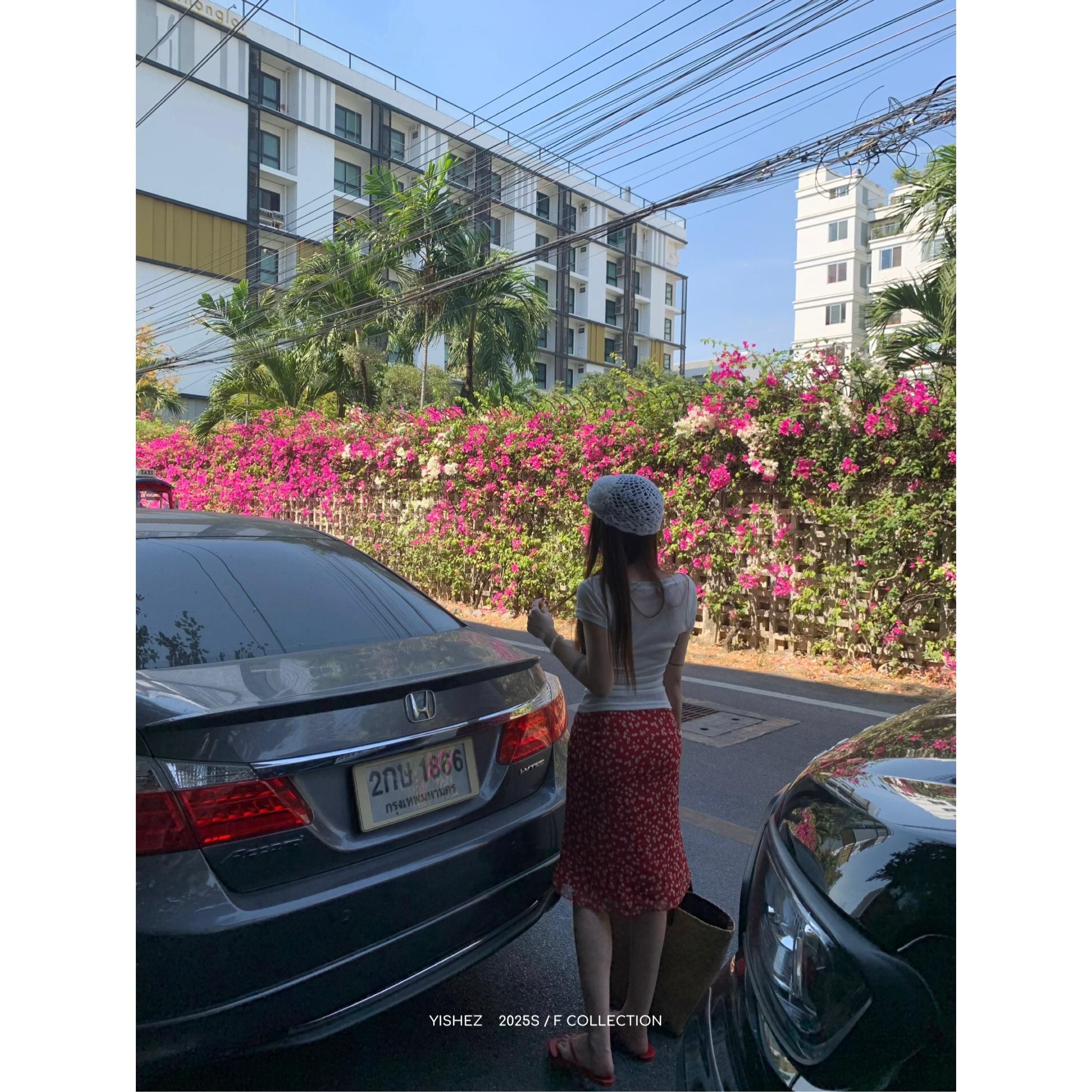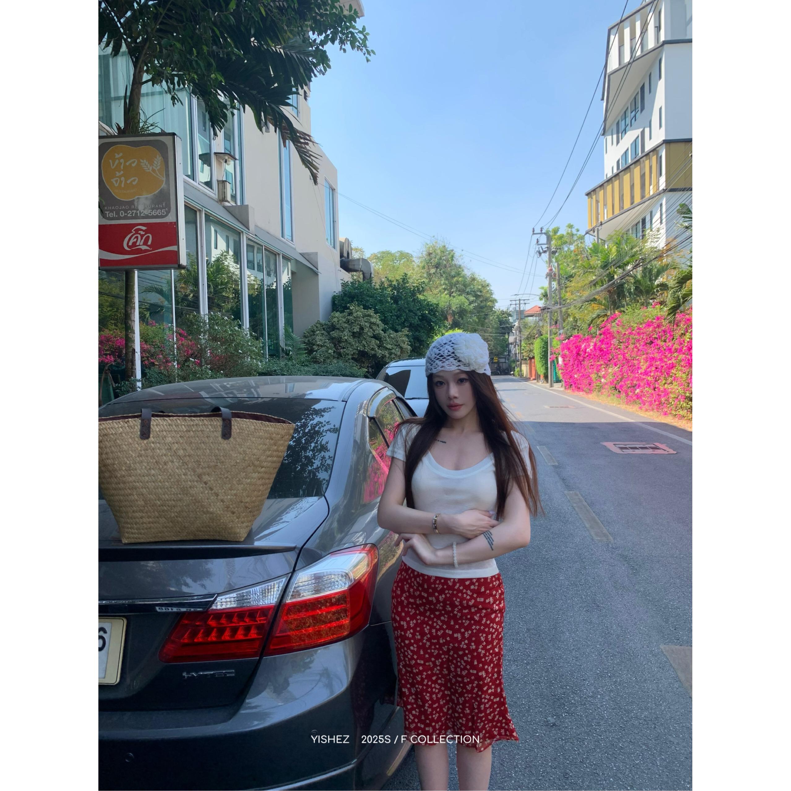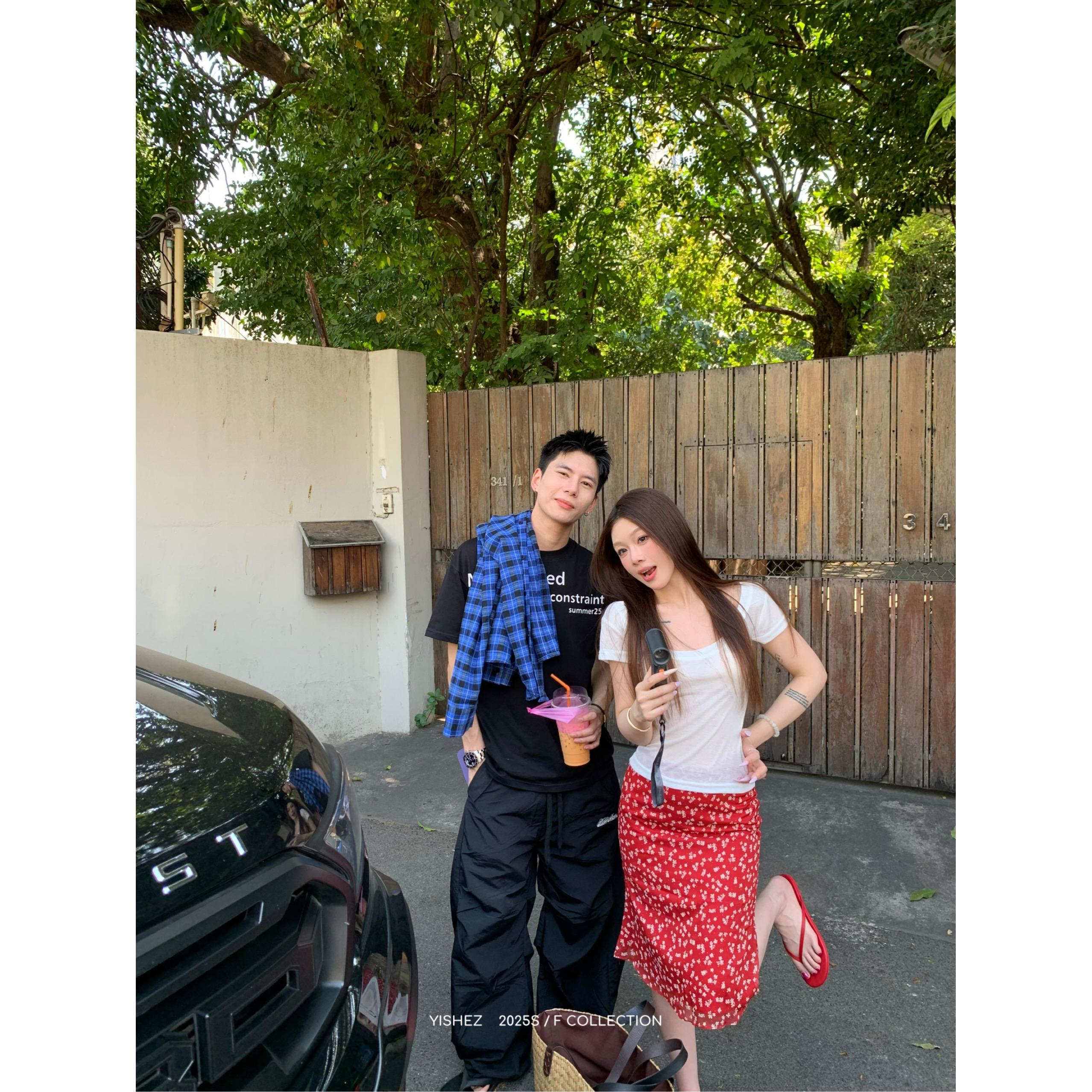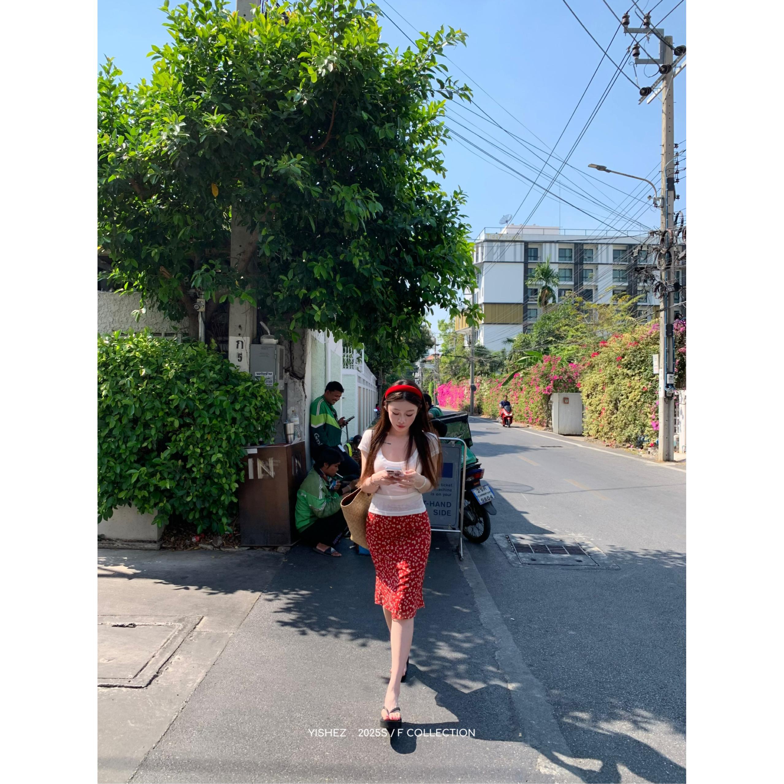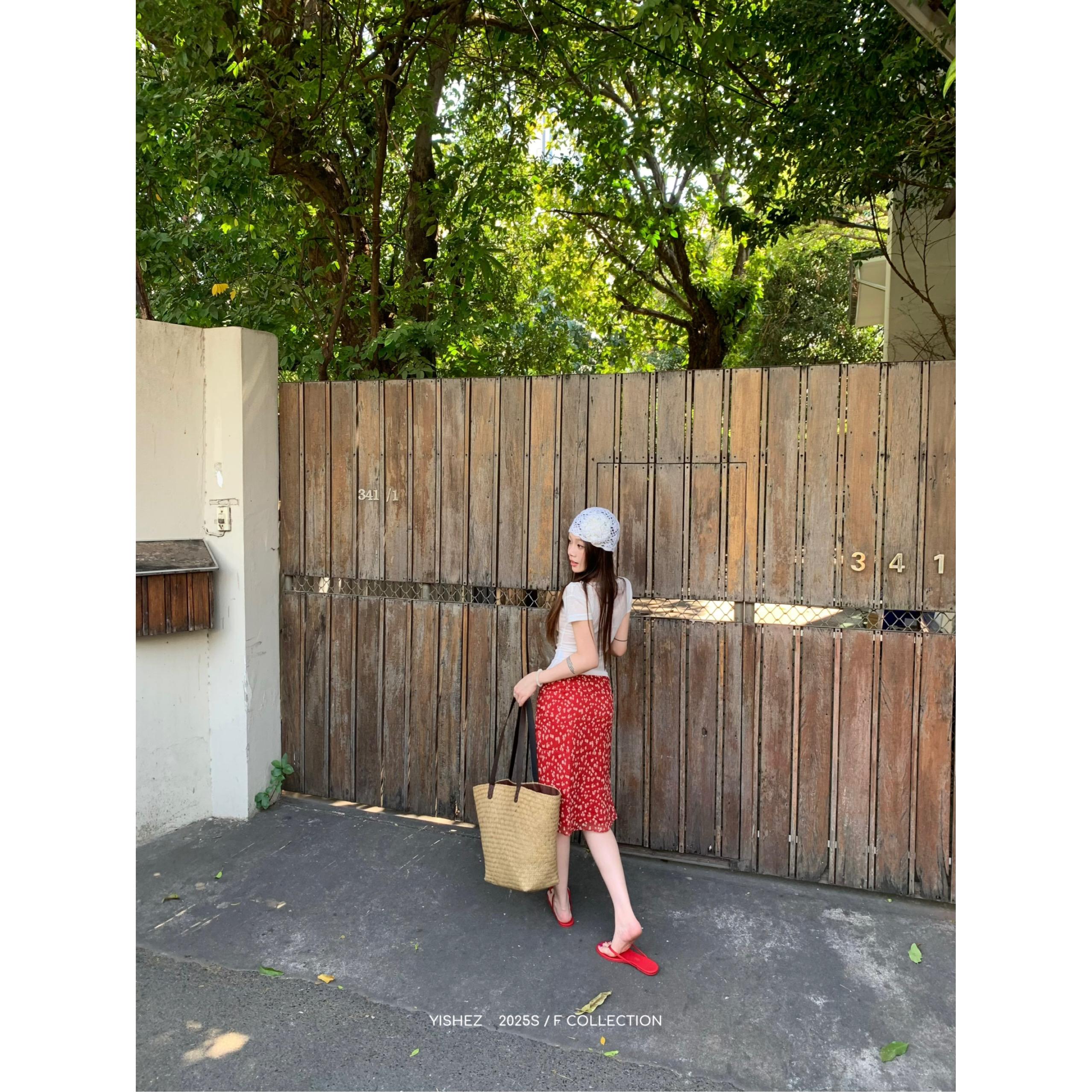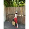 Falda Floral Roja Retro Coreana Verano Nuevo Casual Floral Cubre Cintura Cadera