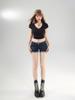 Ropa de Mujer de Seda Naranja # Chica Americana Sexy Cintura Baja Ajustados a la Cadera Shorts de Mezclilla Elásticos de Verano Adelgazantes Versátiles Pantalones Cortos A-Line