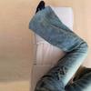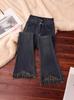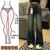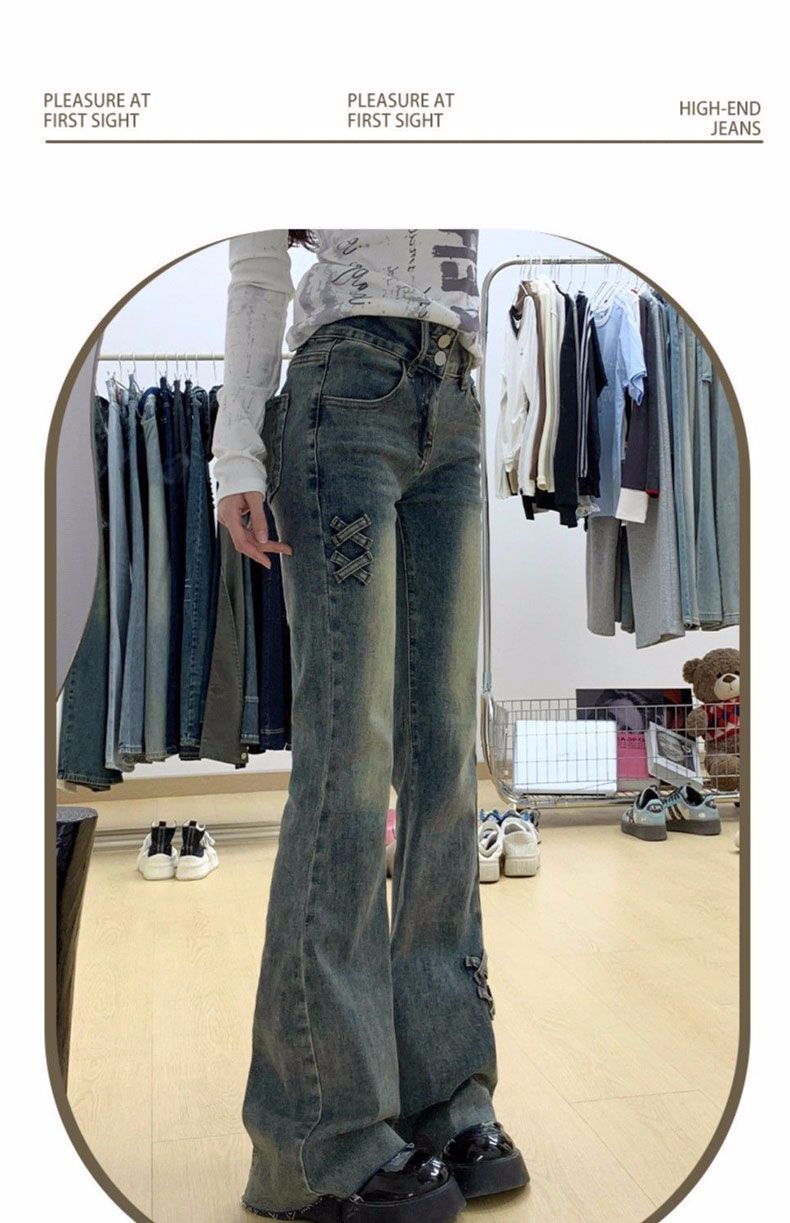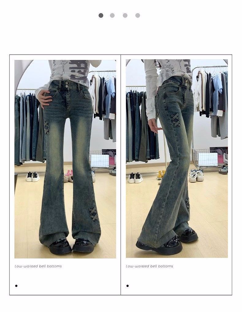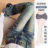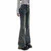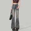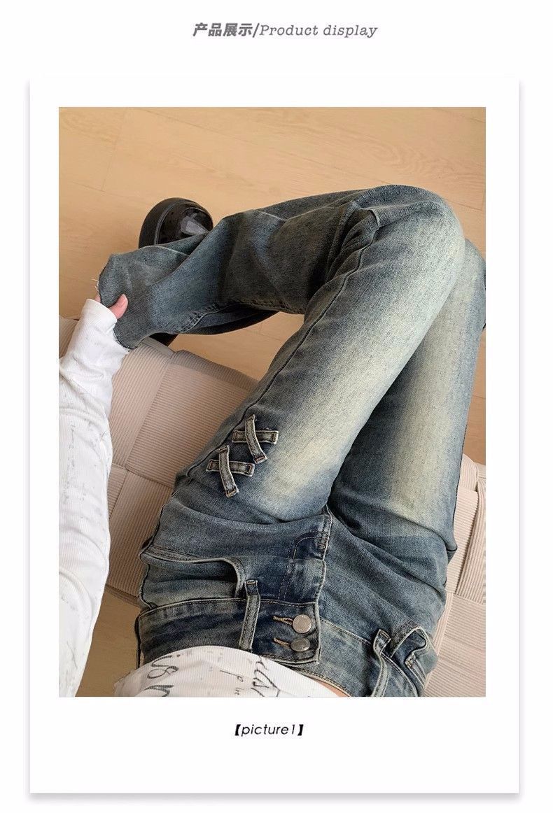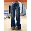 Jeans Vintage de Doble Botón Estilo Americano para Mujer, Corte Slim, Elásticos, Talla Extra, Cintura Alta, Pierna Recta, Talla Grande, Bootcut, Pantalones Largos Ligeramente Acampanados