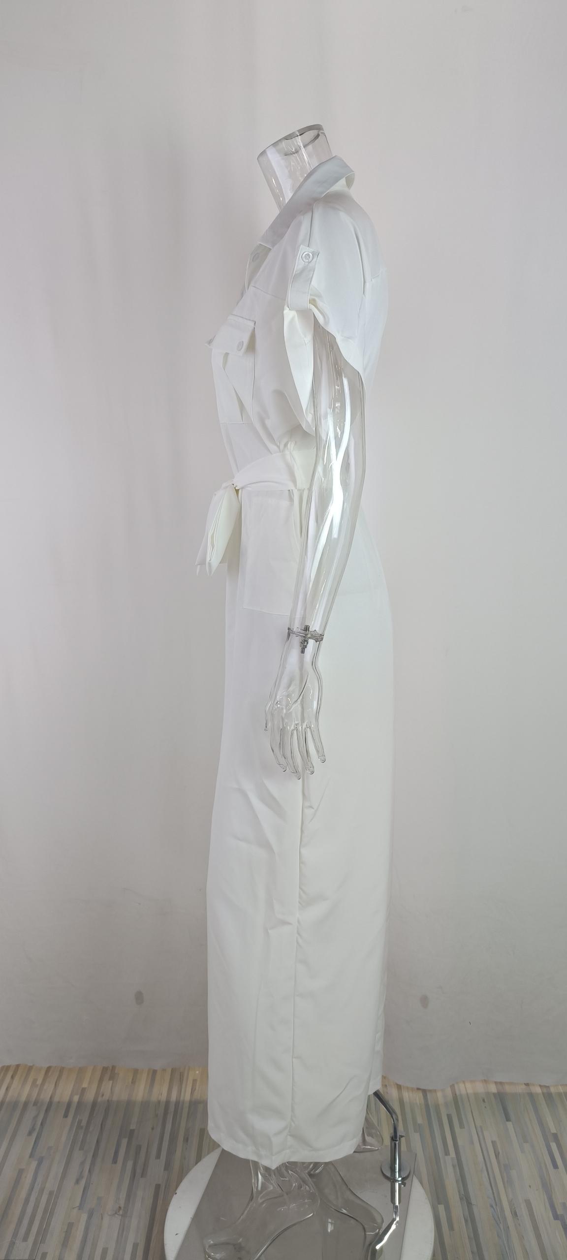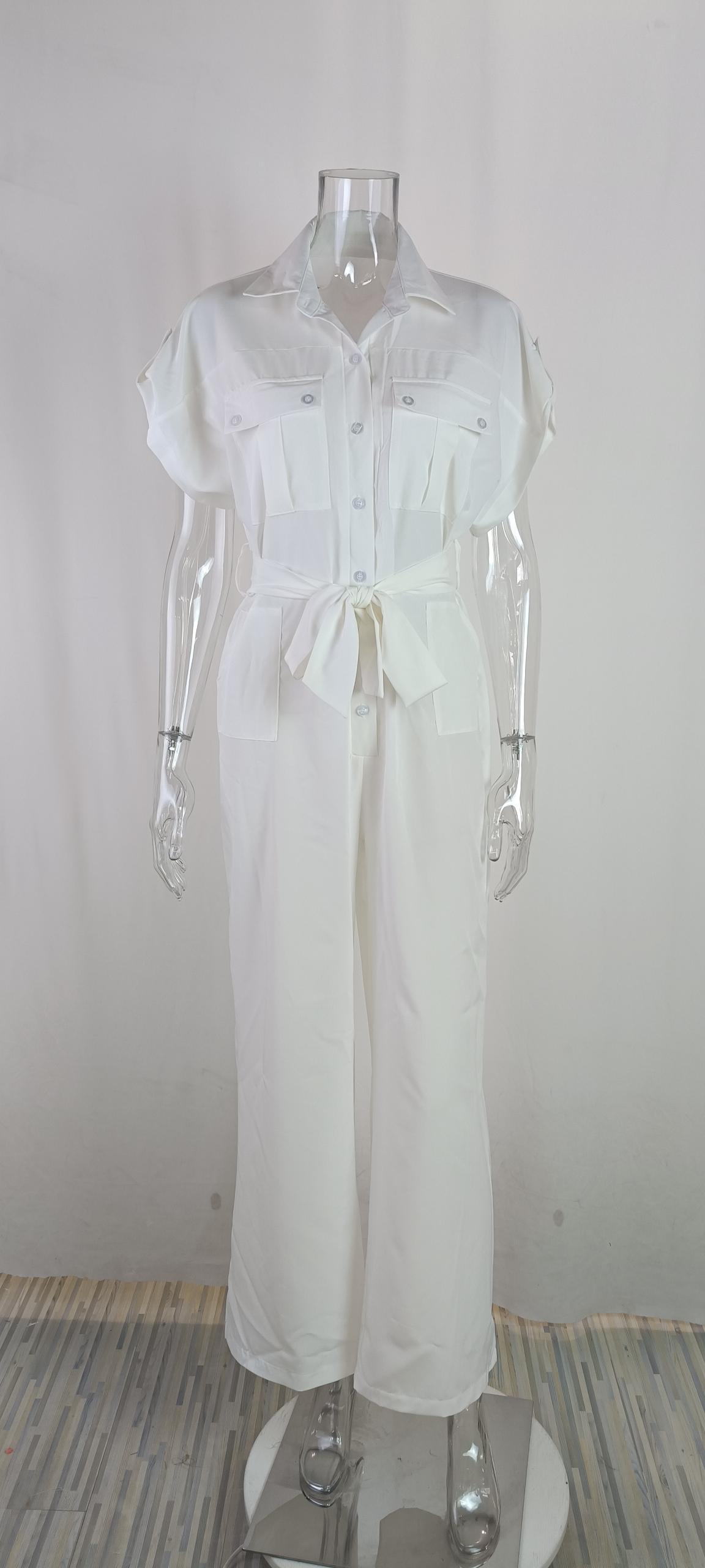 Verano 2025 Nuevo Transfronterizo Europeo y Americano Color Puro Casual Moda Versátil Ropa de Trabajo Mono Holgado con Escote en V y Cordones 661