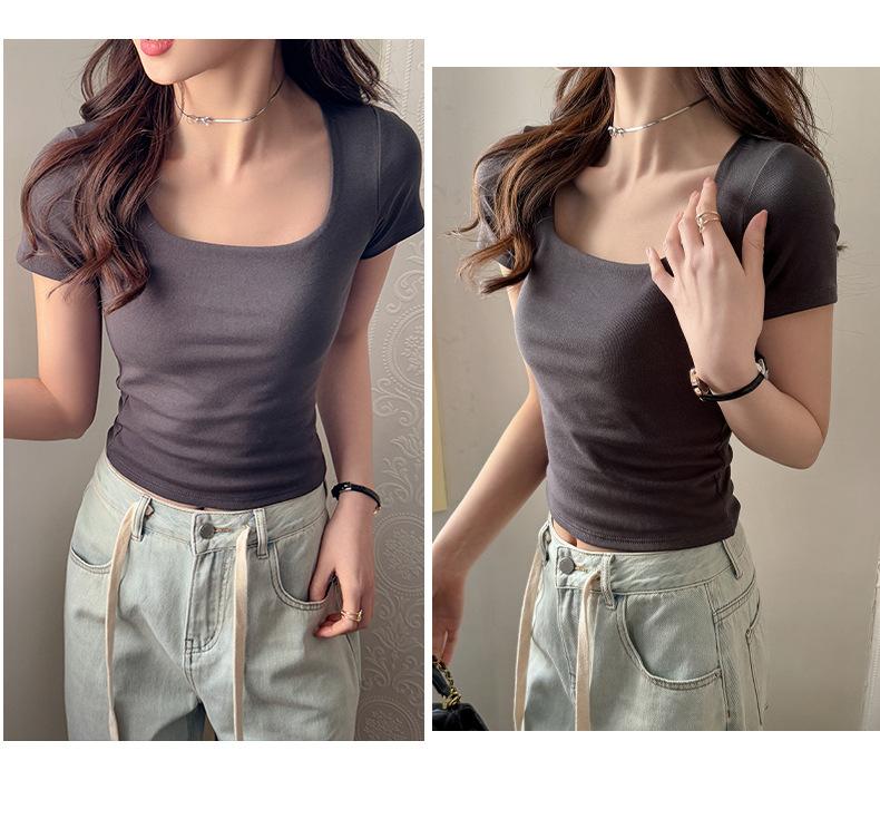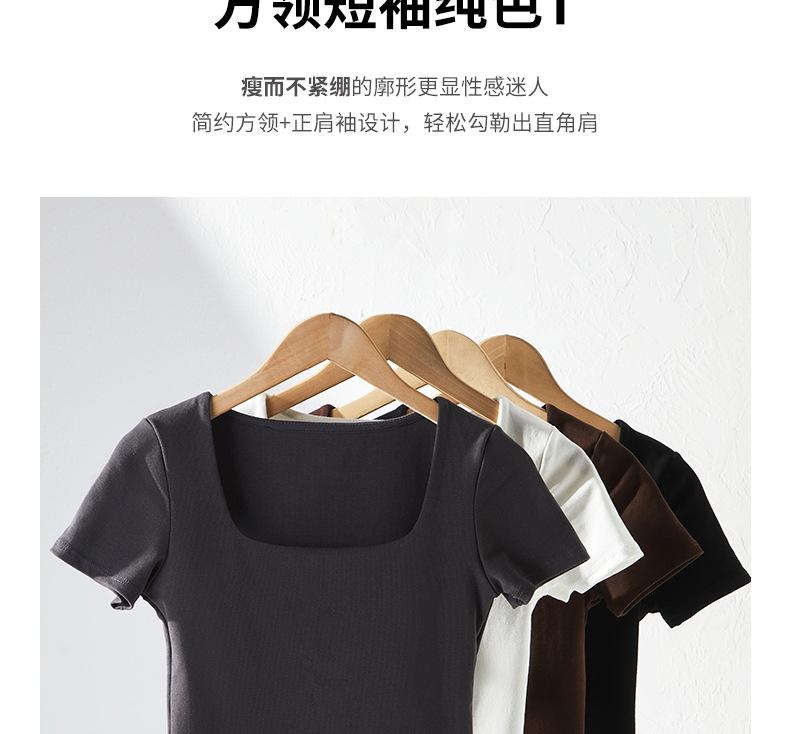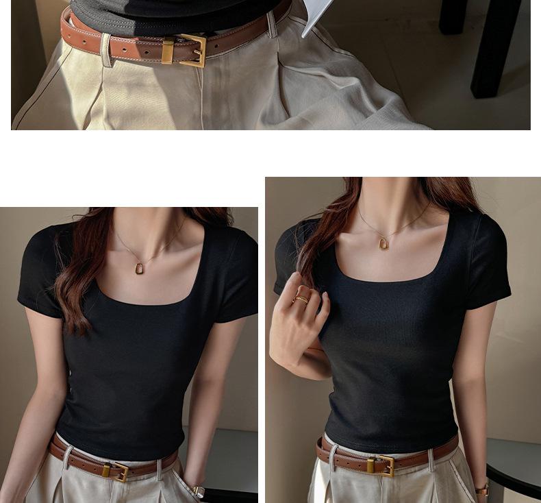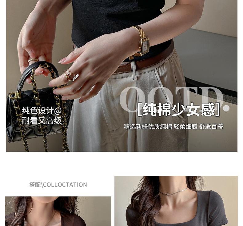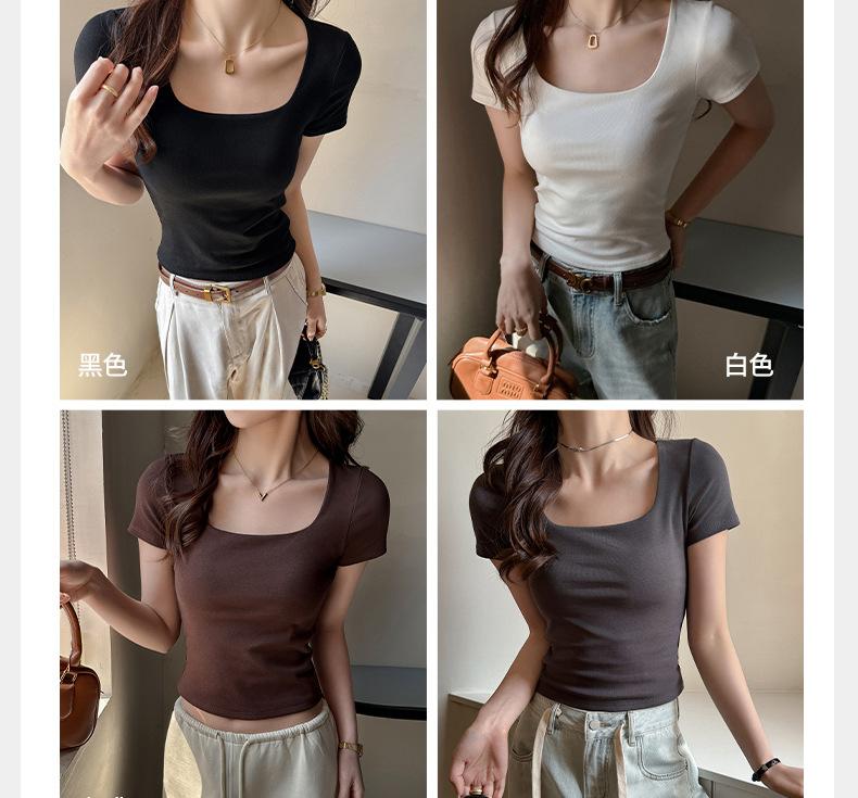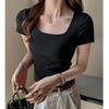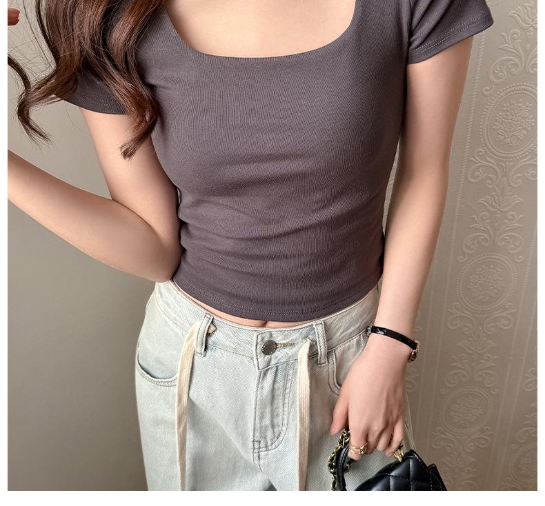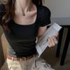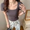 Cuidadosamente Seleccionados Cuello Cuadrado Dulce y Picante Cortos Color Sólido Manga Corta Verano para Mujer Nuevo de Alta Gama Sencillos Casuales Tops Usables