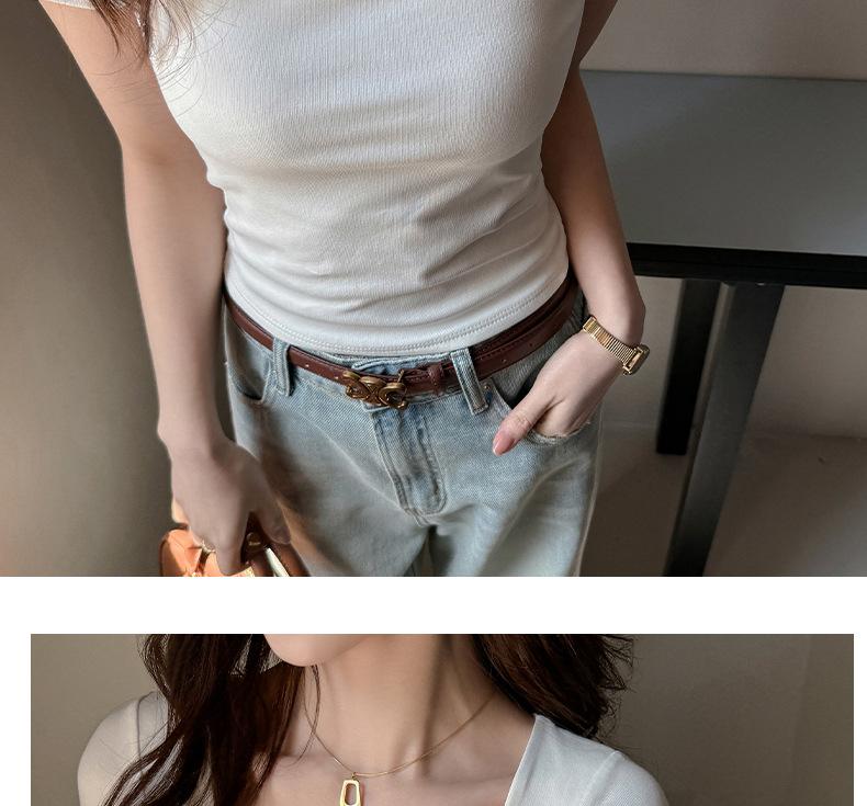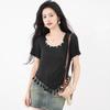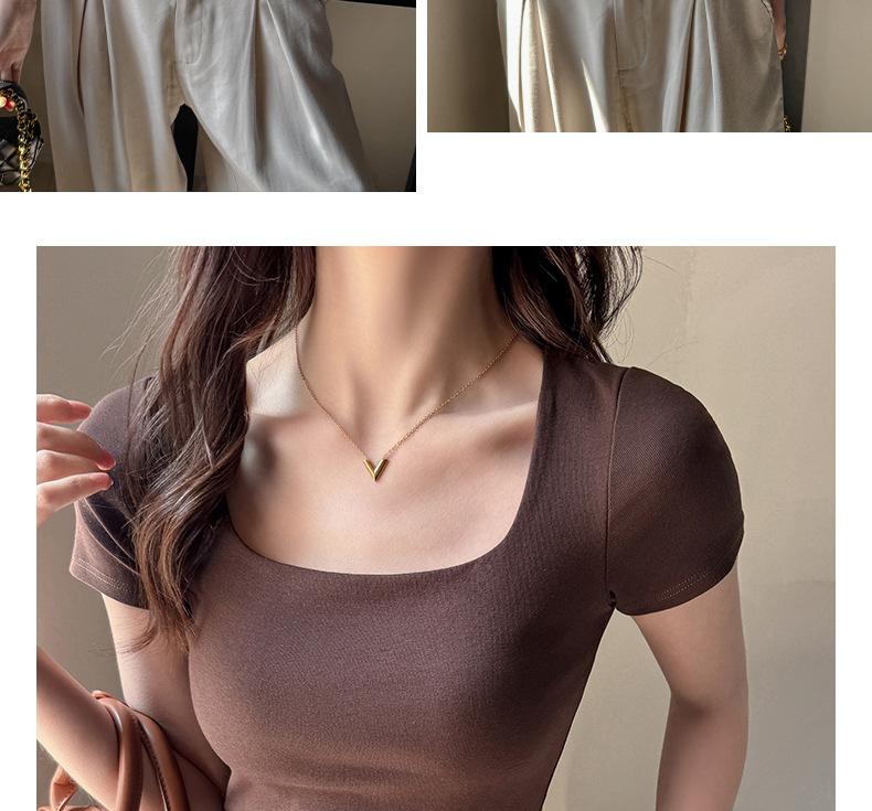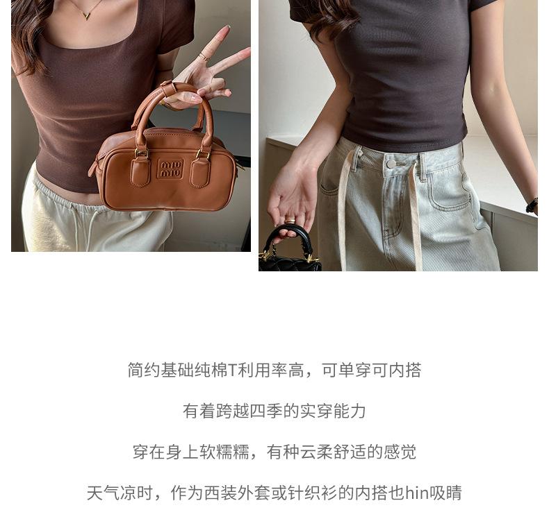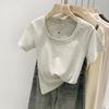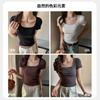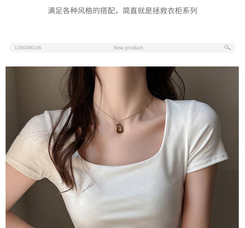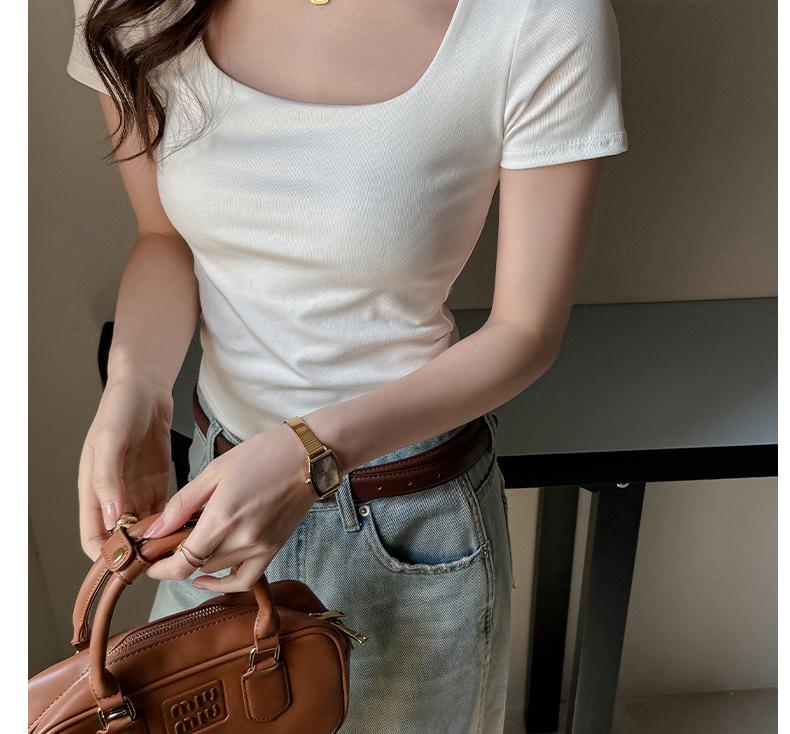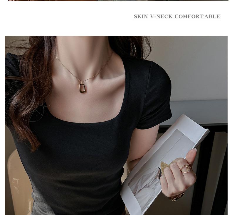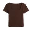 Cuidadosamente Seleccionados Cuello Cuadrado Dulce y Picante Cortos Color Sólido Manga Corta Verano para Mujer Nuevo de Alta Gama Sencillos Casuales Tops Usables