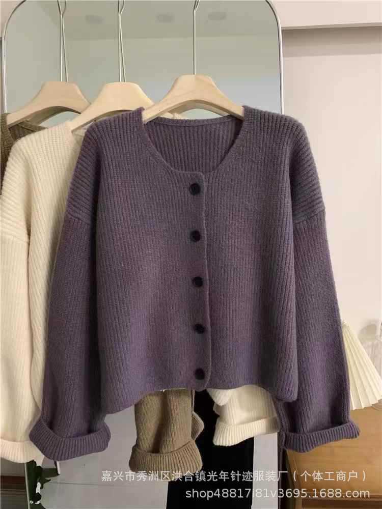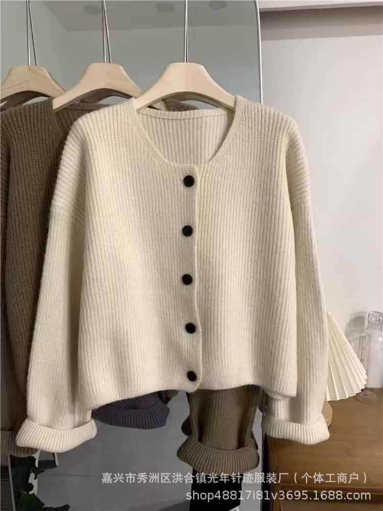Cárdigan de Punto Casual de Cuello Redondo Coreano para Mujer 2025 Primavera y Otoño Nuevo Estilo Estilo Relajado Punto de Manga Larga Top de Alta Gama