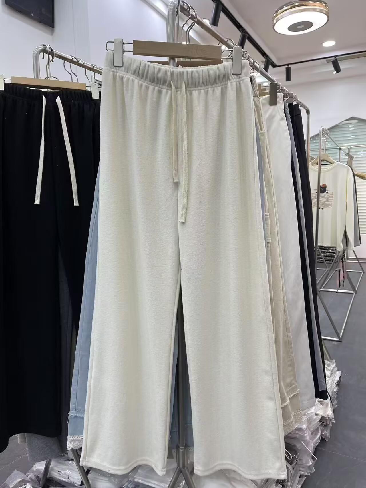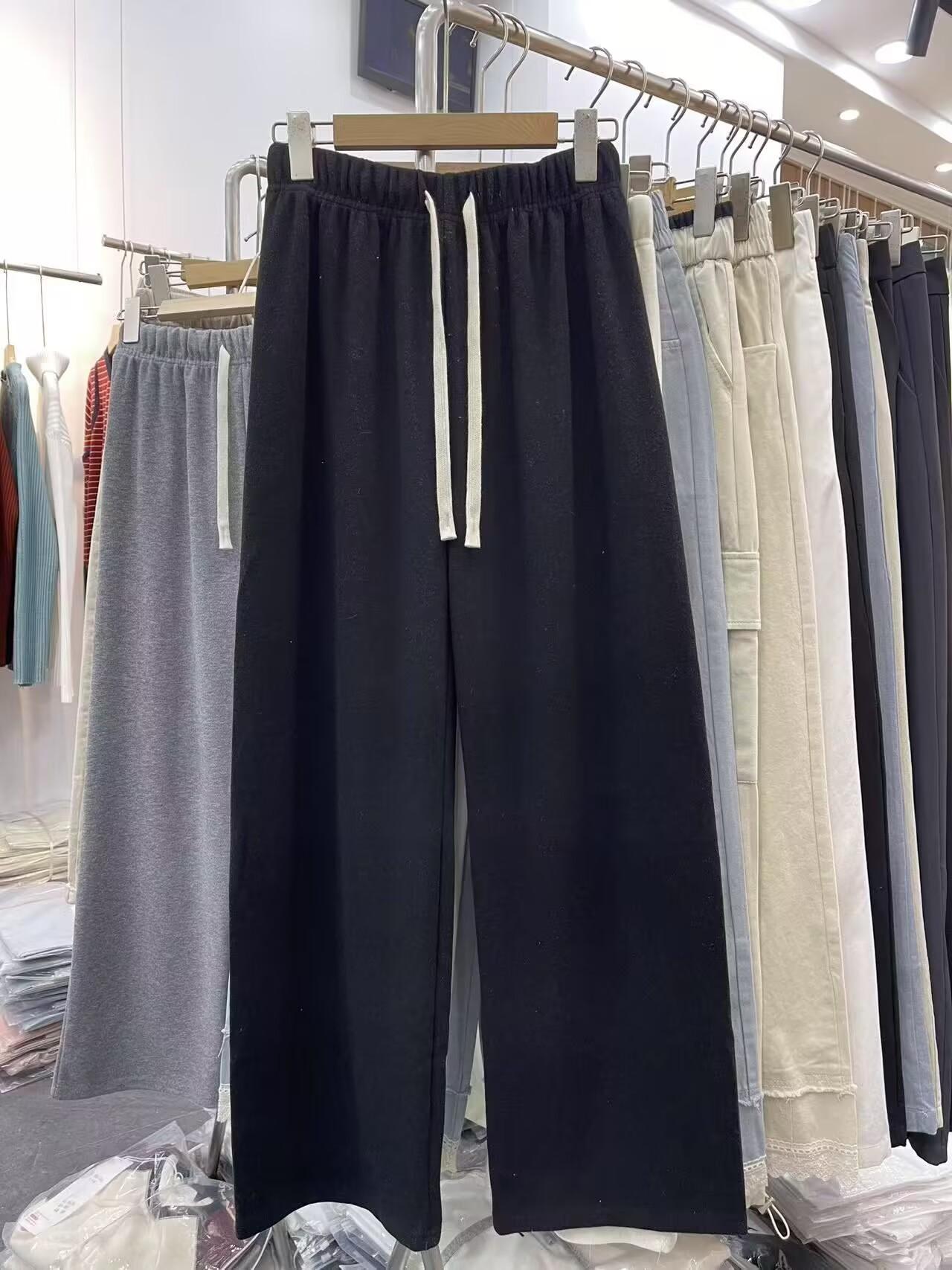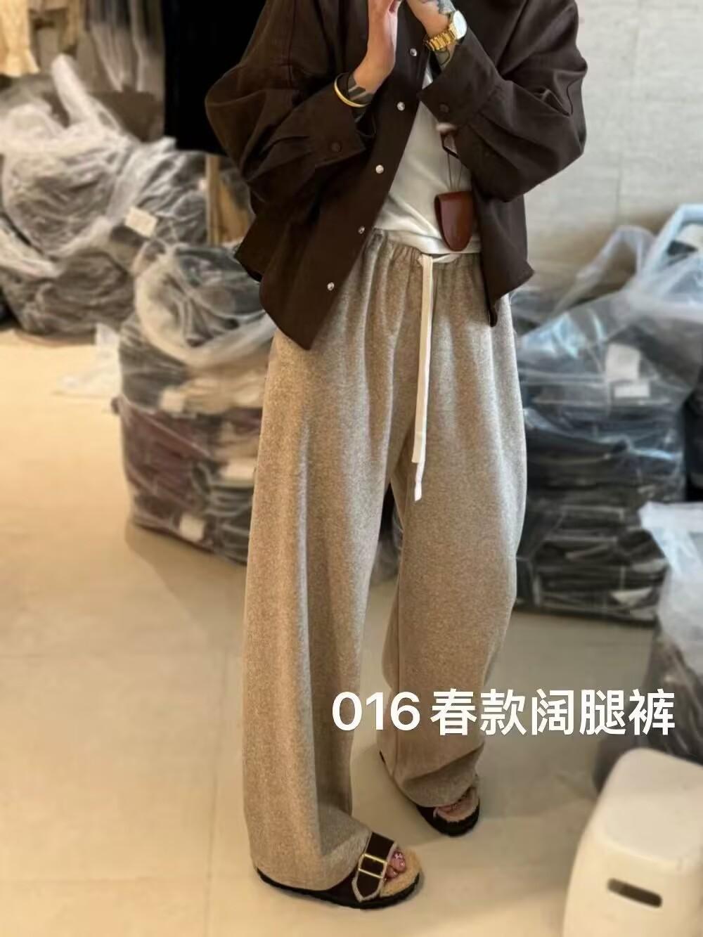 Pantalones pequeños de cintura elástica y pierna ancha para mujer, primavera 2025, nuevos, con cordón ajustable, holgados, adelgazantes, combinan con todo, casuales, para barrer el piso
