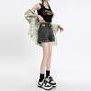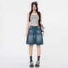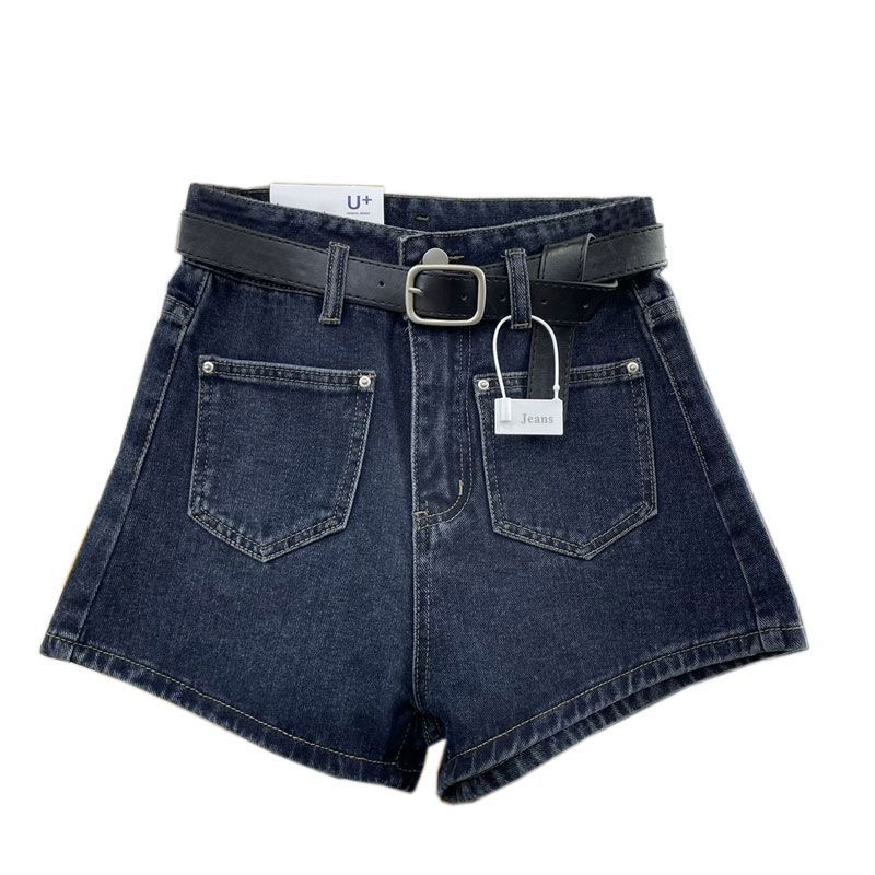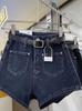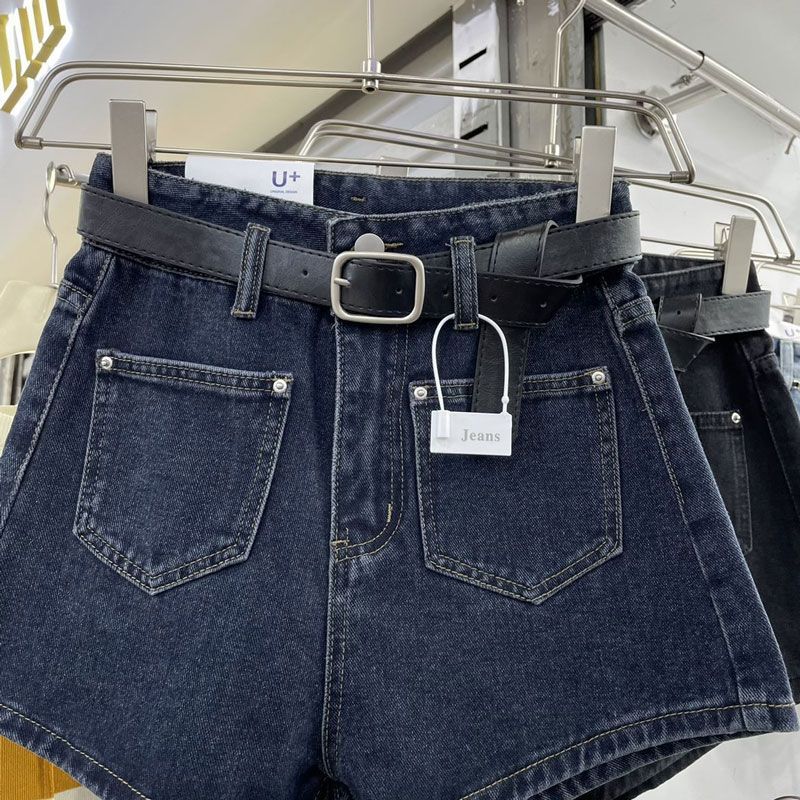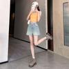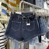 Shorts de mezclilla de cintura alta para mujer, azul grisáceo delgado de pierna ancha, talla grande, corte recto en A, holgados, pantalones cortos versátiles