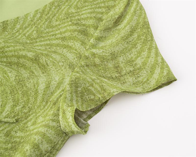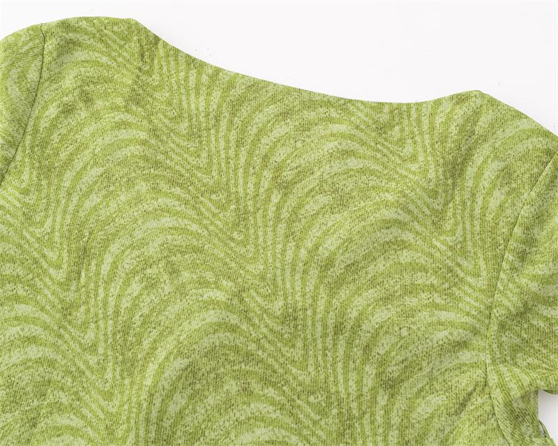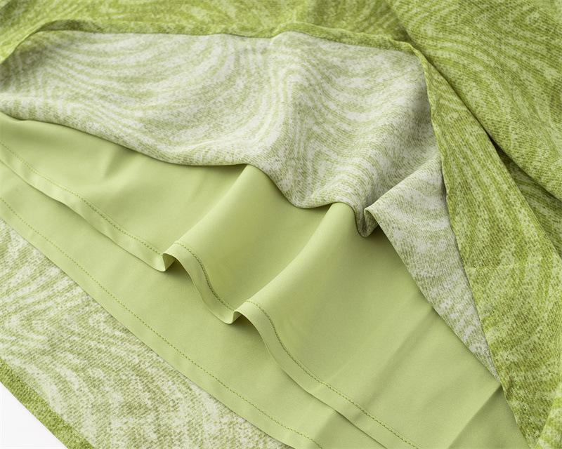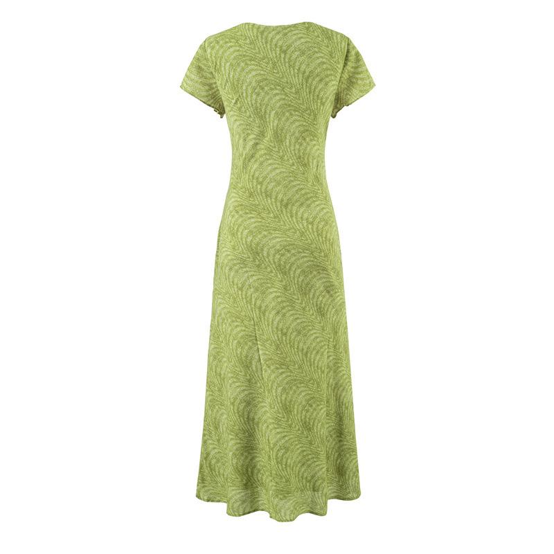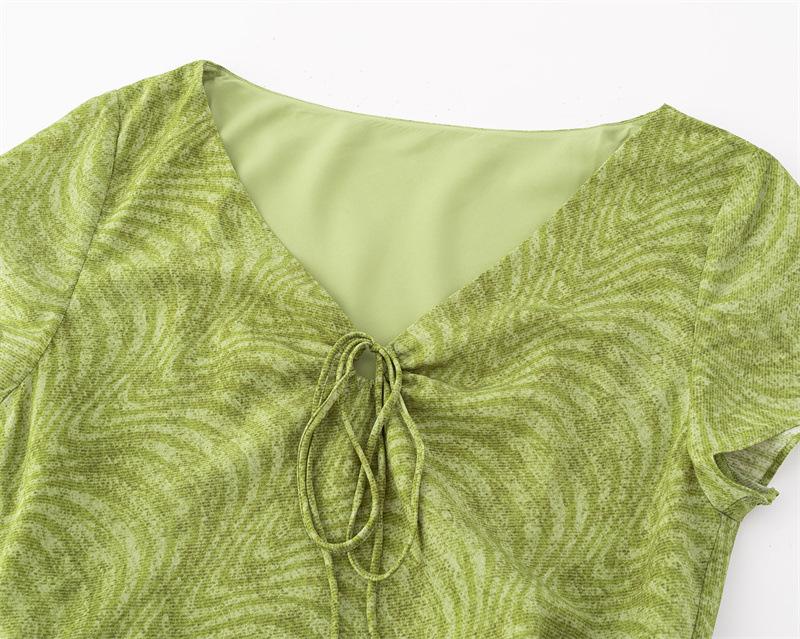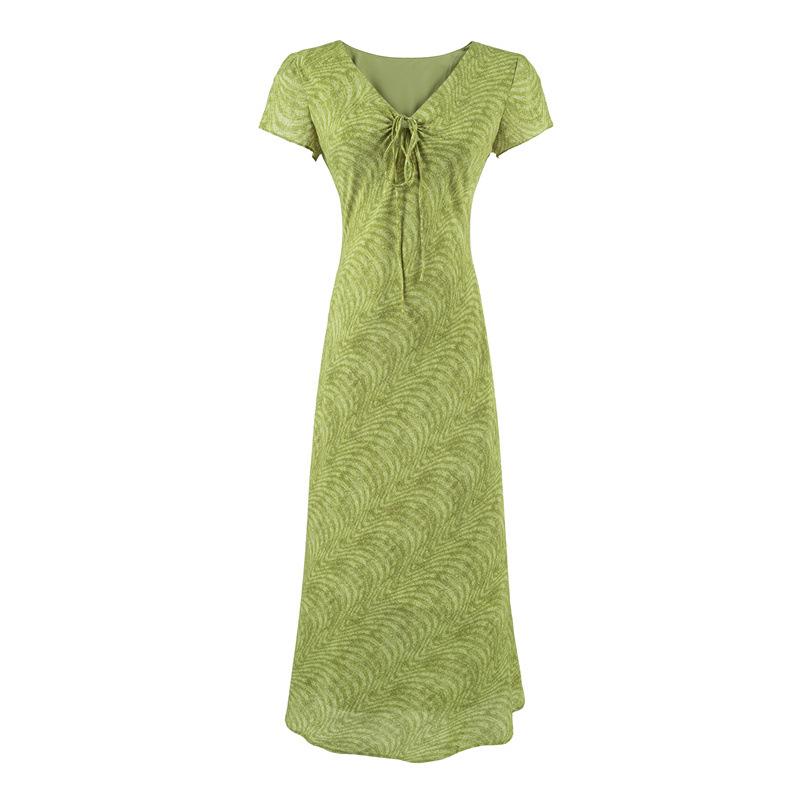 Vestido Retro Francés de Cuello en V con Cordones de Manga Corta 2025 Verano Nuevo Estilo Cintura Adelgazante Estampado Vacacional Vestido Largo para Mujer
