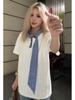 Playera de Manga Corta con Cuello Retro Americano Empalmado para Hombre y Mujer Diseño Verano 2025 Cinta Holgada para Pareja