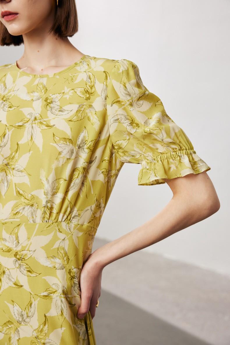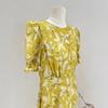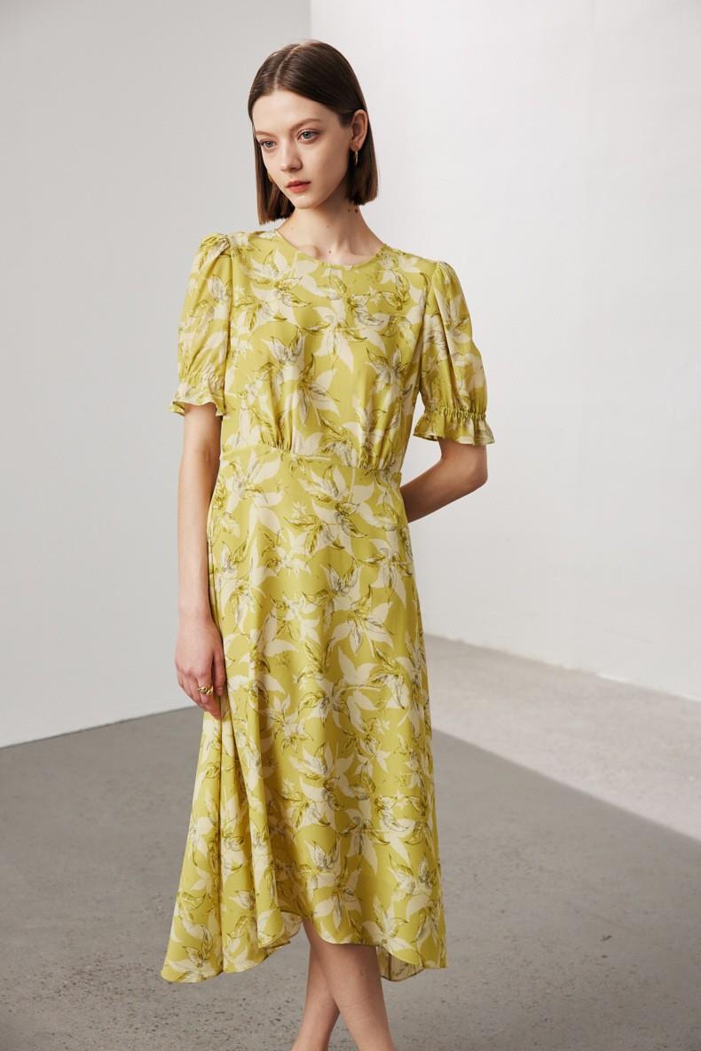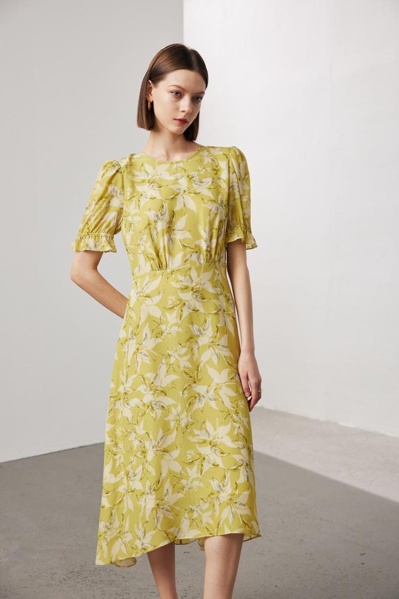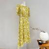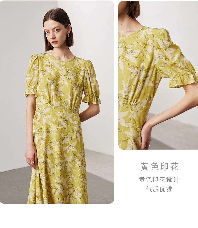 Vestido de seda de manga corta para mujer primavera y verano 2025 nuevo cintura largo medio floral crepé de china 100% seda de morera falda