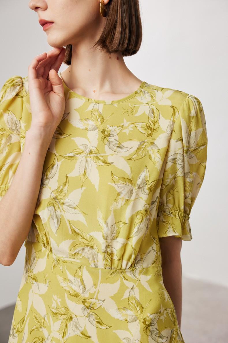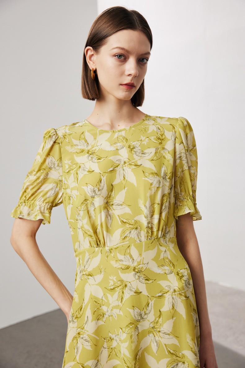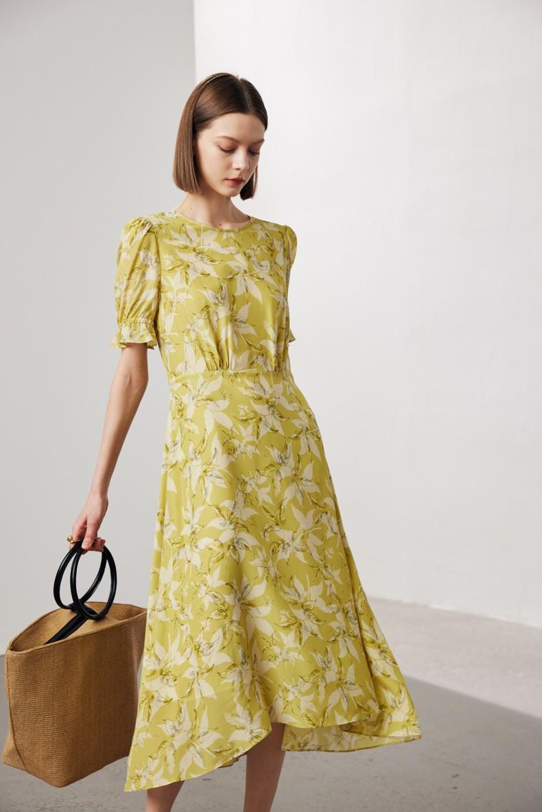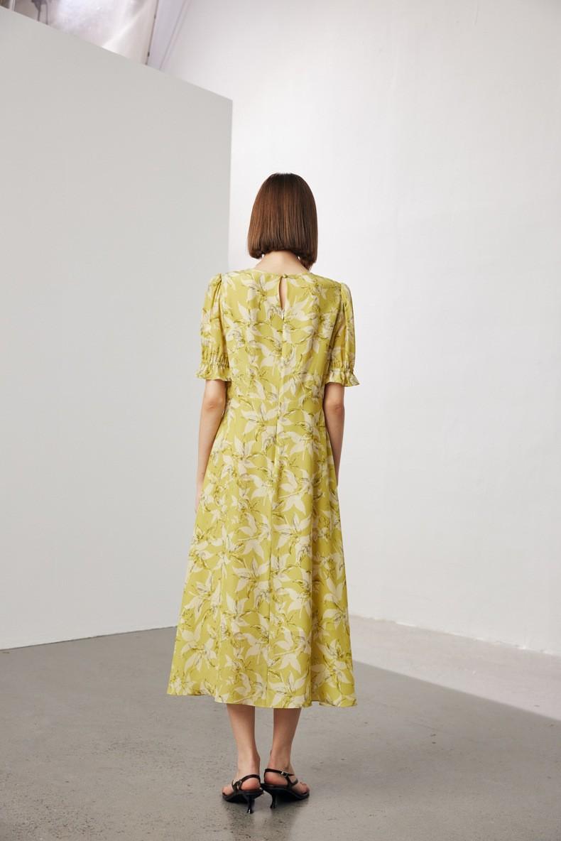 Vestido de seda de manga corta para mujer primavera y verano 2025 nuevo cintura largo medio floral crepé de china 100% seda de morera falda