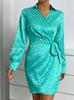 Comercio Exterior para Mujer Nuevo Estilo Commuter con Cordones Sexy Camisa con Cuello de Camisa Manga Larga Falda Francesa Vestido Estampado Leopardo
