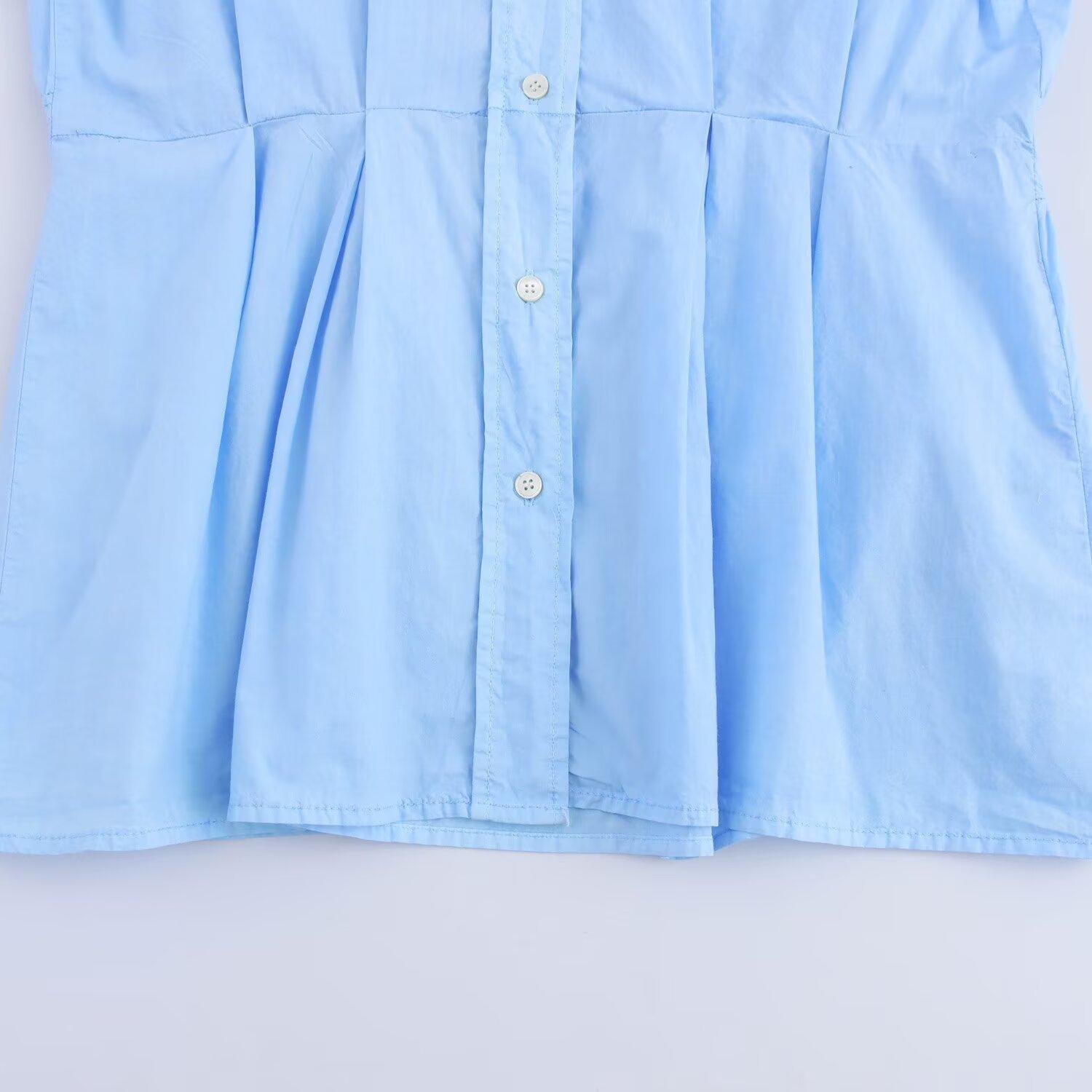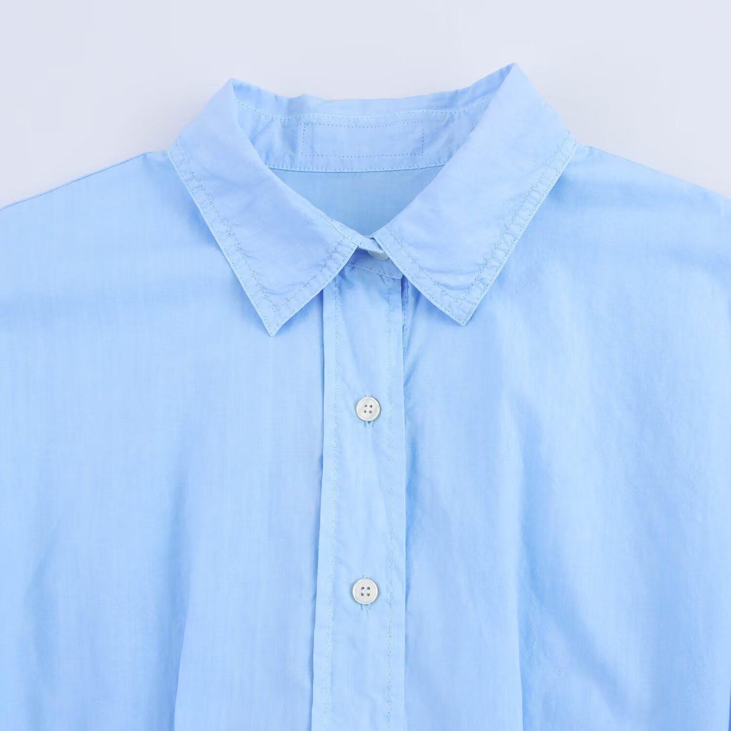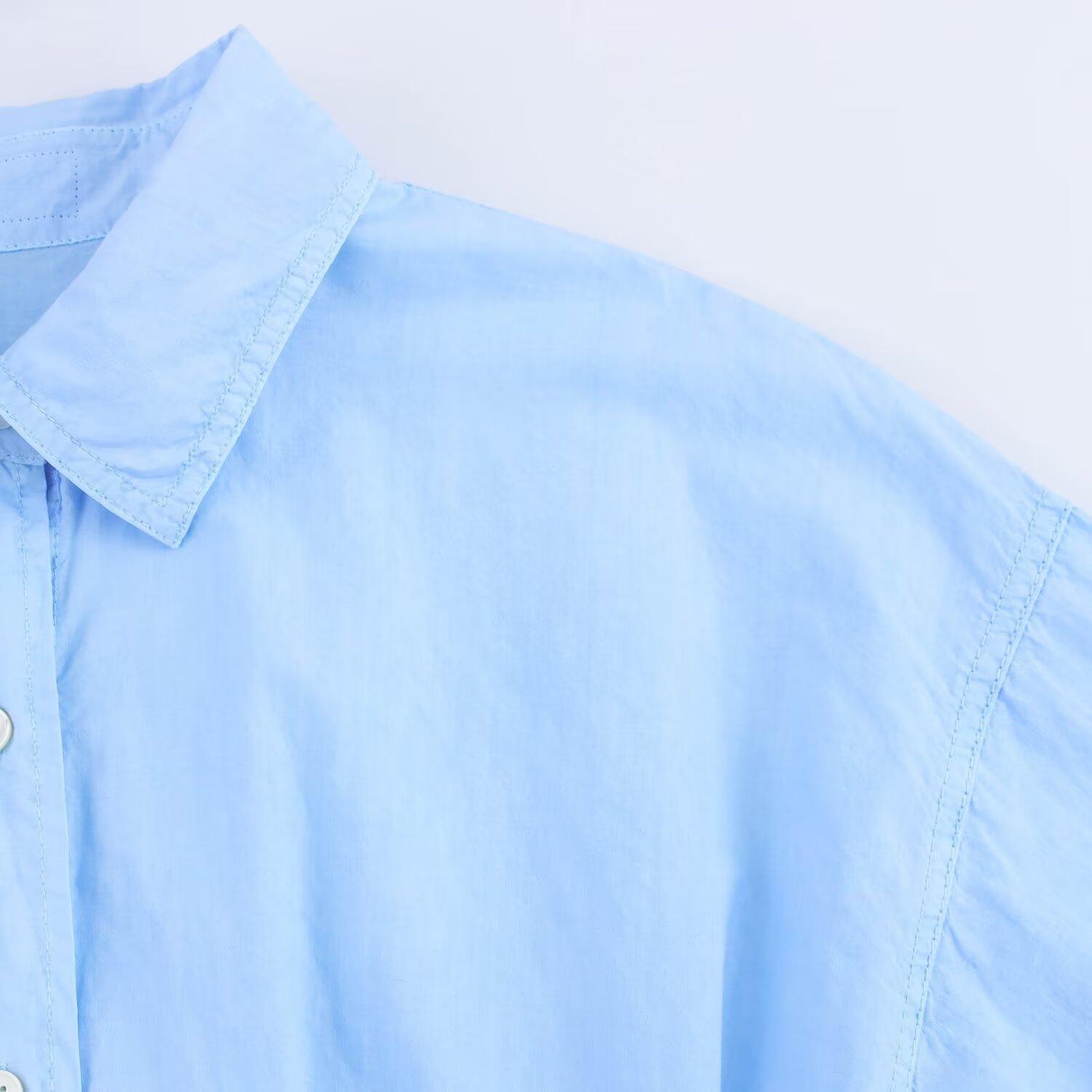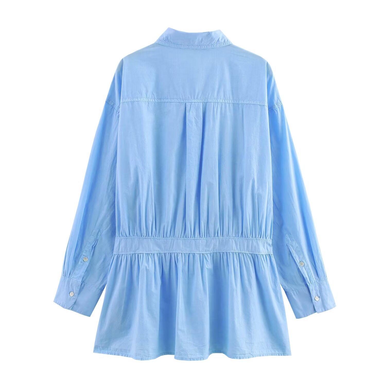 Ropa de Mujer de Exportación Transfronteriza Primavera y Verano 2025 Estilo Europeo y Americano Vestido Corto de Manga Larga Ancho Plisado Estilo Camisa para Mujer F611341