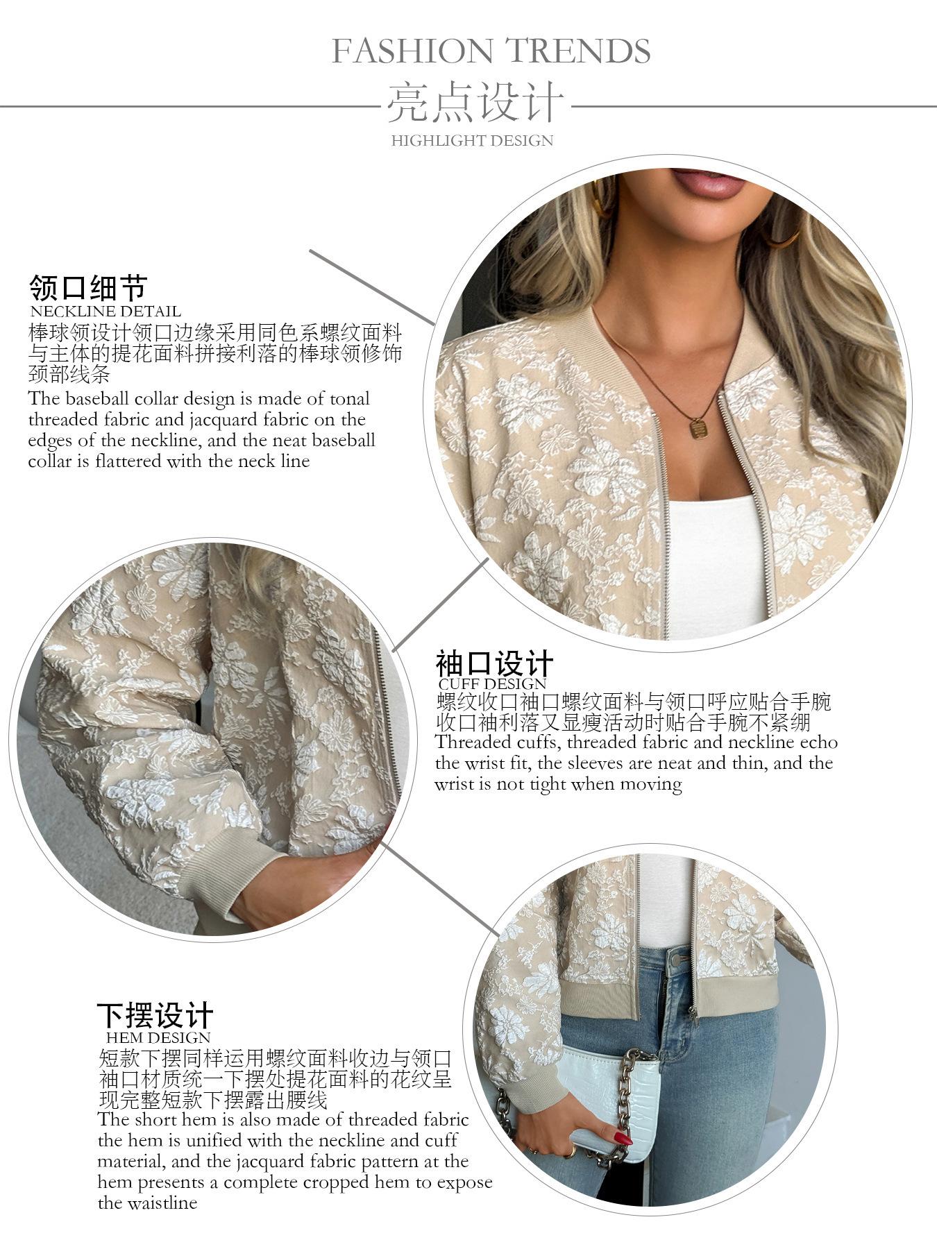 2025 Otoño e Invierno Nuevo Chaqueta Jacquard con Cremallera Transfronteriza Europea y Americana Holgada Adelgazante Elegante Commuter Casual Top Chaqueta