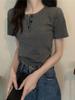 Camiseta Gris de Algodón con Manga Corta y Hombro Derecho Descubierto para Mujer Verano 2025 Nueva Camiseta Slim Corta con Cuello Medio Abierto